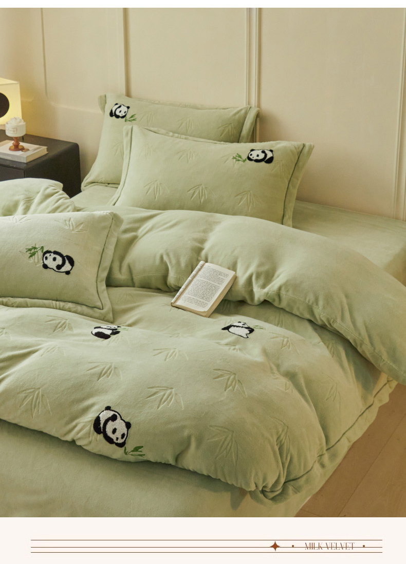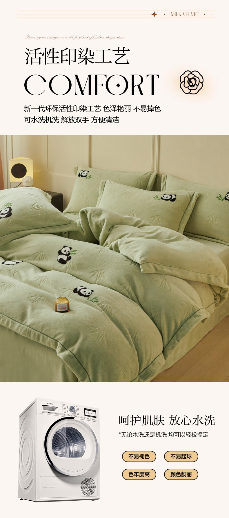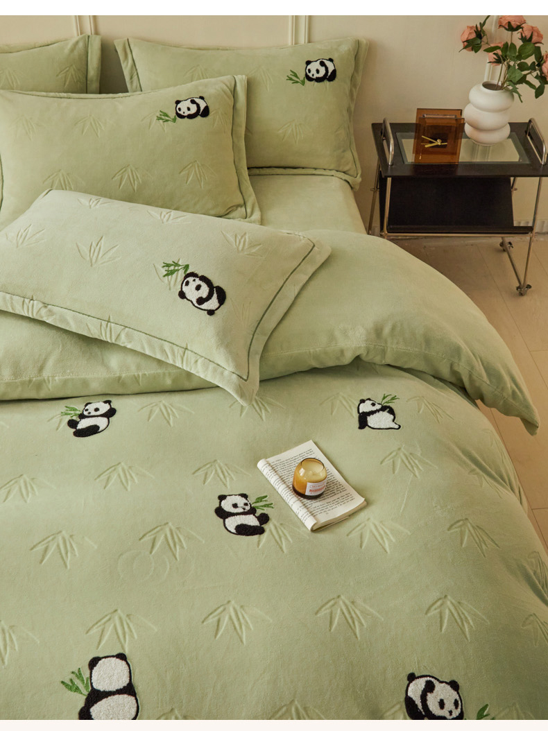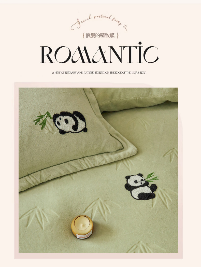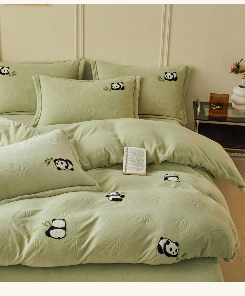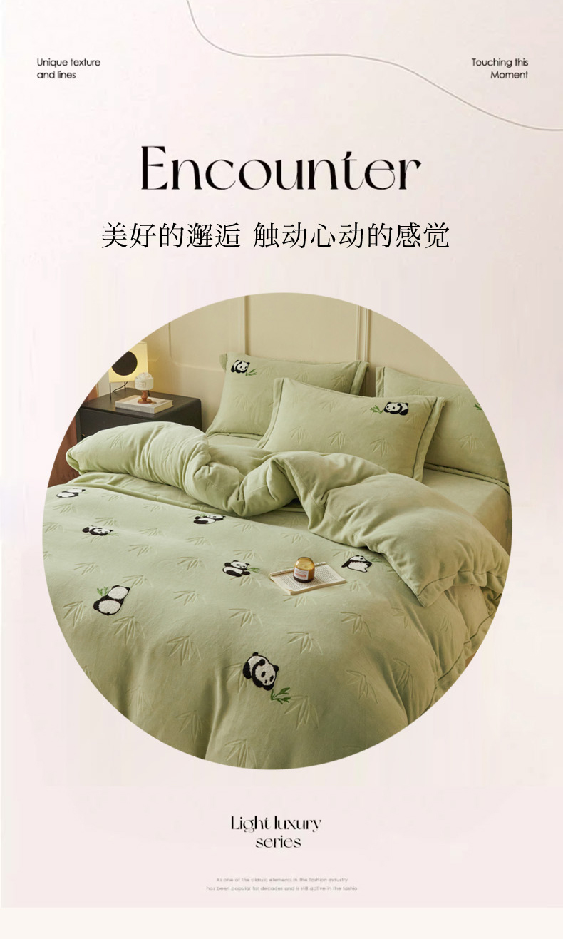 商品名称:恋佳居 2025新款高克重全工艺牛奶绒毛巾绣四件套 熊猫绿色