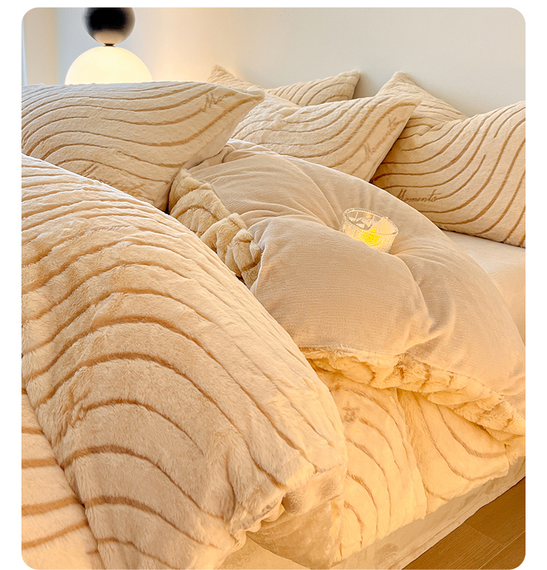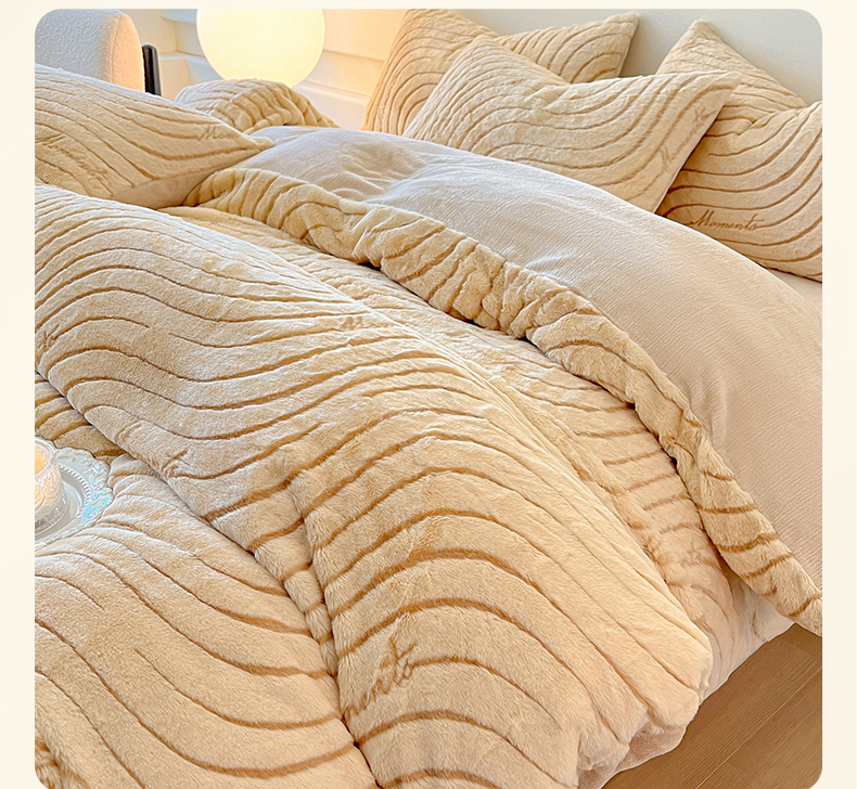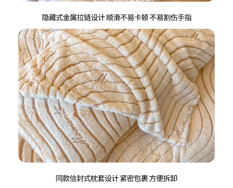 商品名称:2024新款高克重着色烂花兔毛绒牛奶绒四件套宝宝绒婴儿绒秋冬加厚法莱绒法兰绒珊瑚绒三件套 波浪-奶茶咖