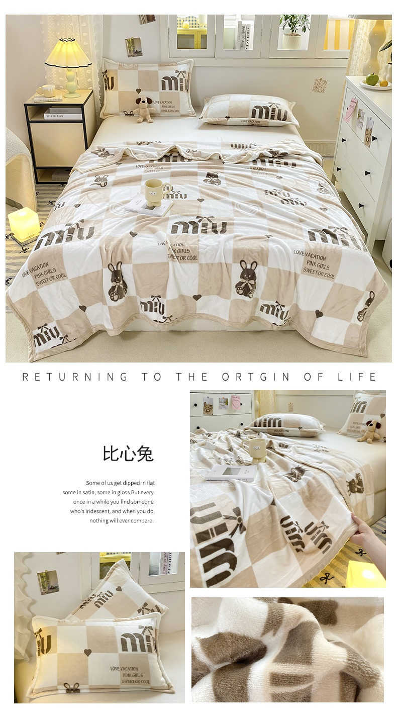 (总)楠沐家纺 2025新款双面牛奶绒多功能印花毛毯,丛林密语,字母狗,小兰花,小南瓜,小熊仔,朵朵花开,棋盘格,比心兔,波浪爱心,爱心粉,竹叶熊猫,简约都市,绿色心情,蓝叶熊,郁金香