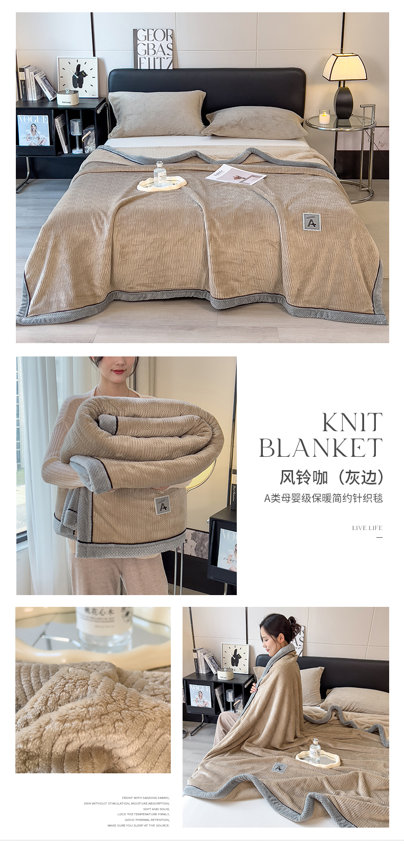 商品名称:世纪绒品 2025新款A类母婴级保暖简约针织毯毛毯毯子 风铃咖(灰边)