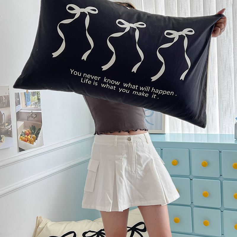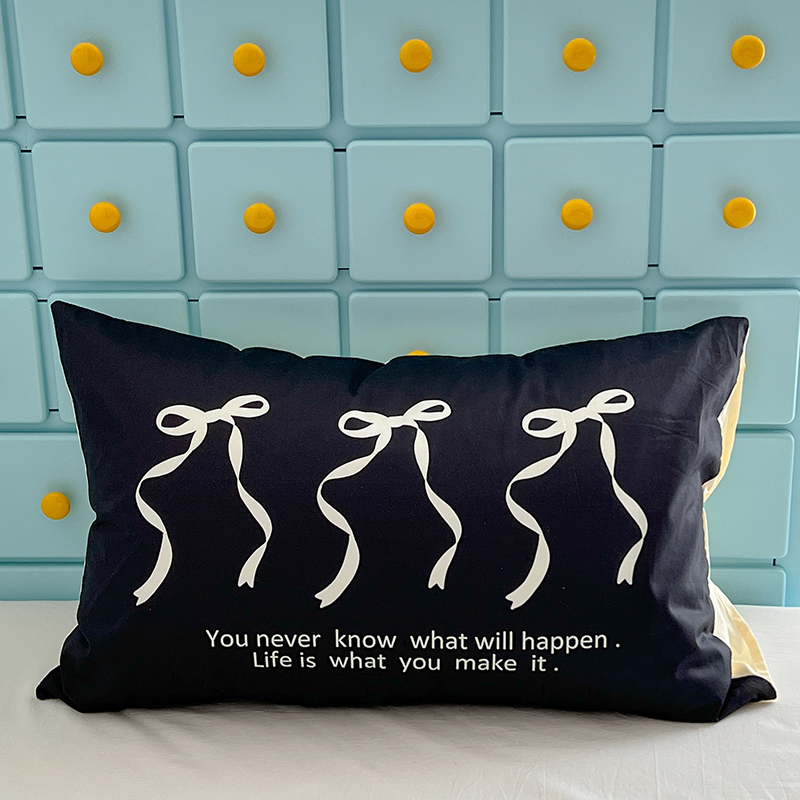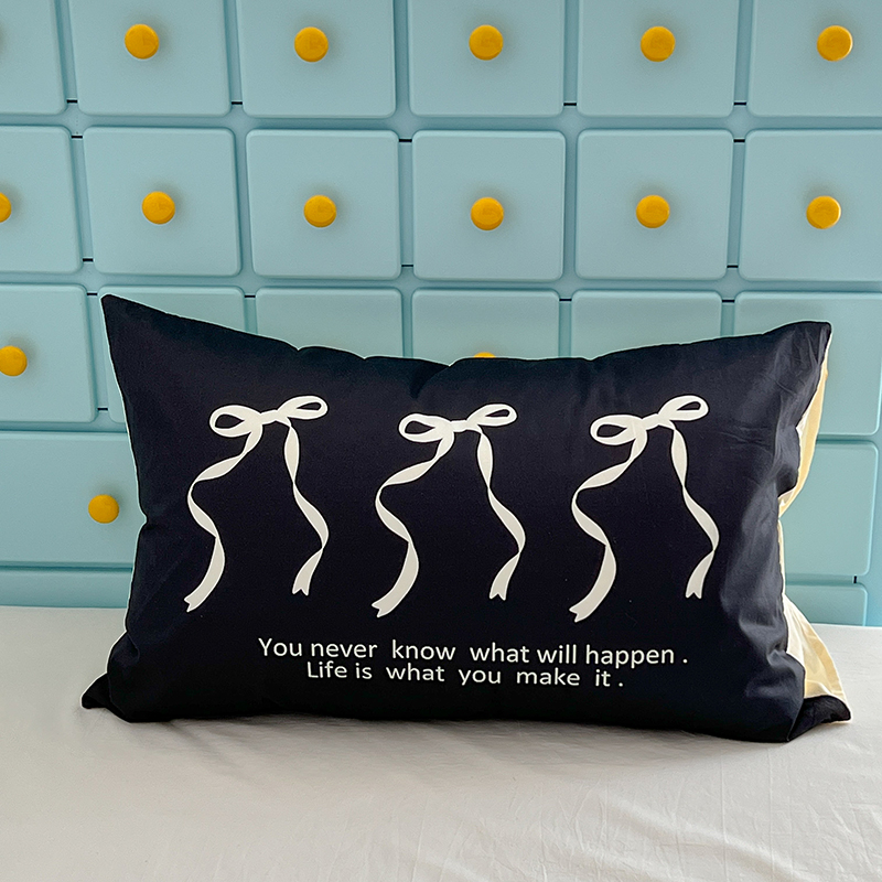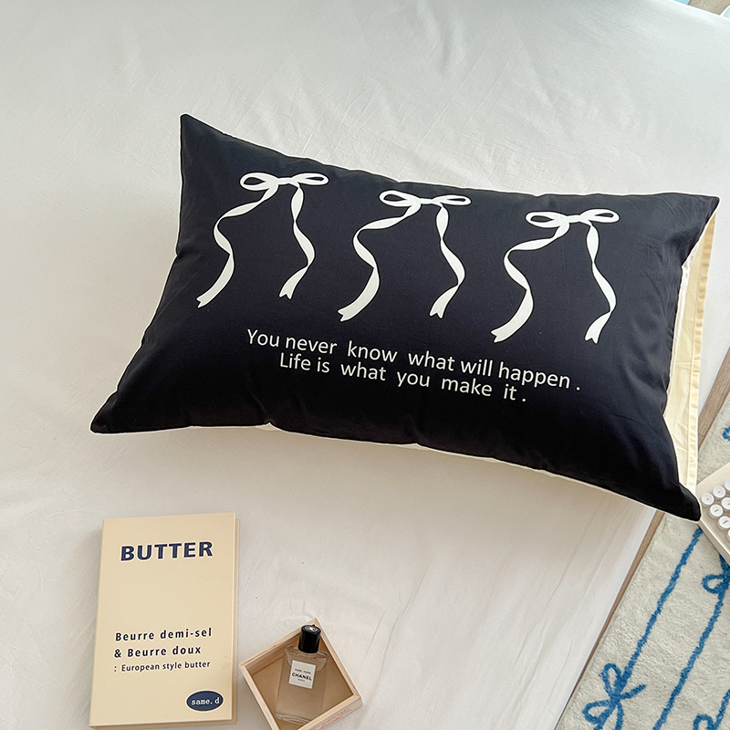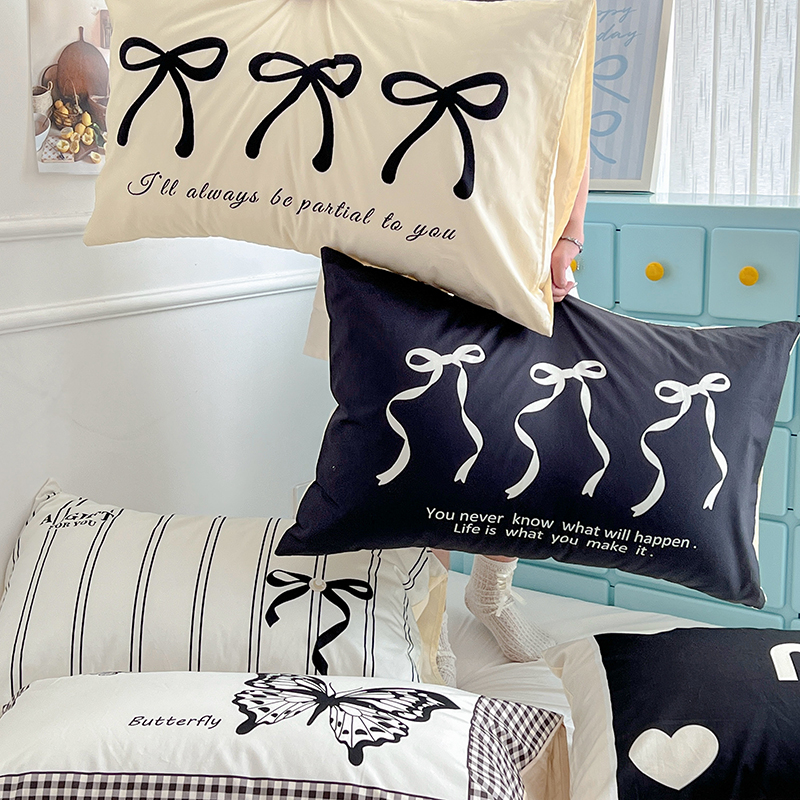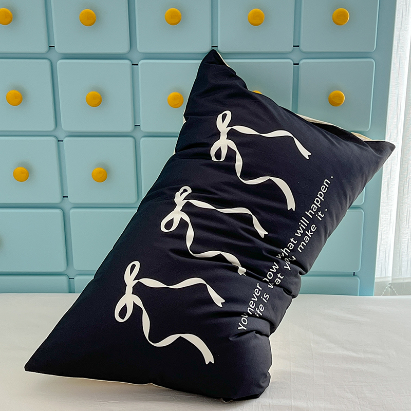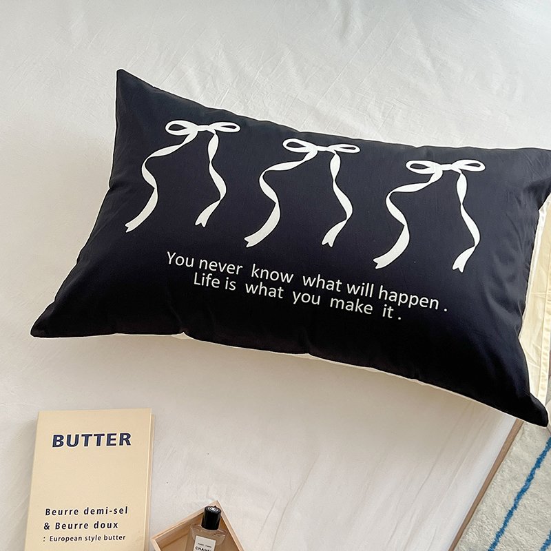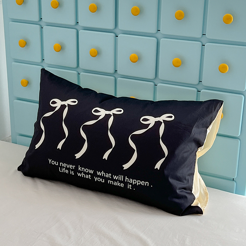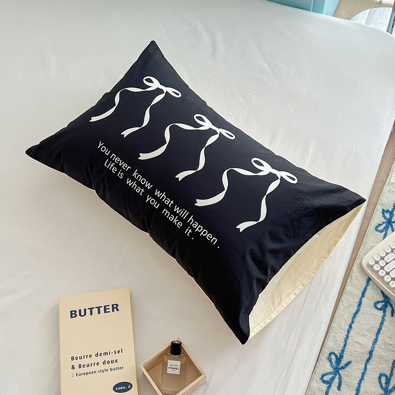 商品名称:昔可家纺 2024新款数码印花单品枕套系列-ins风系列 黑色丝带蝴蝶结