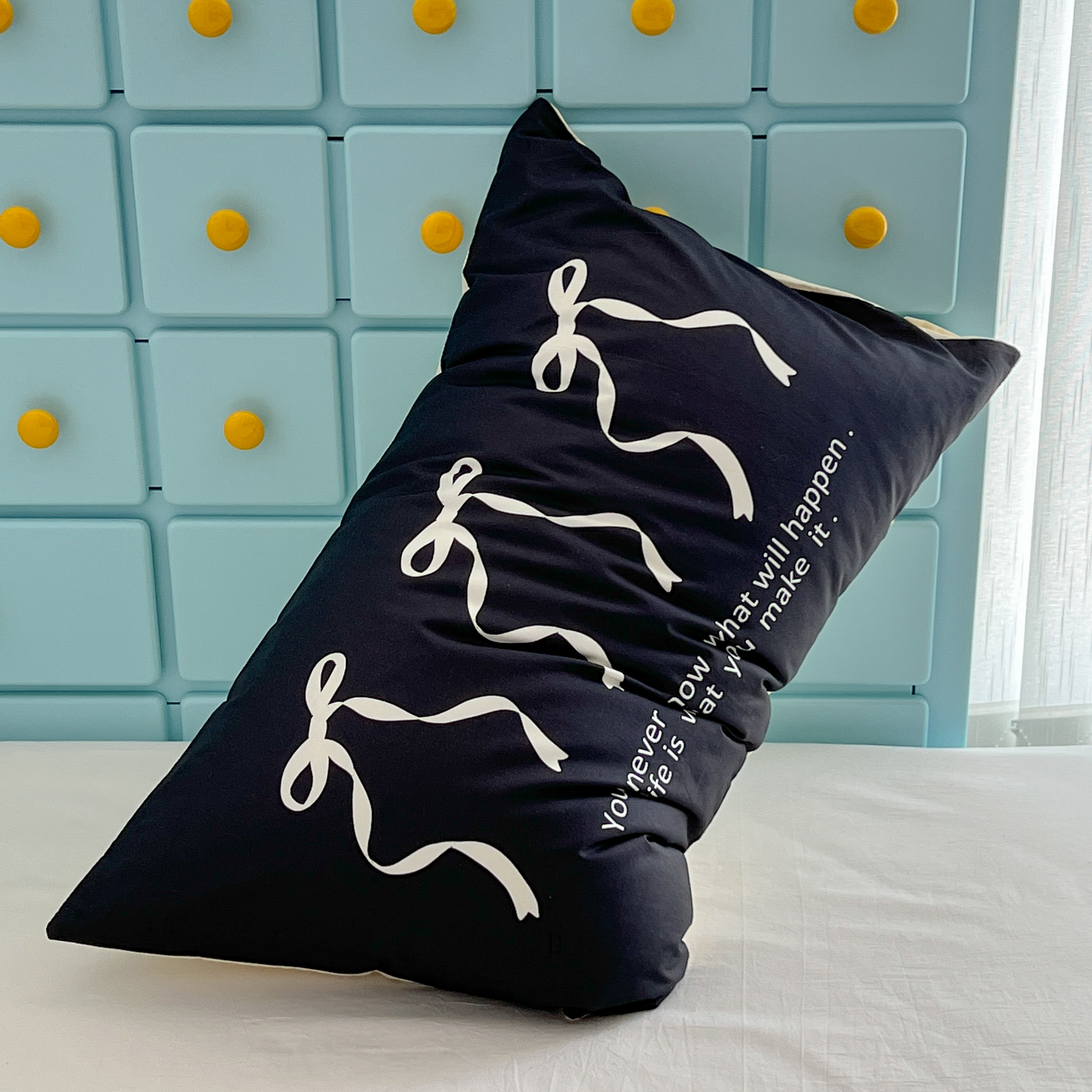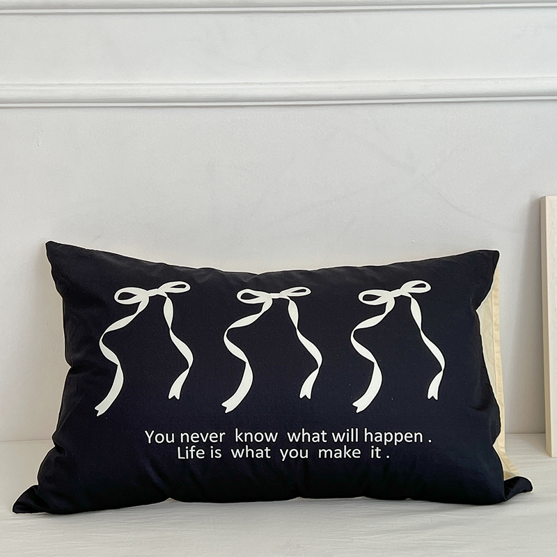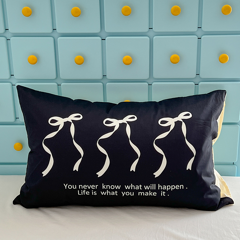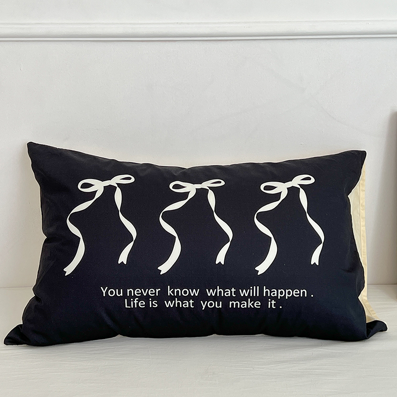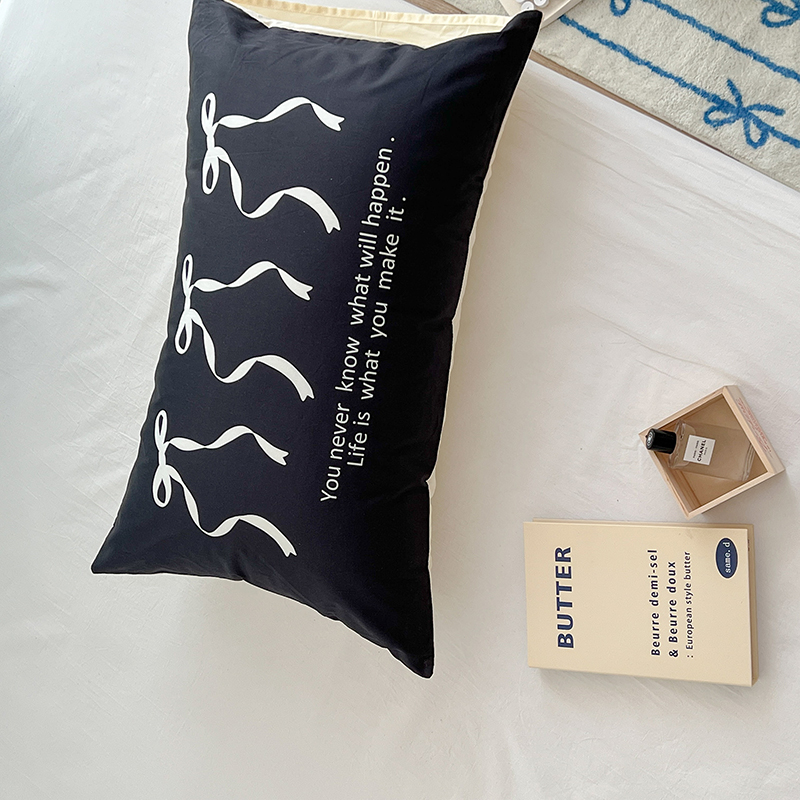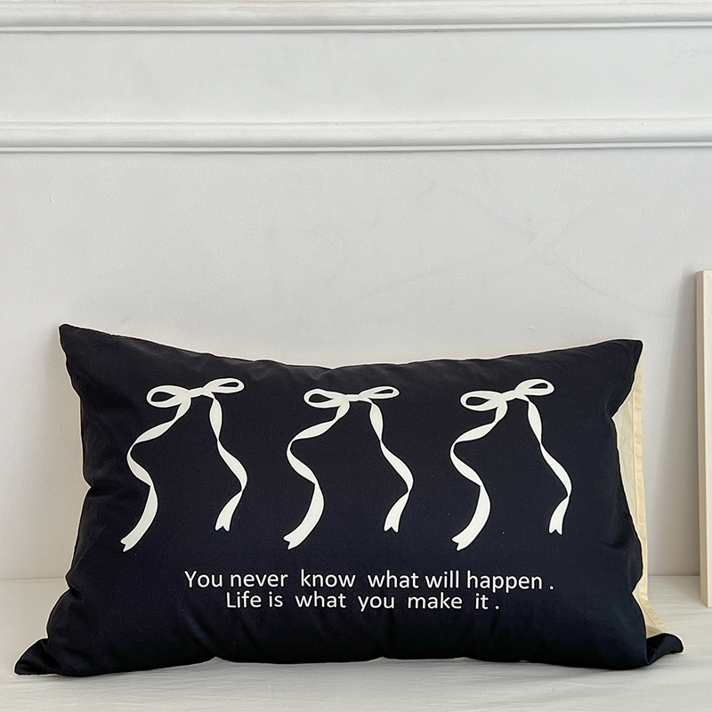 昔可家纺 2024新款数码印花单品枕套系列-ins风系列 黑色丝带蝴蝶结