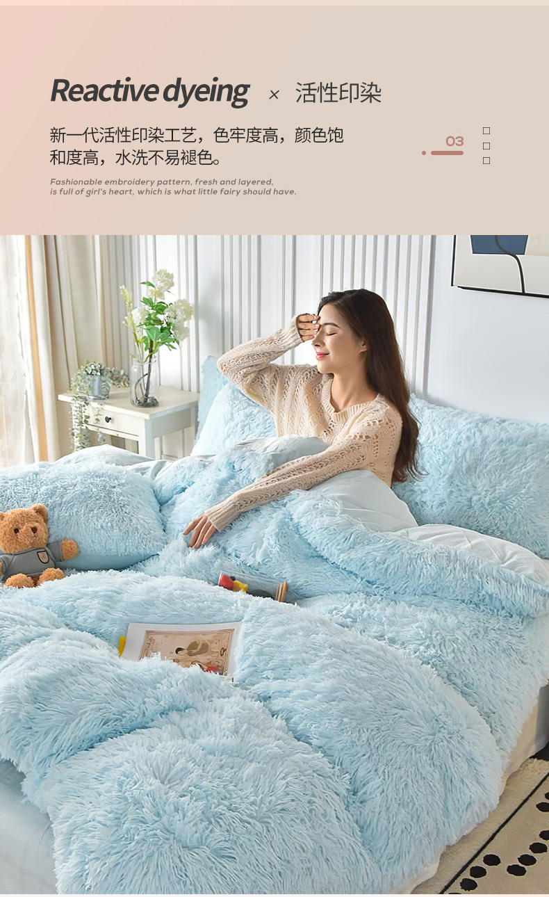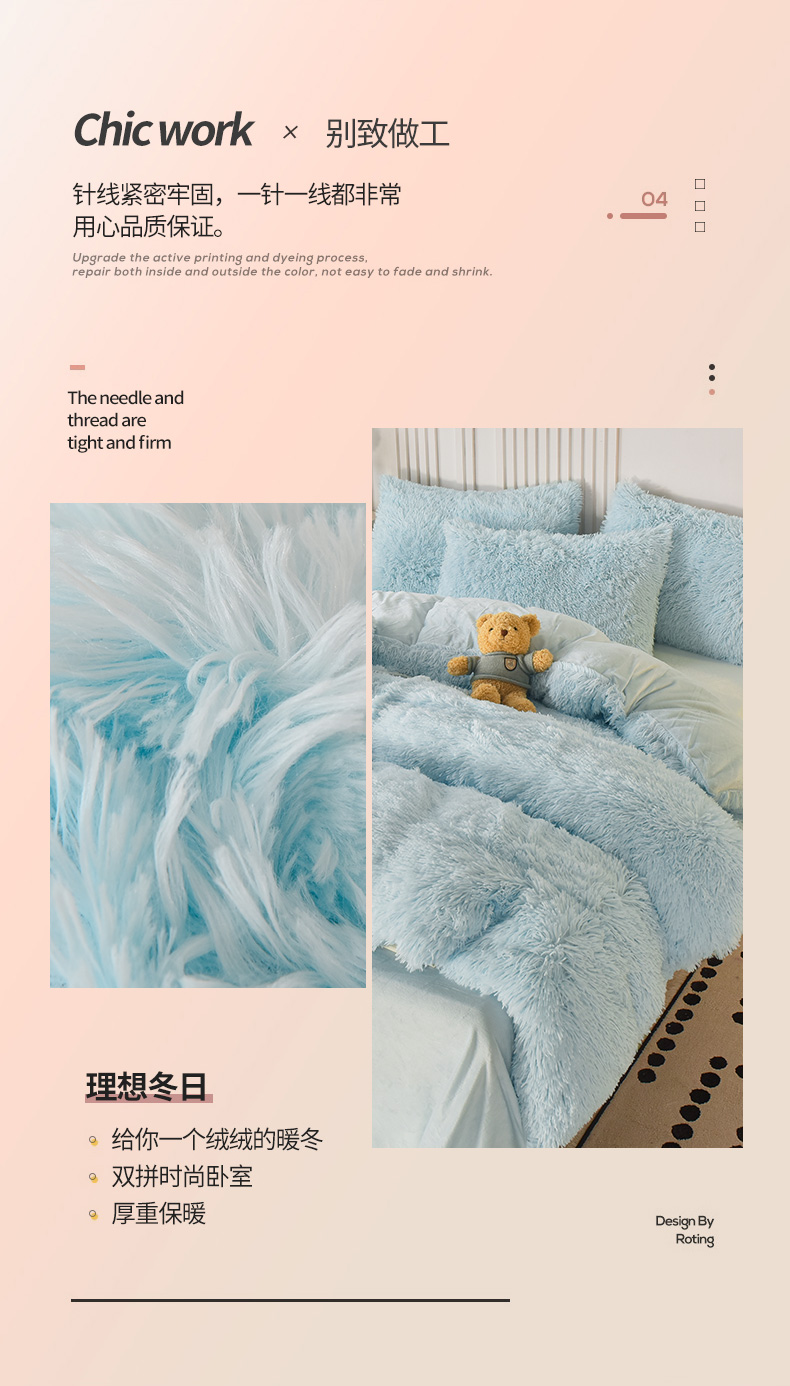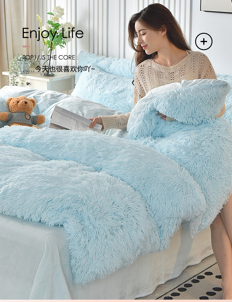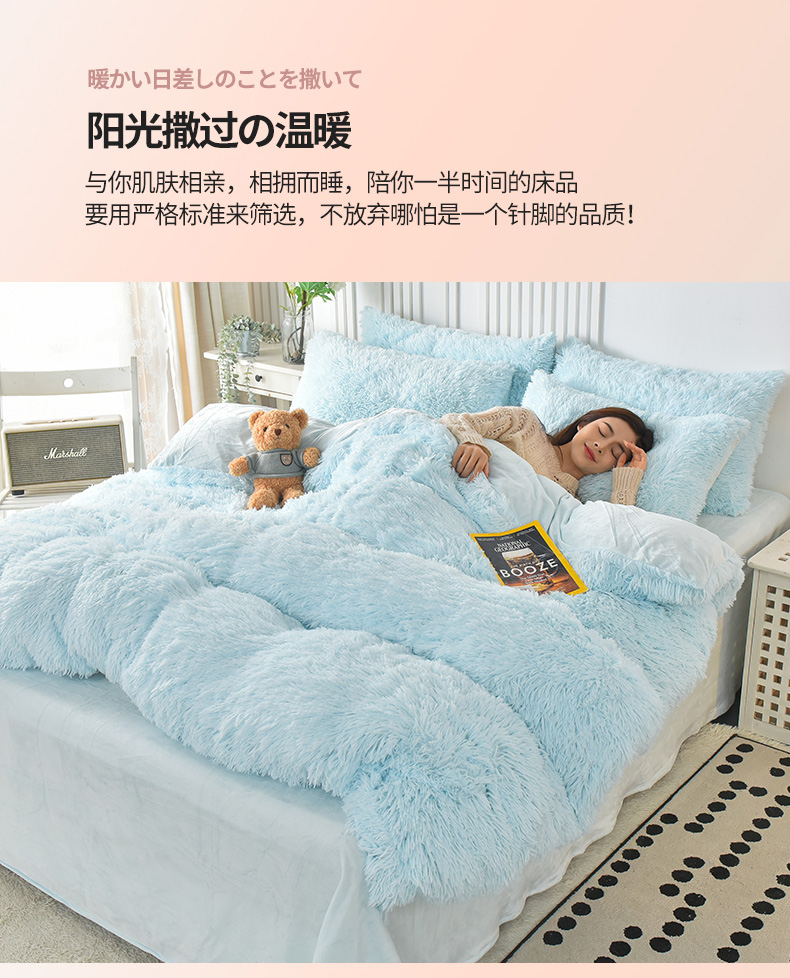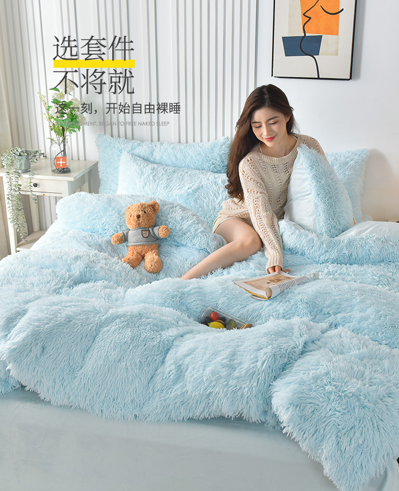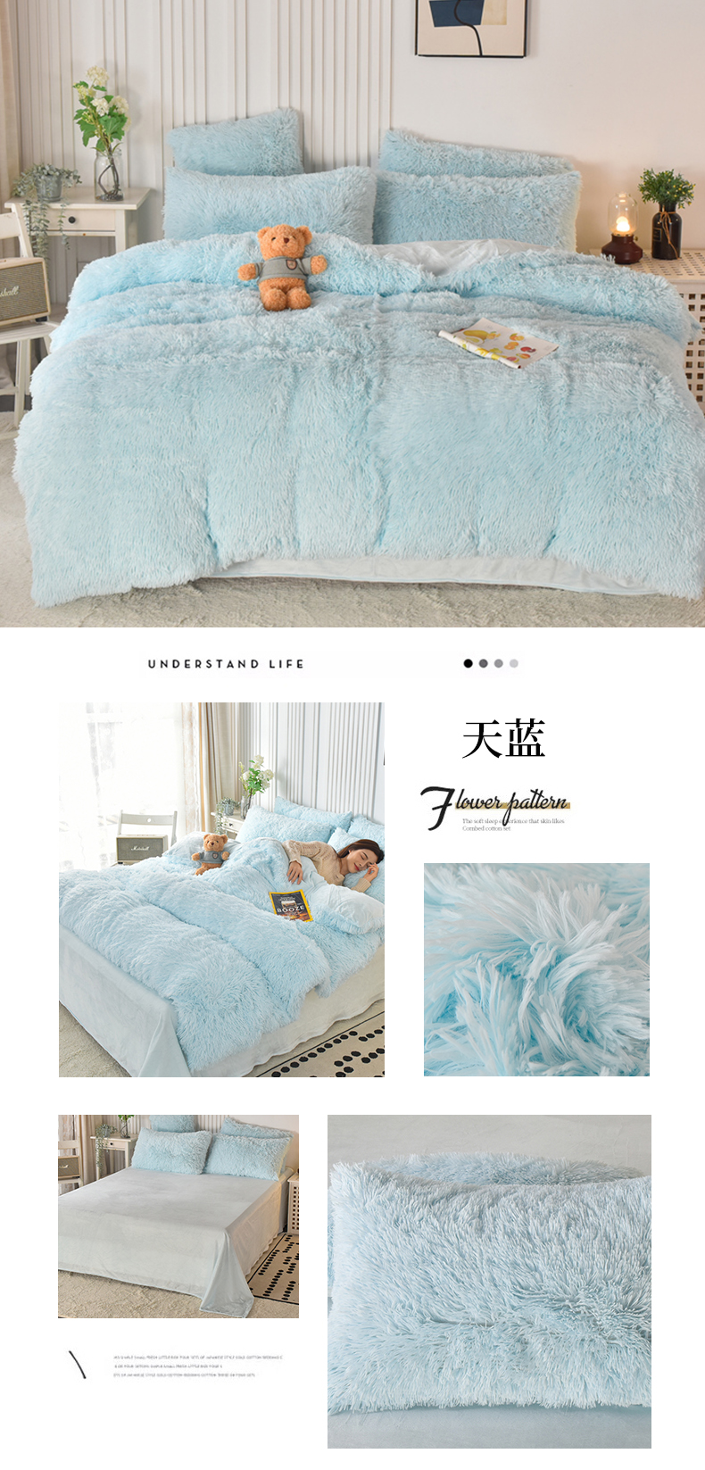 鑫喜莱 2024新款长毛绒四件套 天蓝