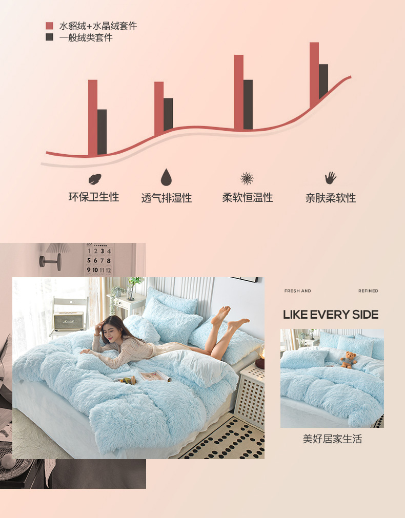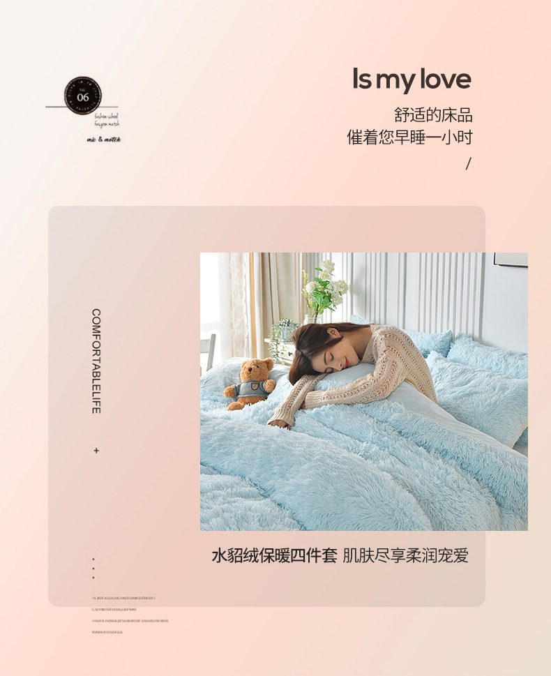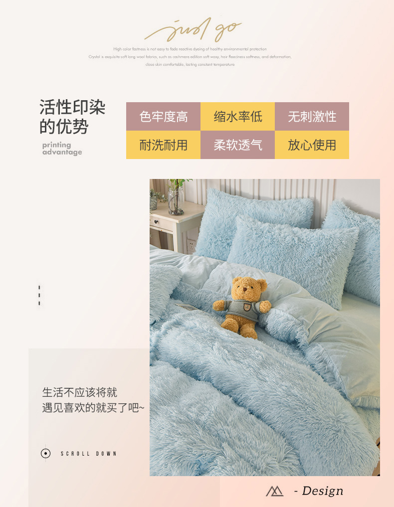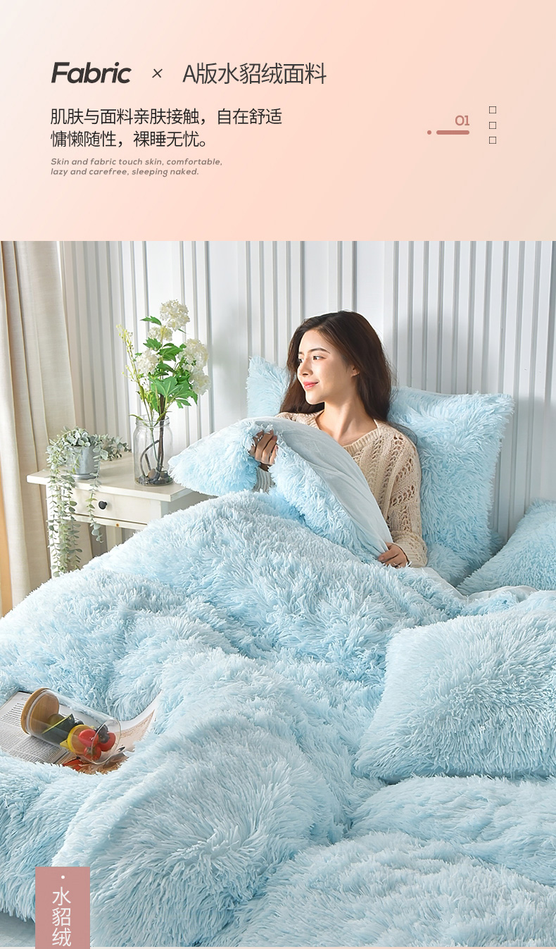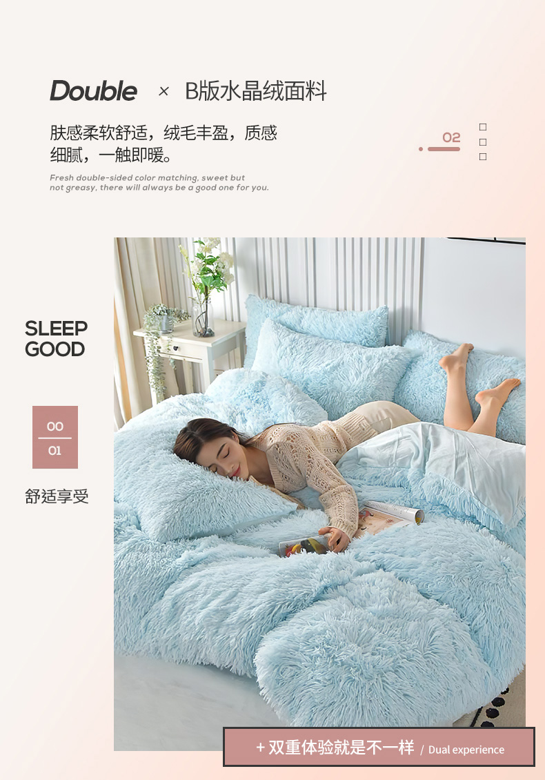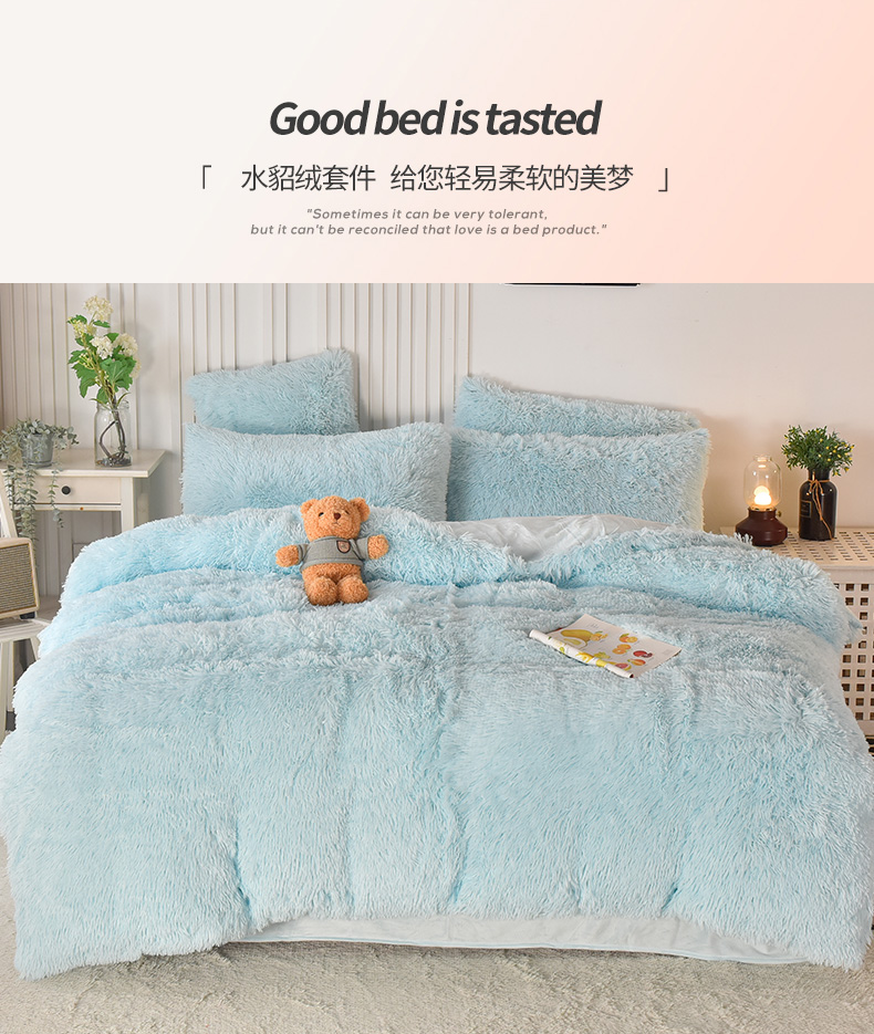 鑫喜莱 2024新款长毛绒四件套 天蓝