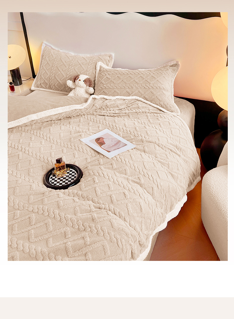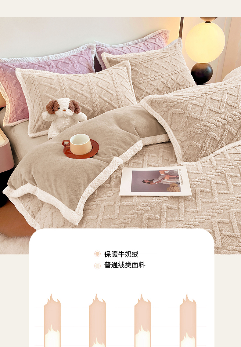 当前位置: 91家纺网 > 商品网购 > 床品套件 > 四件套 > 牛奶绒四件套 > 贝拉梦家纺 2024新款塔芙绒菱格纯色牛奶绒四件套 奶丝米