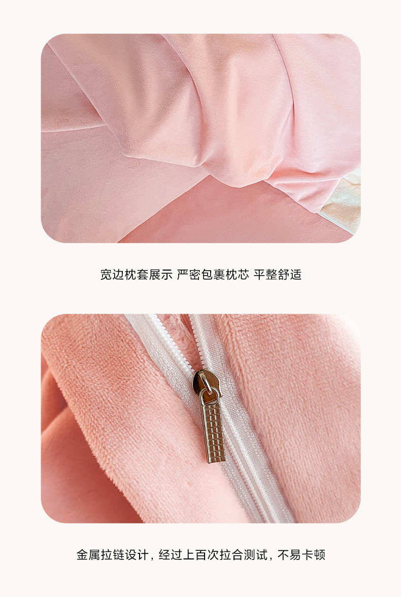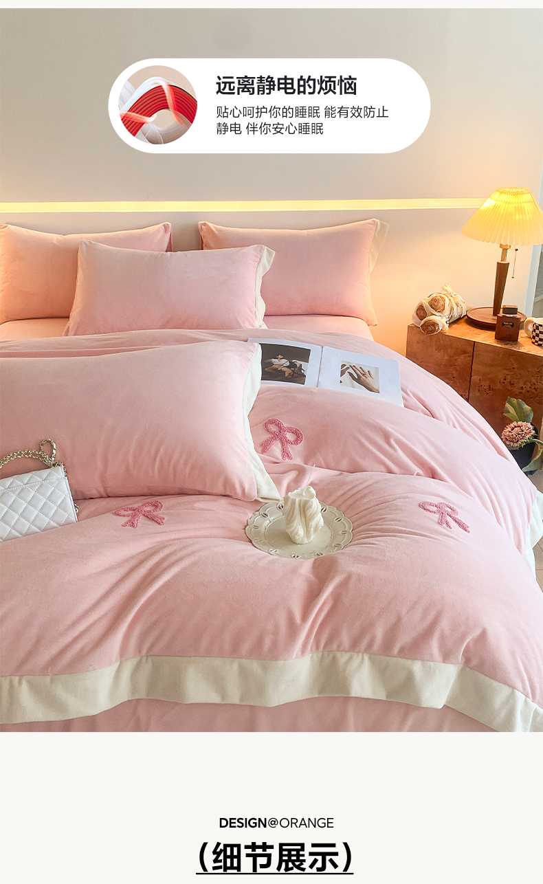 商品名称:2024新款水晶绒拼角满版毛巾绣四件套 蝴蝶结-蜜桃粉