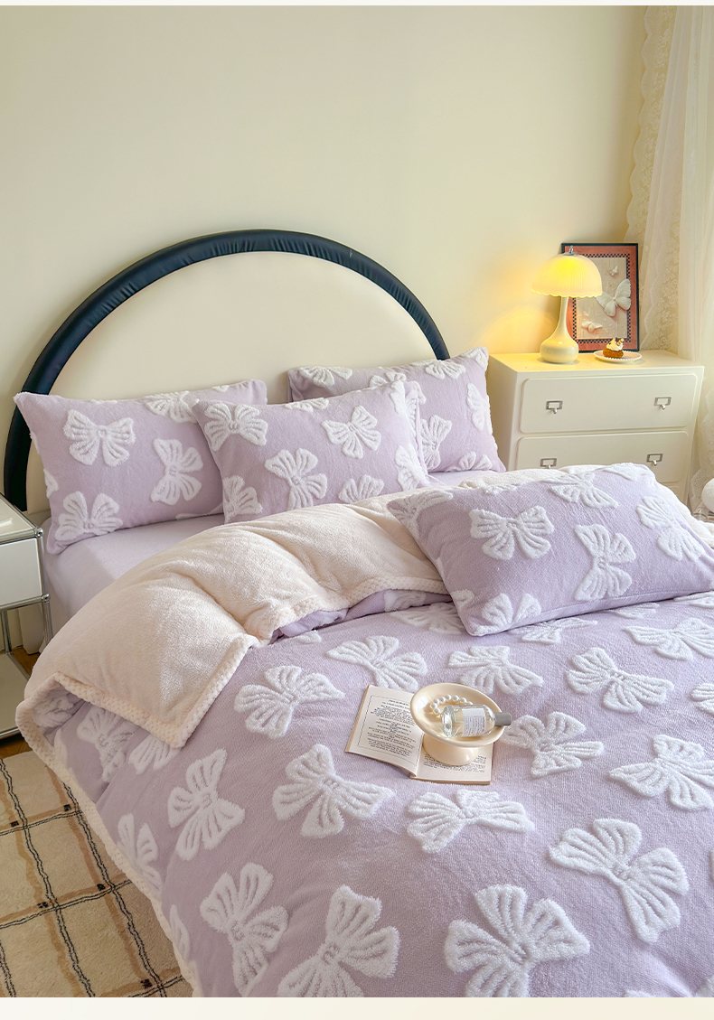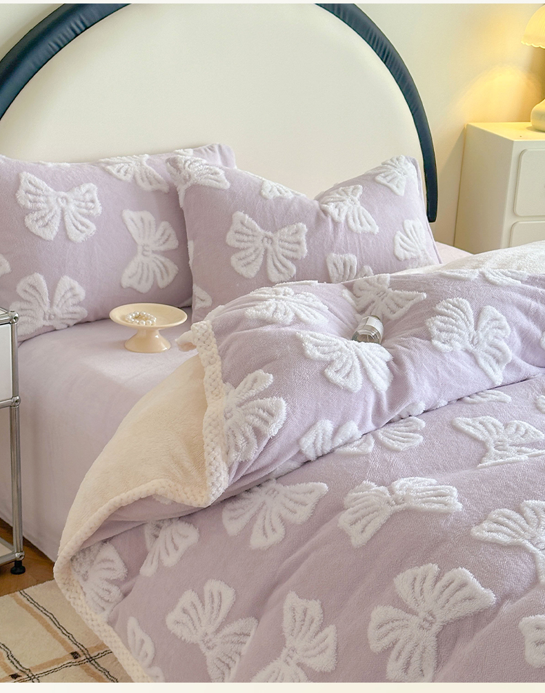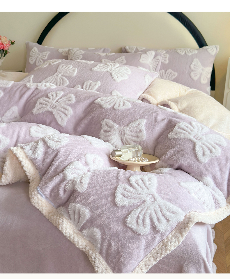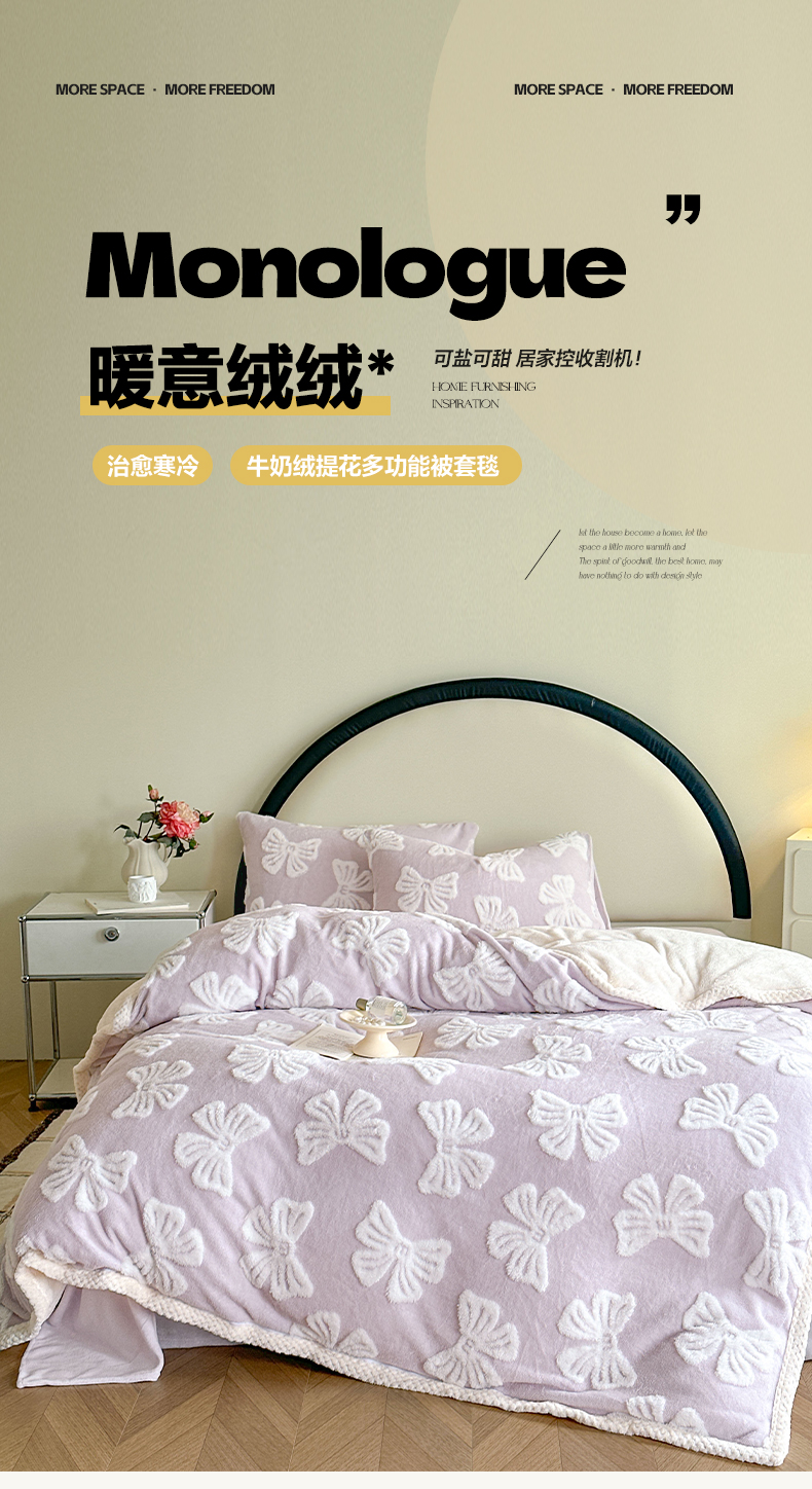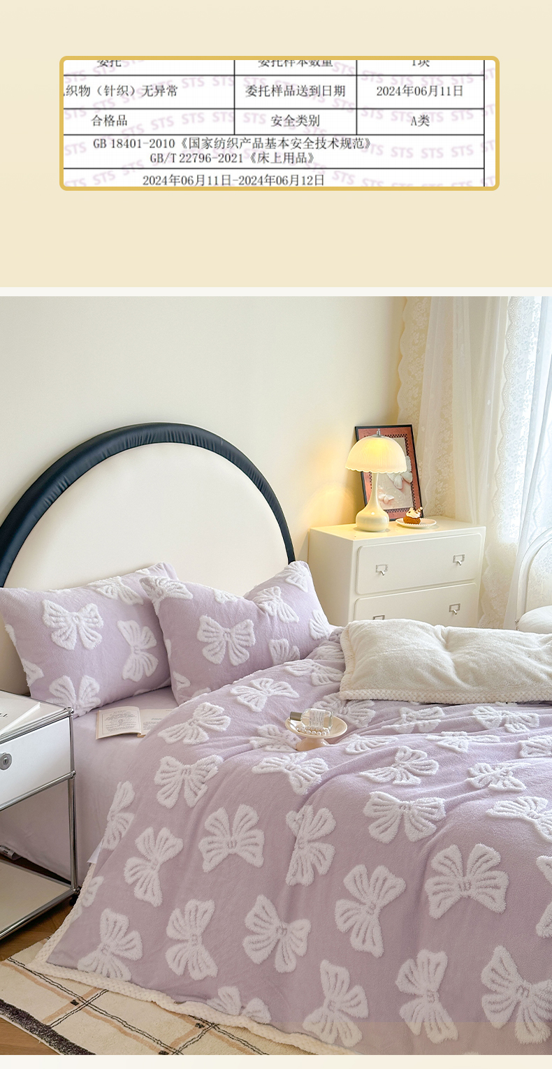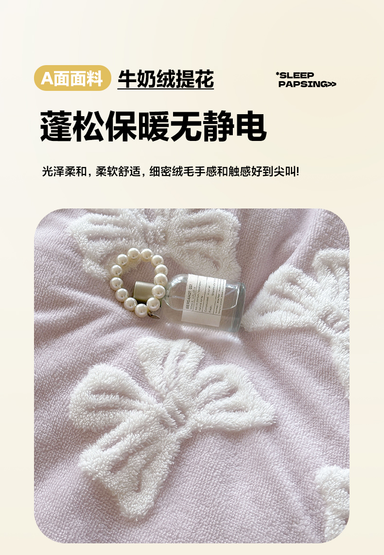 当前位置: 91家纺网 > 商品网购 > 毛毯休闲毯绒毯 > 毛毯 > 莱登卡奴 2024新款牛奶绒阳离子提花北极绒包边款多功能被套毯系列 包边款蝴蝶结紫