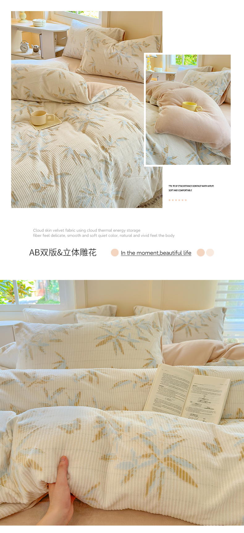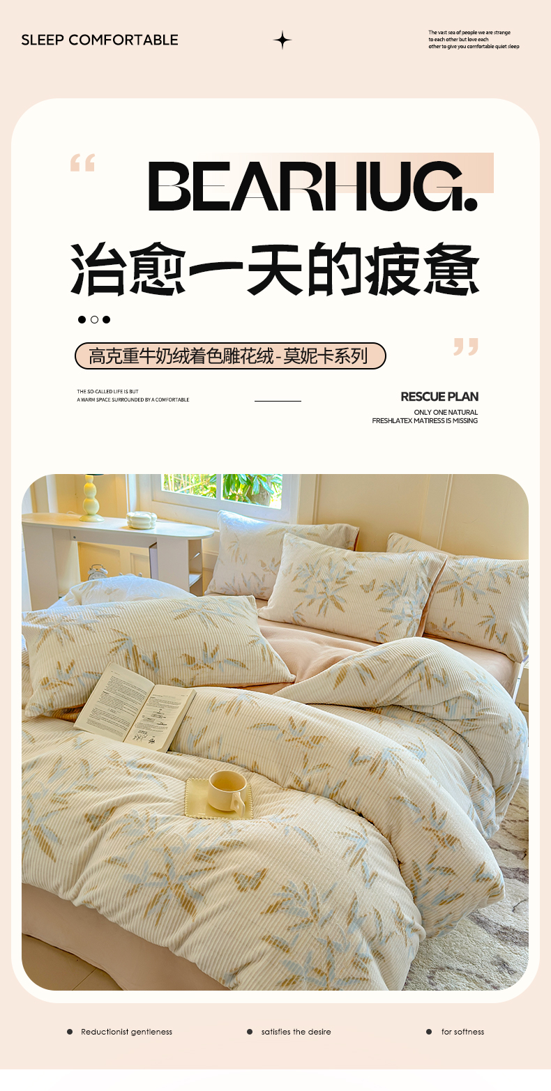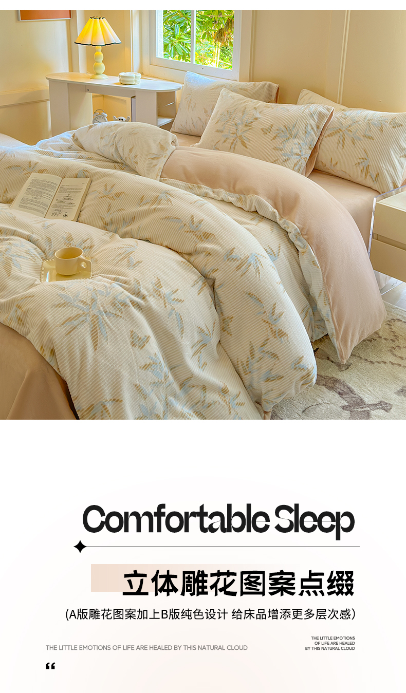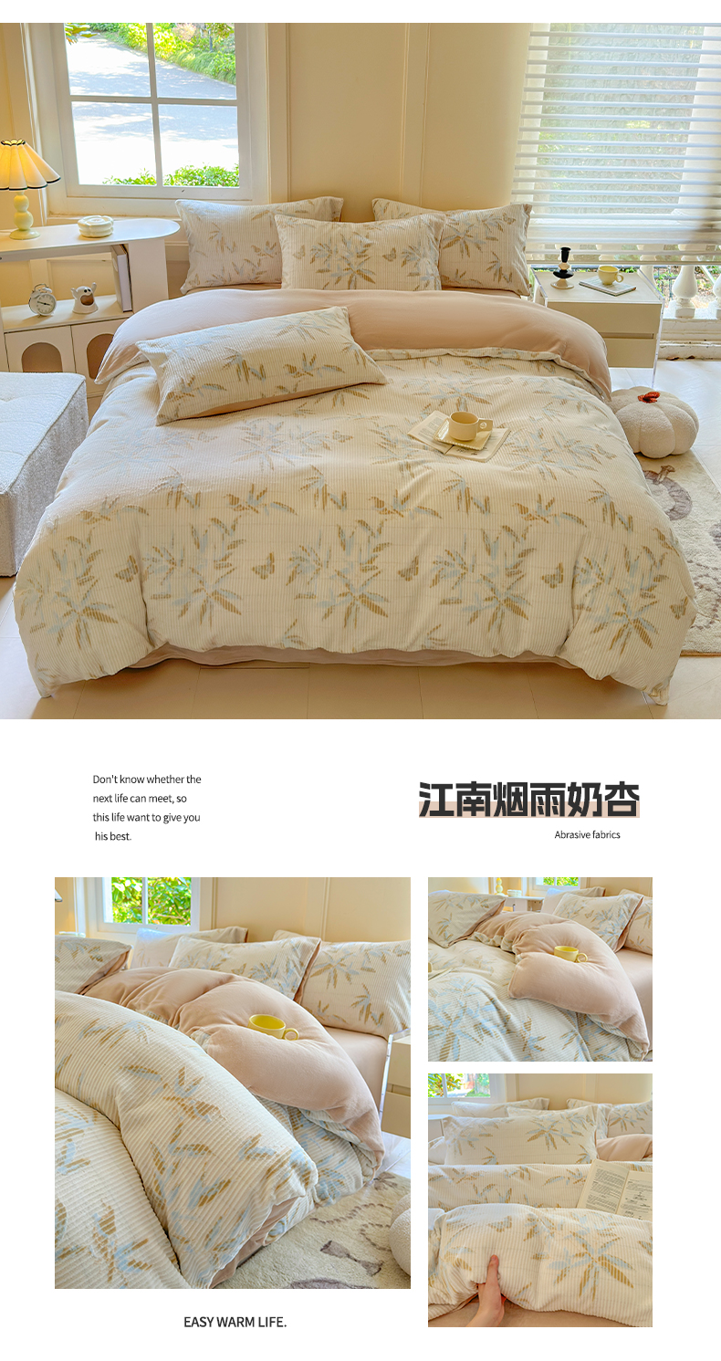 当前位置: 91家纺网 > 商品网购 > 床品套件 > 四件套 > 牛奶绒四件套 > 莱登卡奴 2024新款高克重牛奶绒着色雕花绒四件套-莫妮卡系列 江南烟雨奶杏