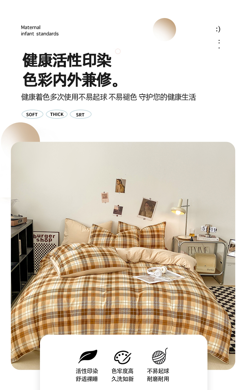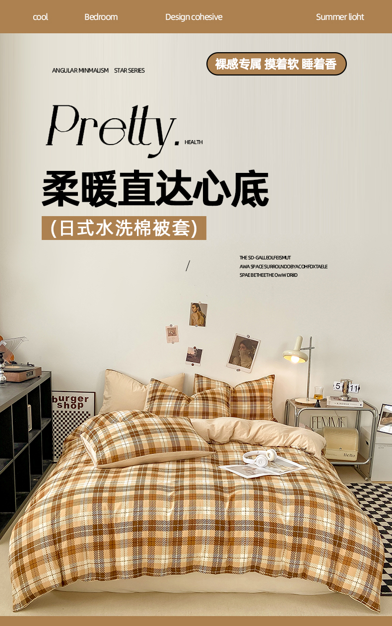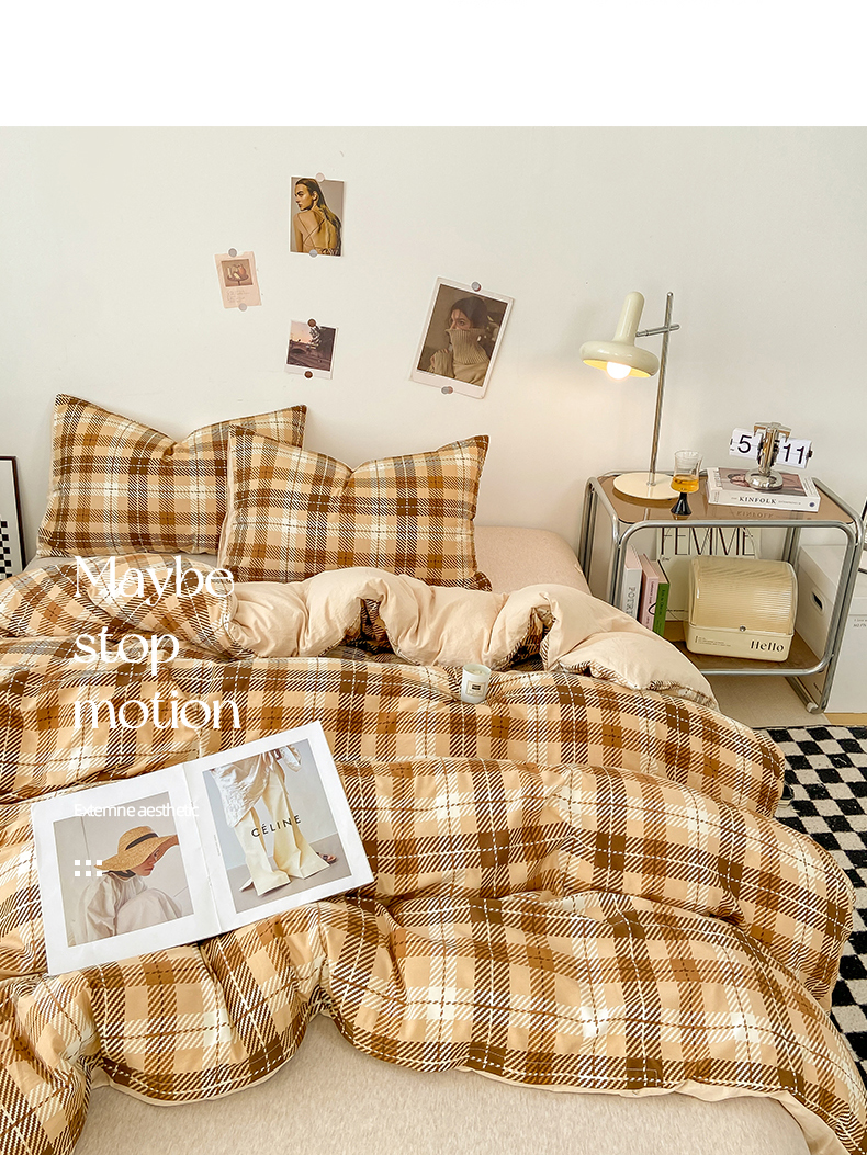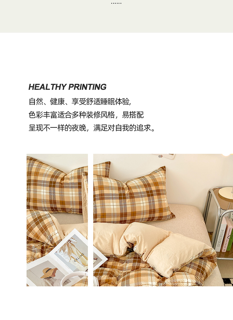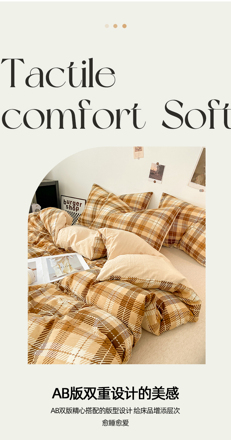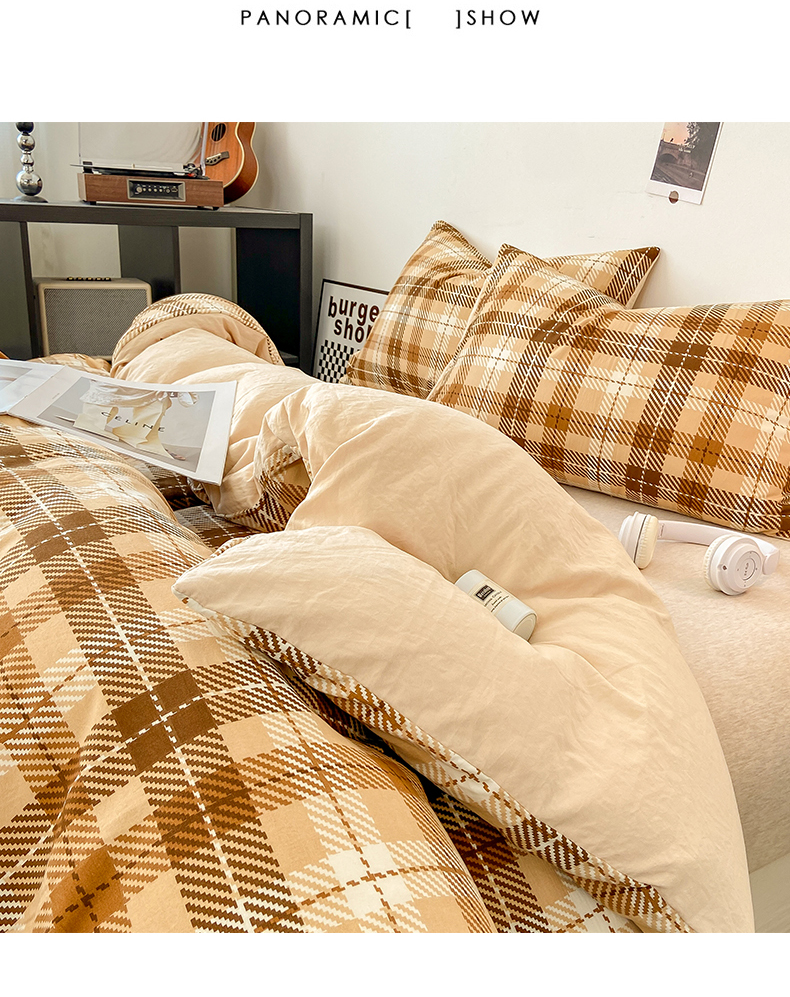 悦织湾家纺 2025新款日式简约格子水洗棉单品被套系列 美拉德