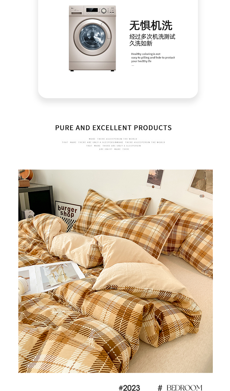 商品名称:悦织湾家纺 2025新款日式简约格子水洗棉单品被套系列 美拉德