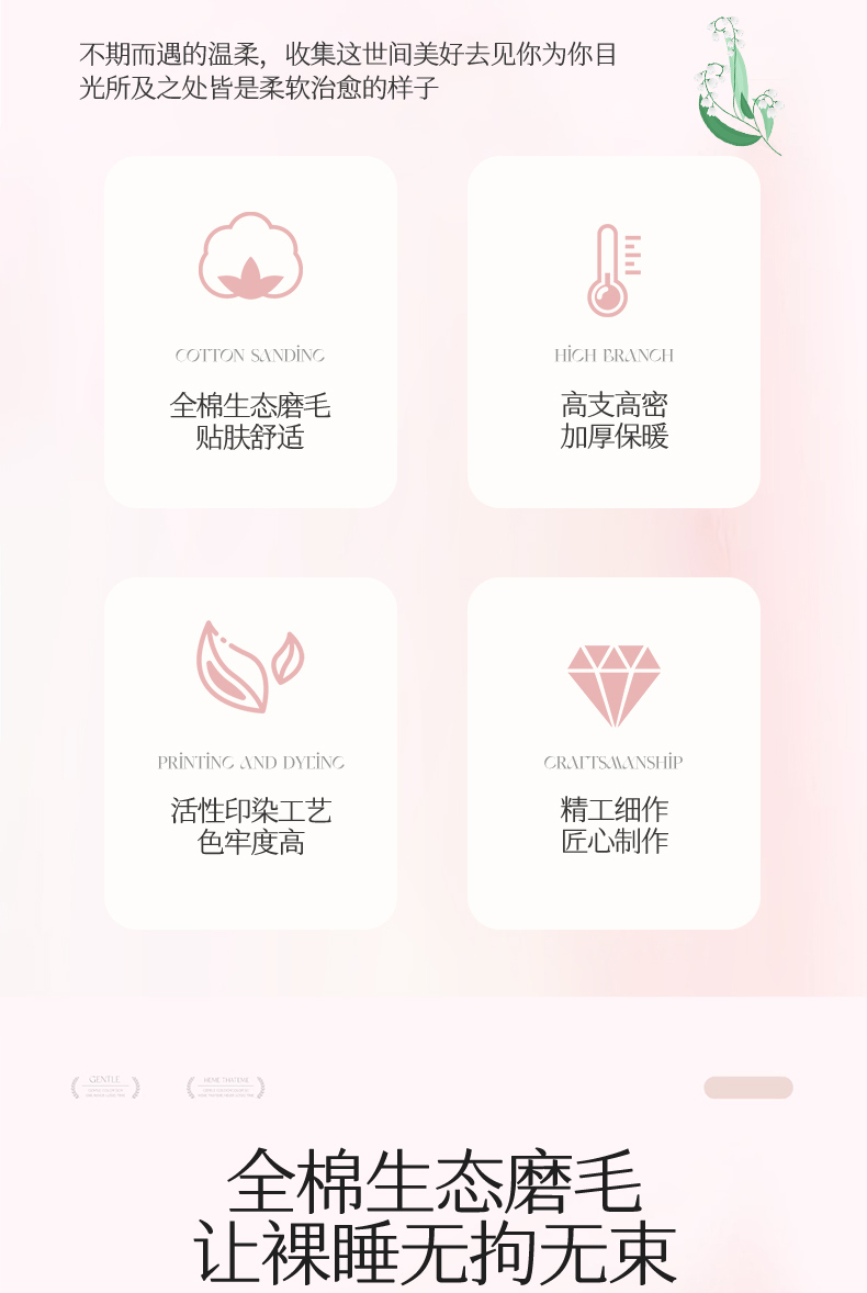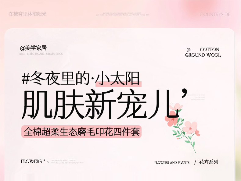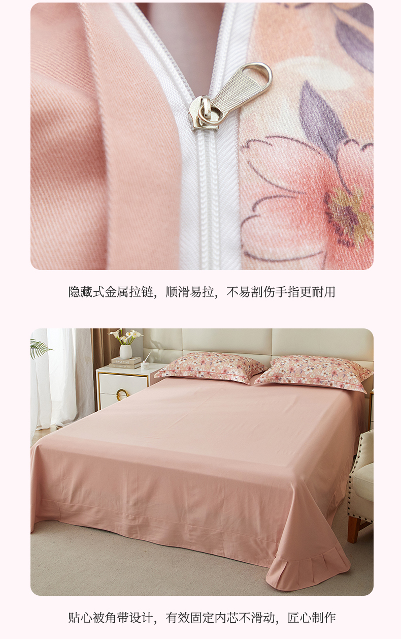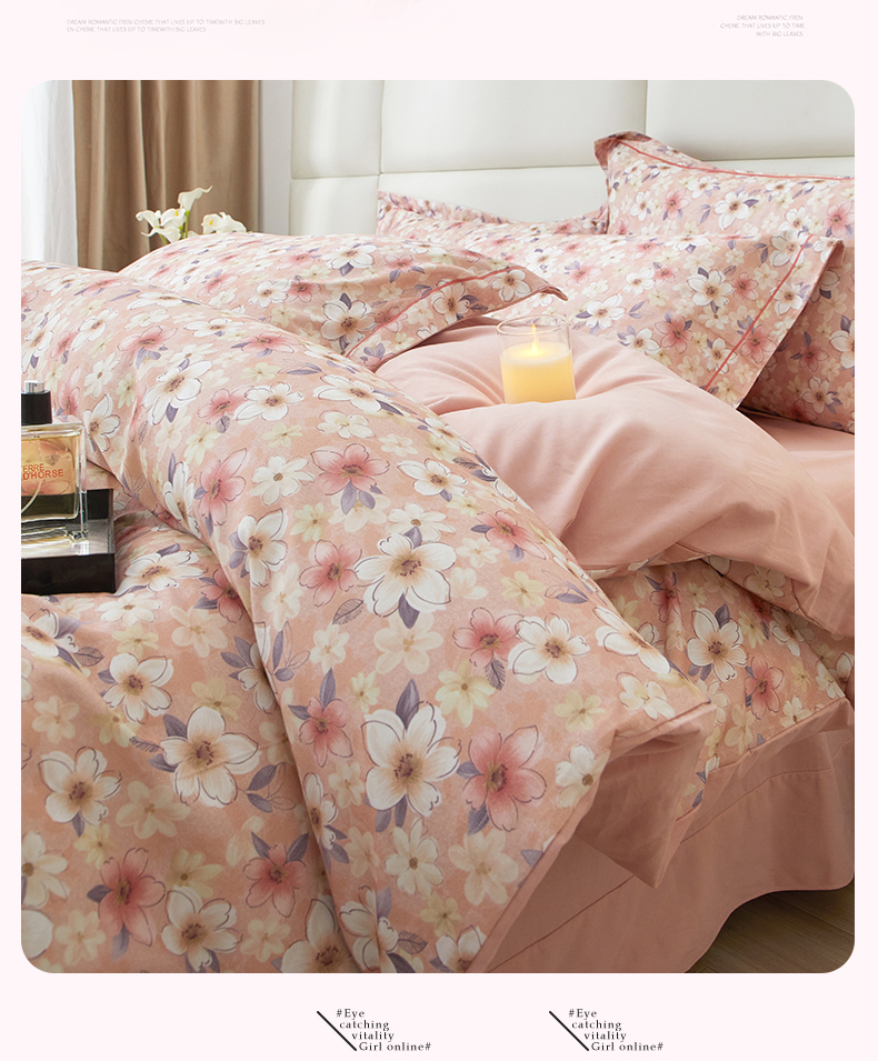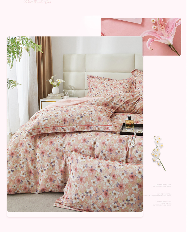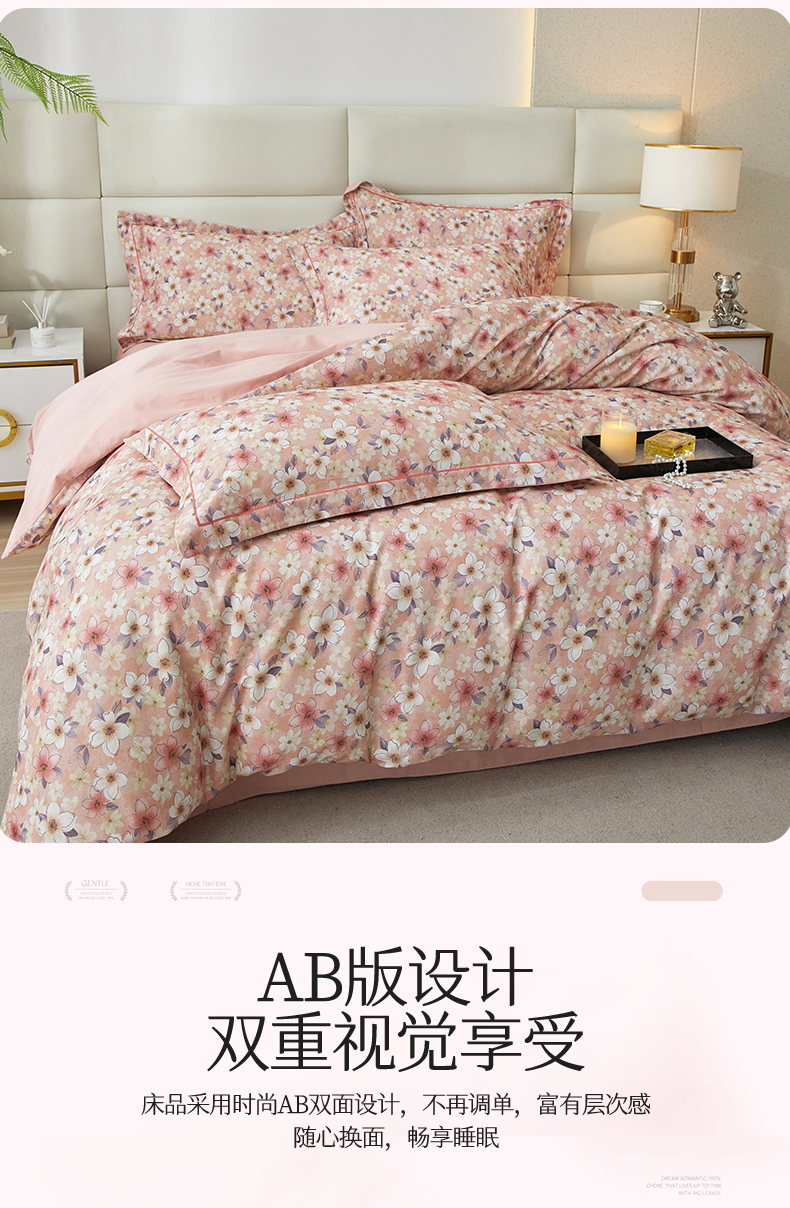 商品名称:品乐家纺 2024新款32支全棉超柔生态磨毛四件套 爱在花开-粉