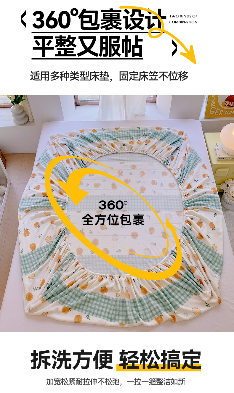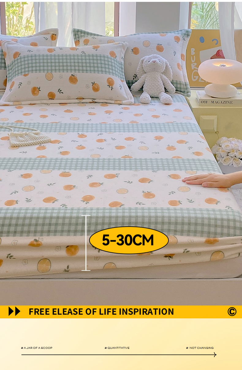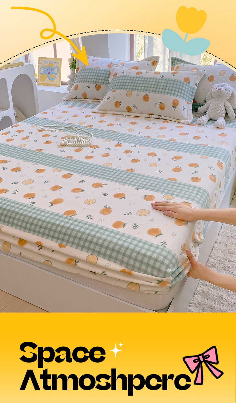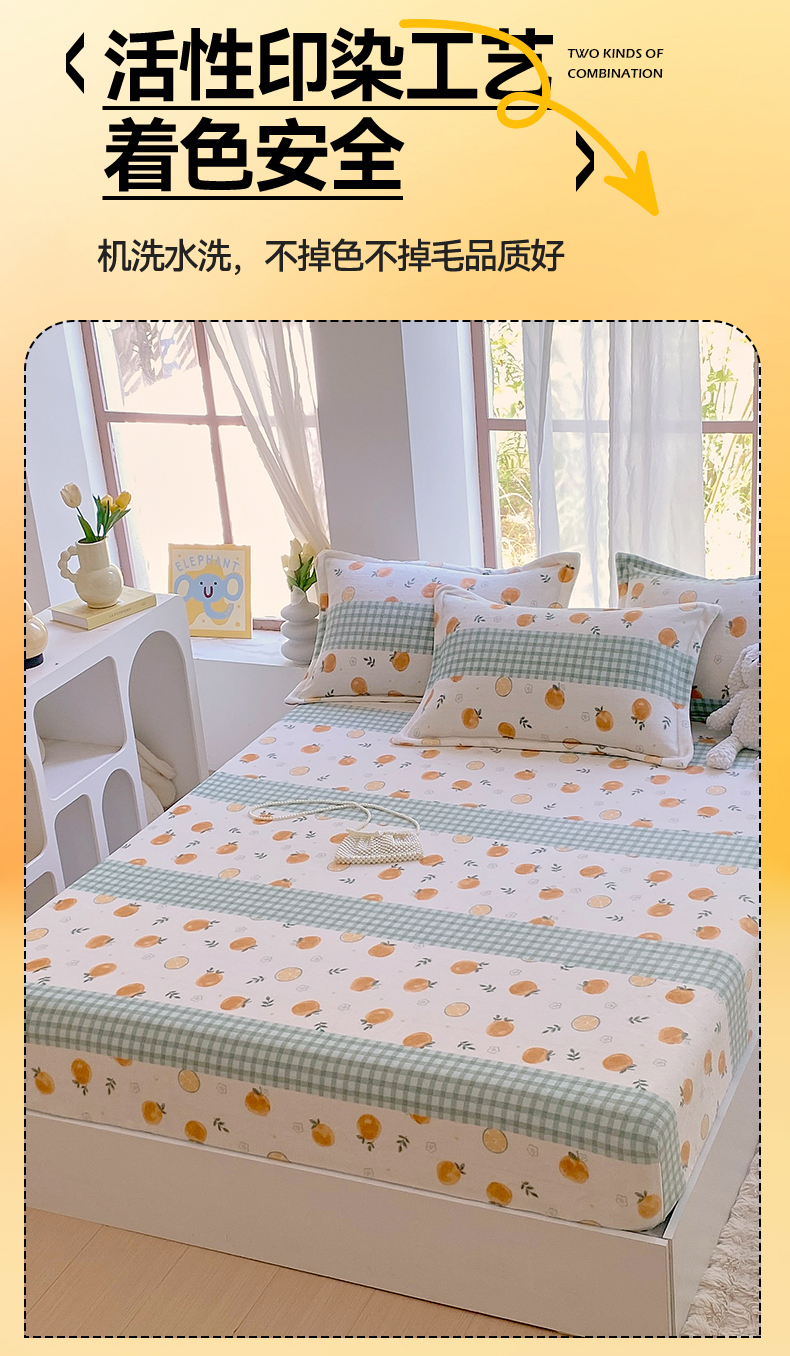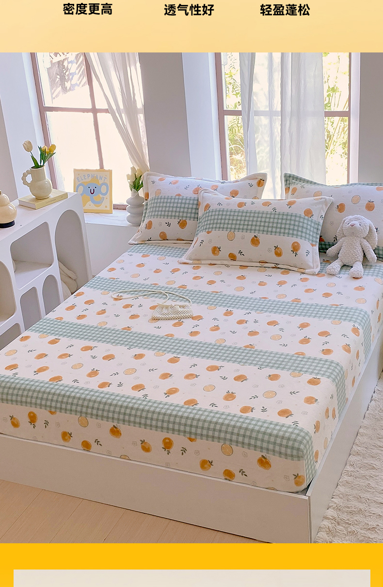 凯儿家纺 2024新款加厚高克重印花系列单床笠 香蜜甜橙