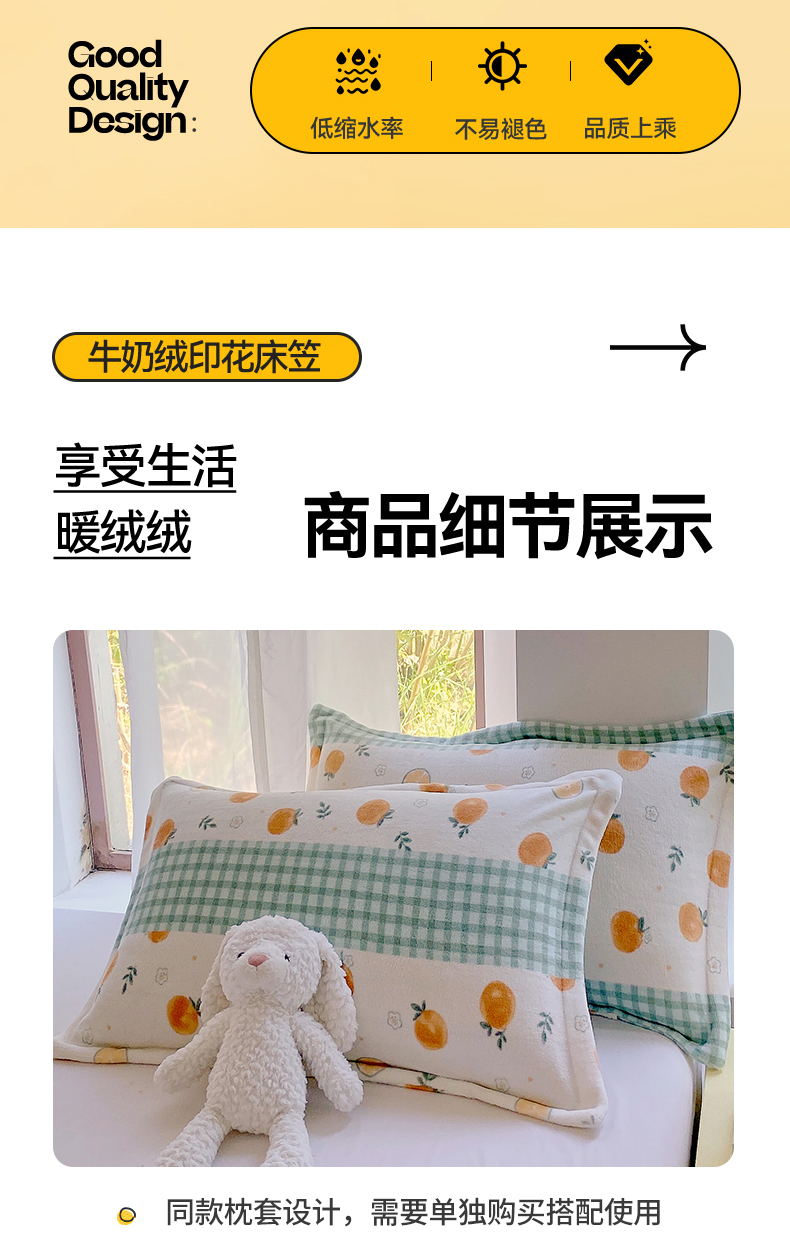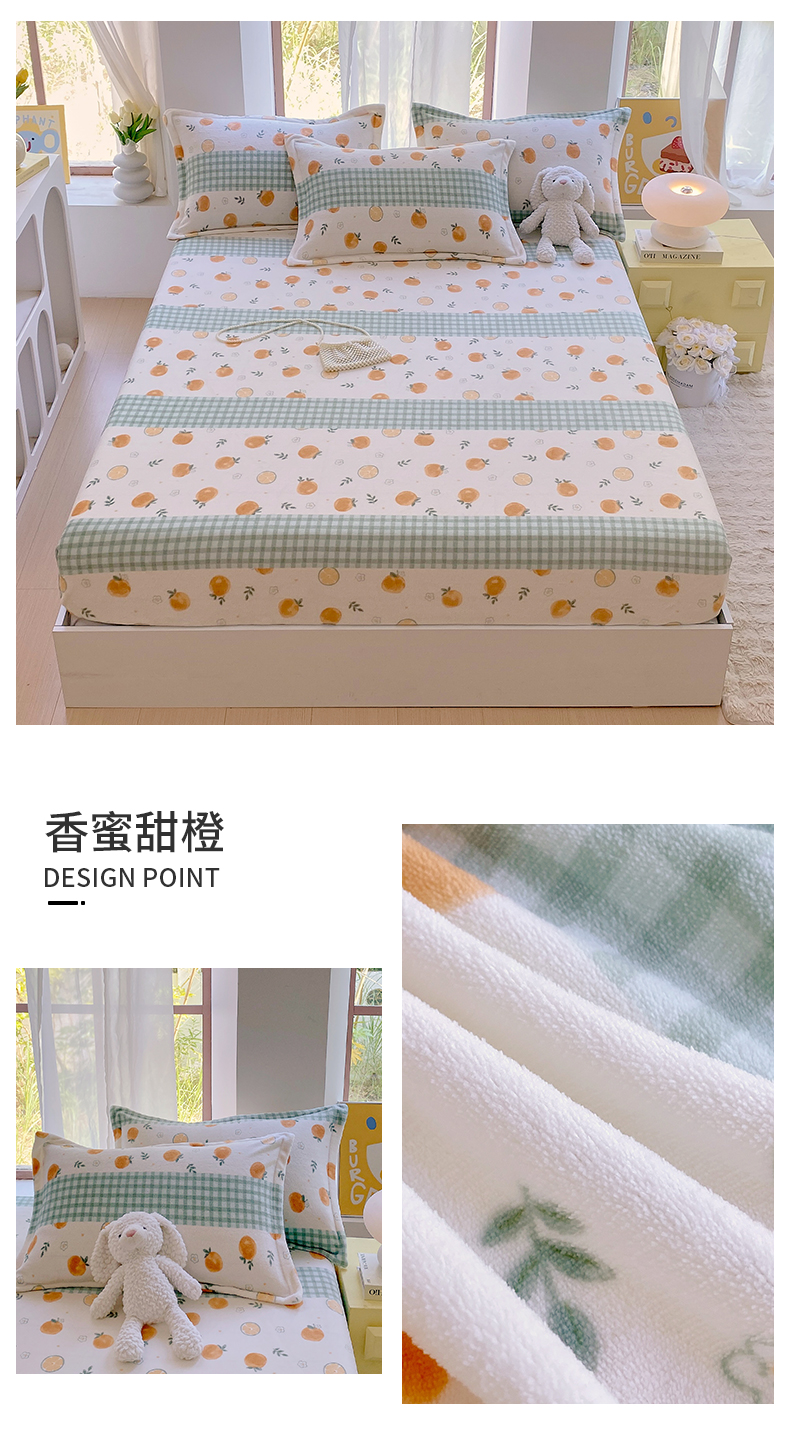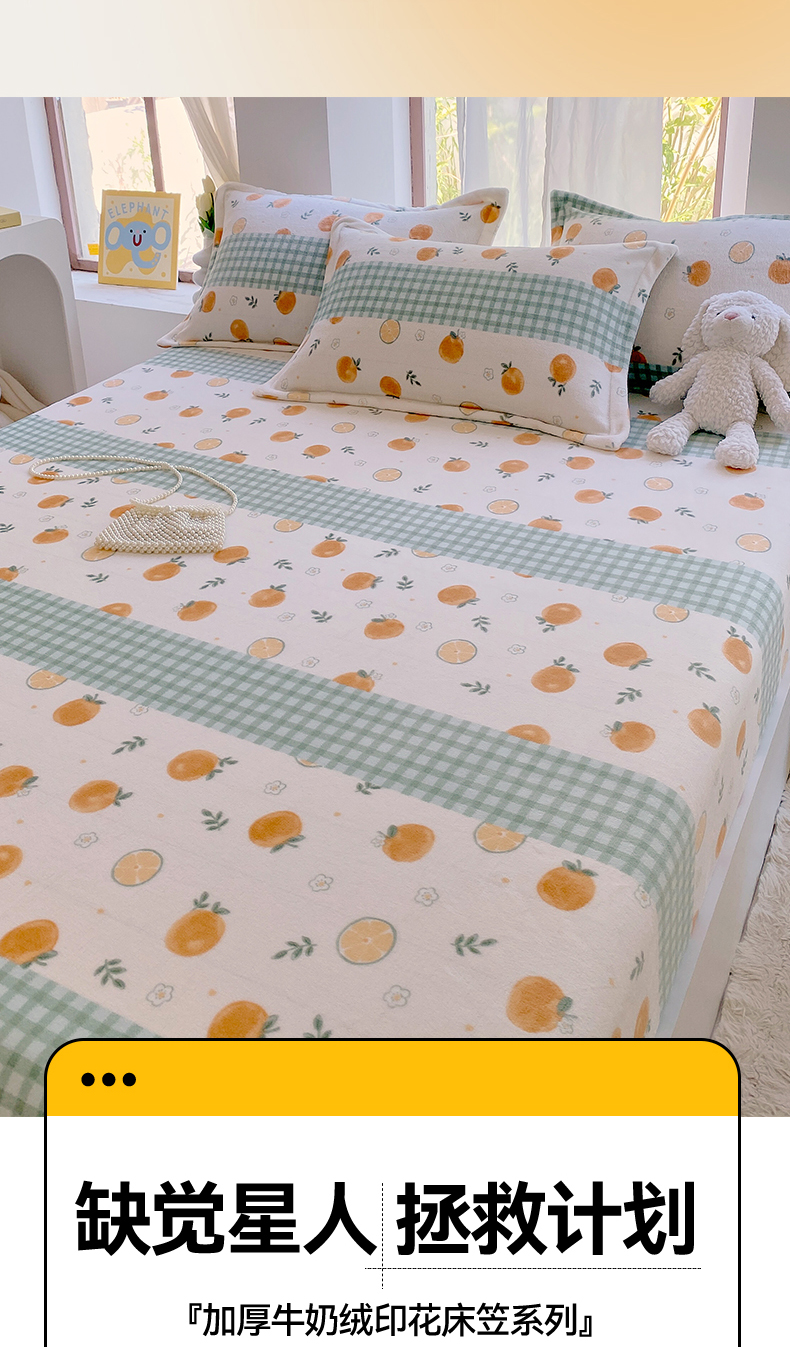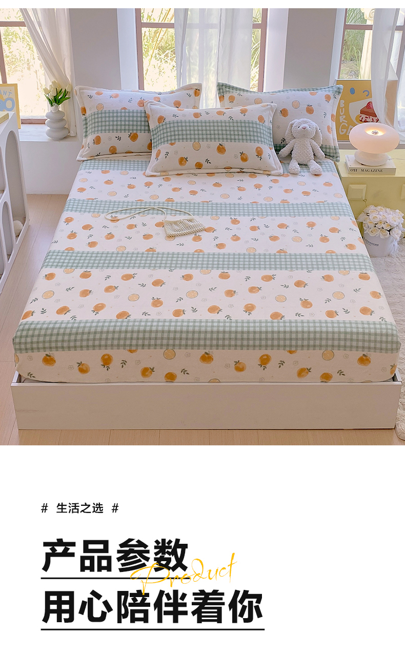 商品名称:凯儿家纺 2024新款加厚高克重印花系列单床笠 香蜜甜橙