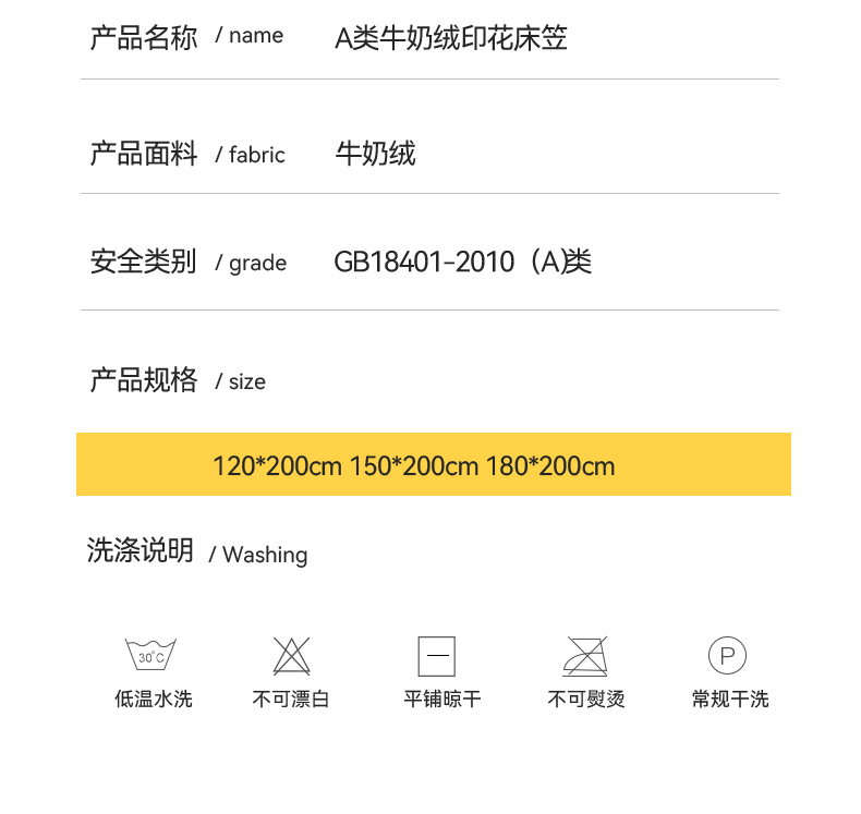 床单/床笠尺寸