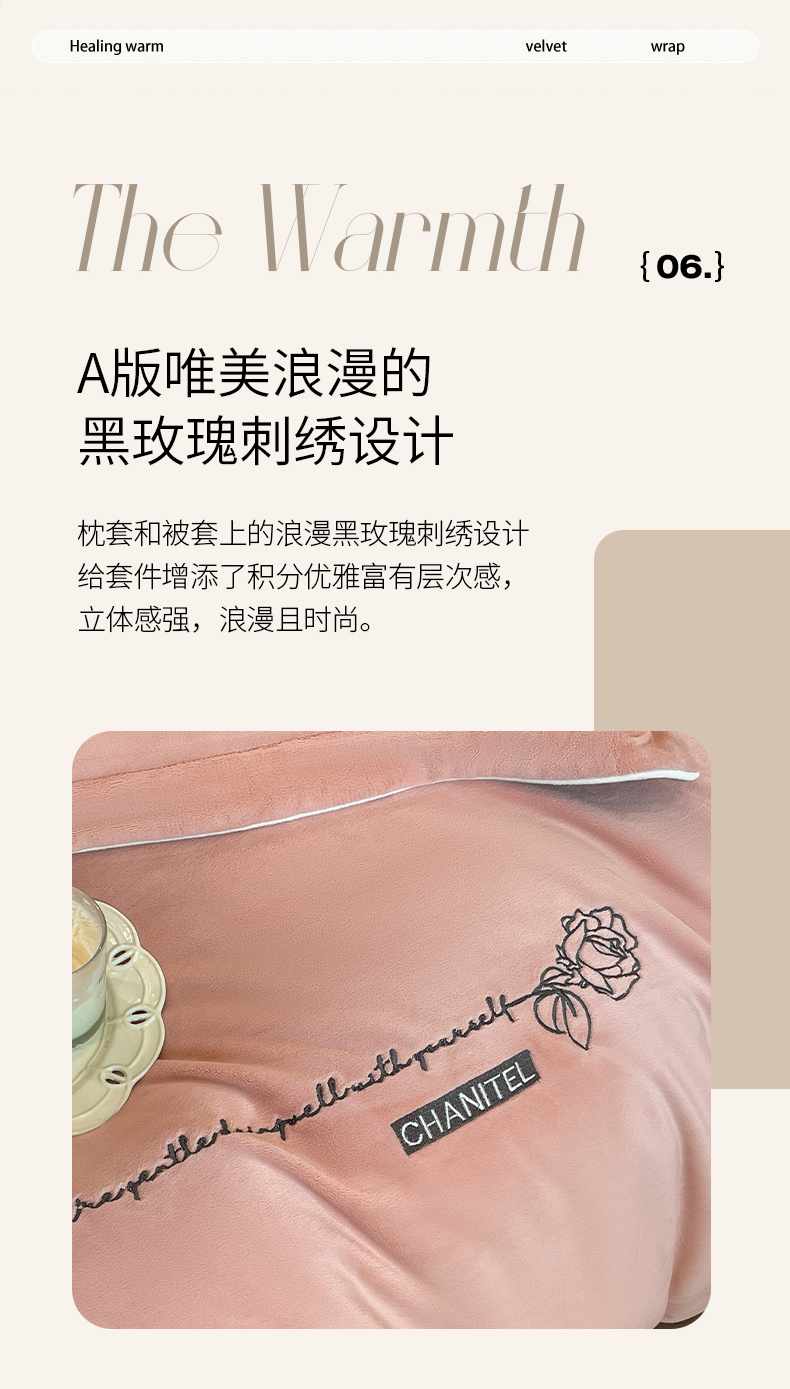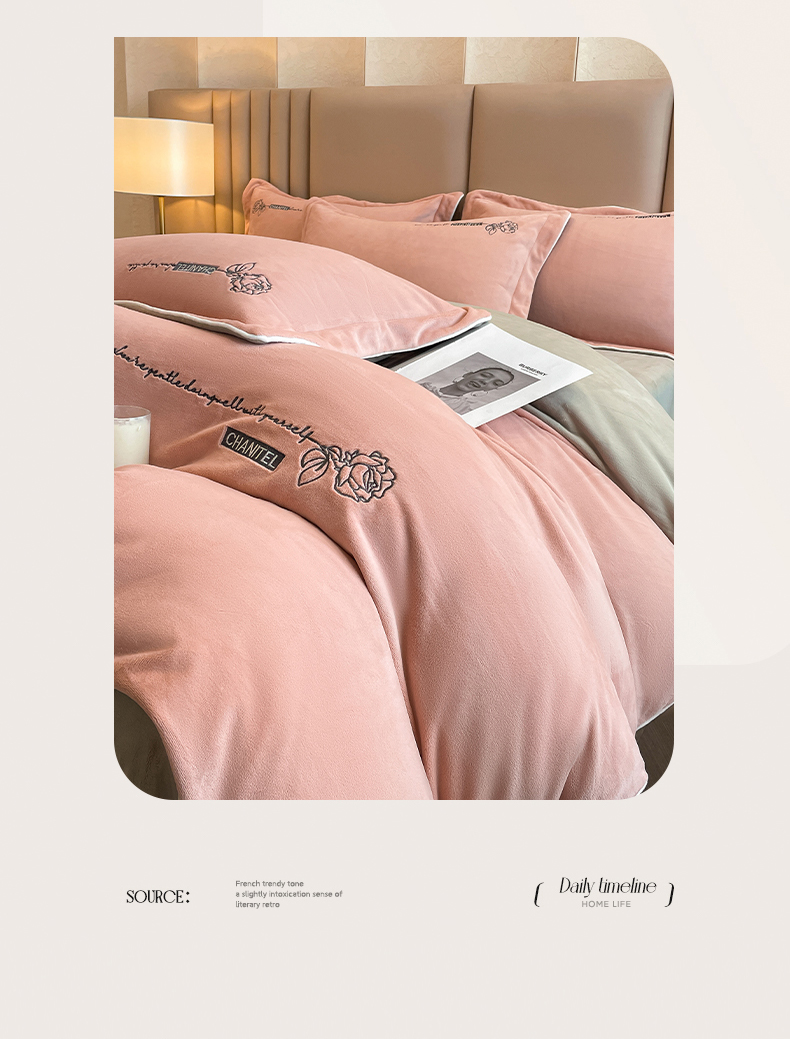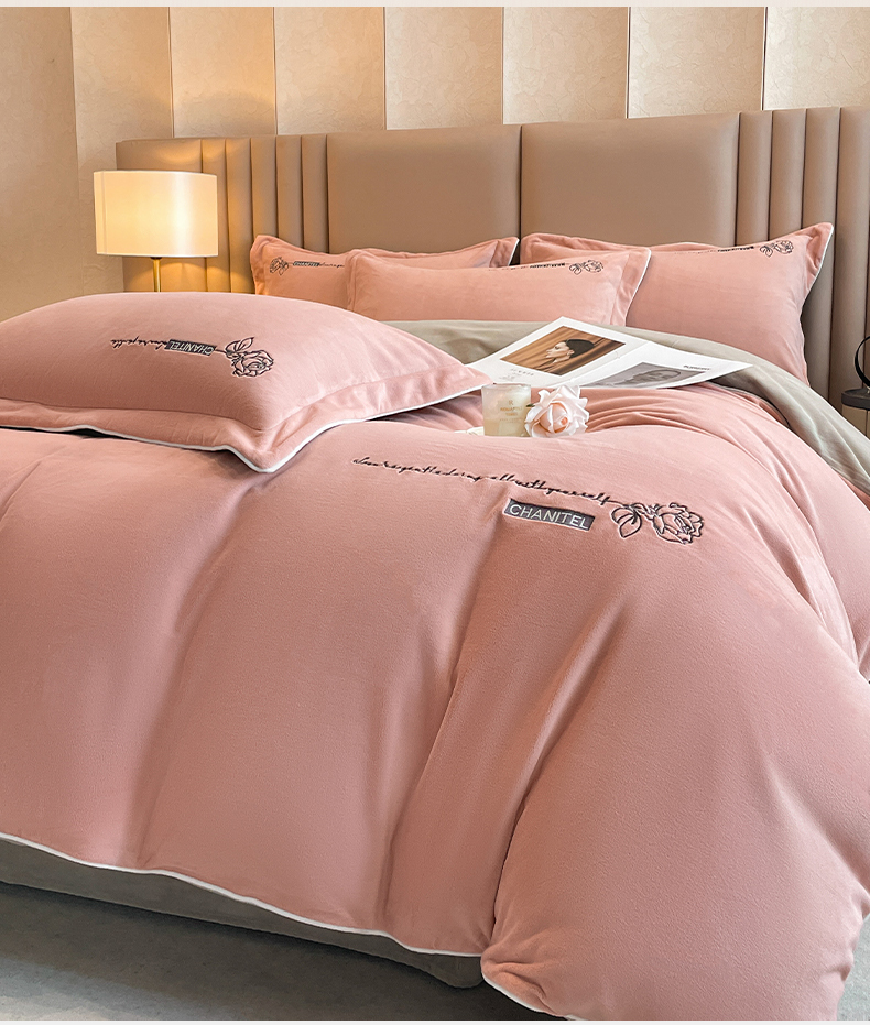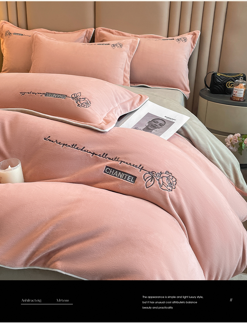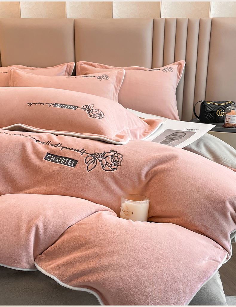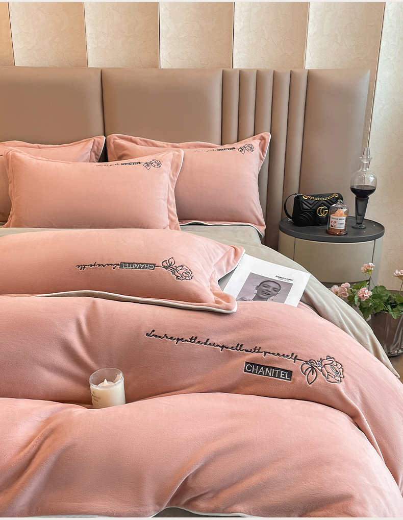 (总)嗯呢家纺 2024新款A类高克重全消光韩版雕花贴布绣牛奶绒四件套-玫瑰恋人,玫瑰恋人-湖水蓝,玫瑰恋人-米红,玫瑰恋人-藕粉,玫瑰恋人-樱花粉