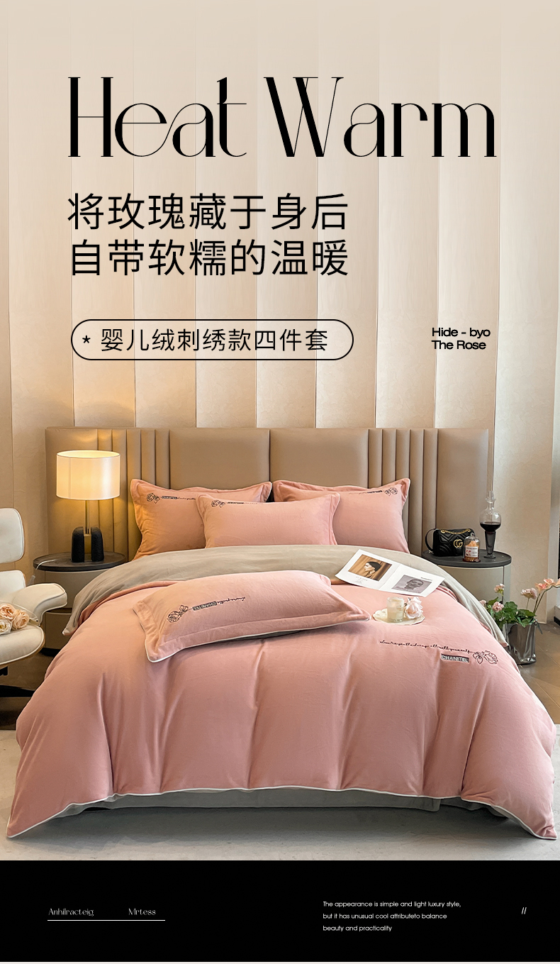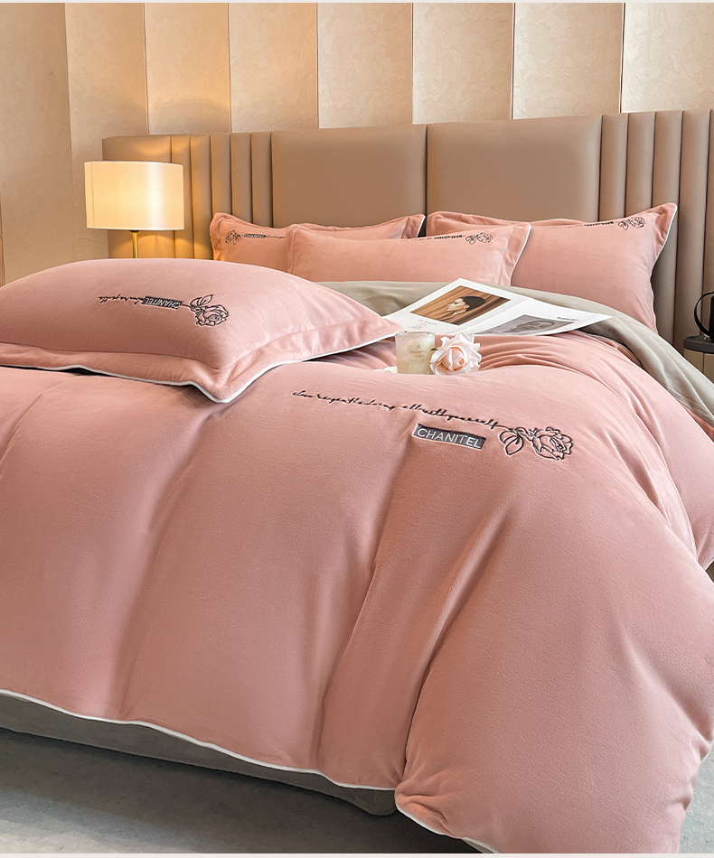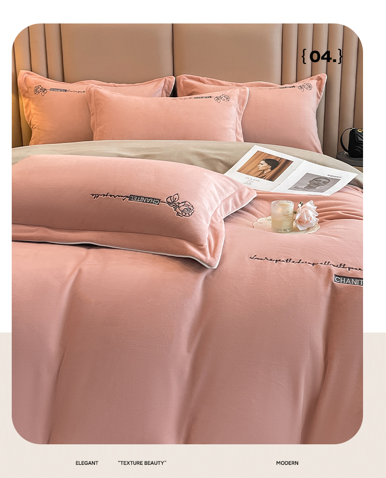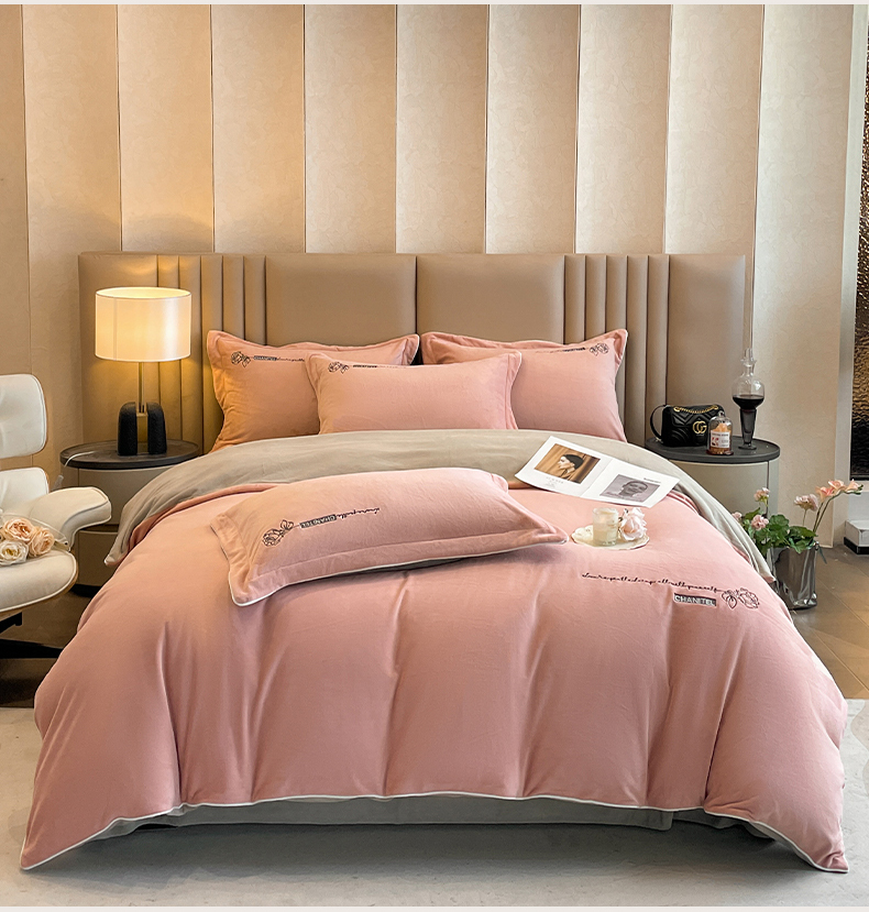 (总)嗯呢家纺 2024新款A类高克重全消光婴儿绒刺绣双拼四件套,豆沙-蜜合灰,豆沙-银灰,漫灰-蜜合灰,莫兰迪粉-漫灰,浅可可-弗肯红,杏仁-蜜合灰