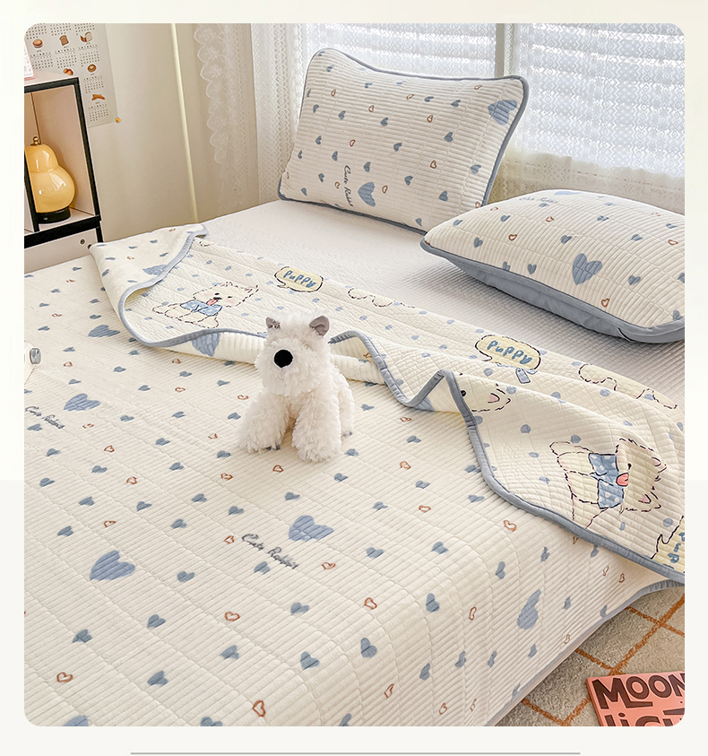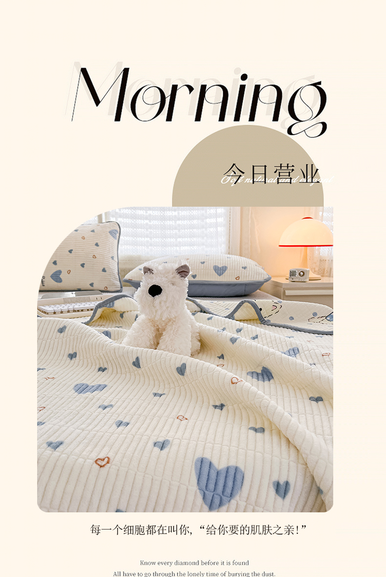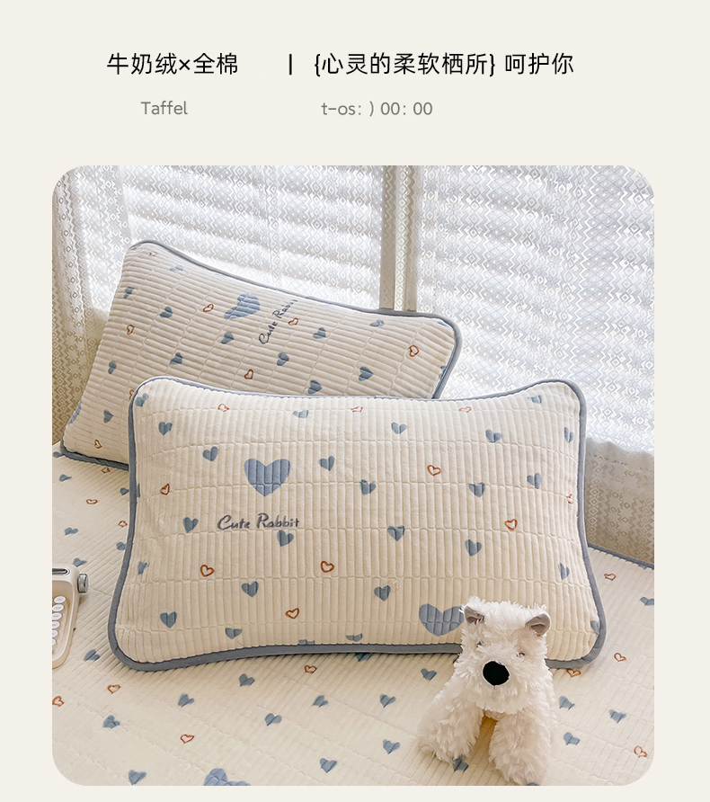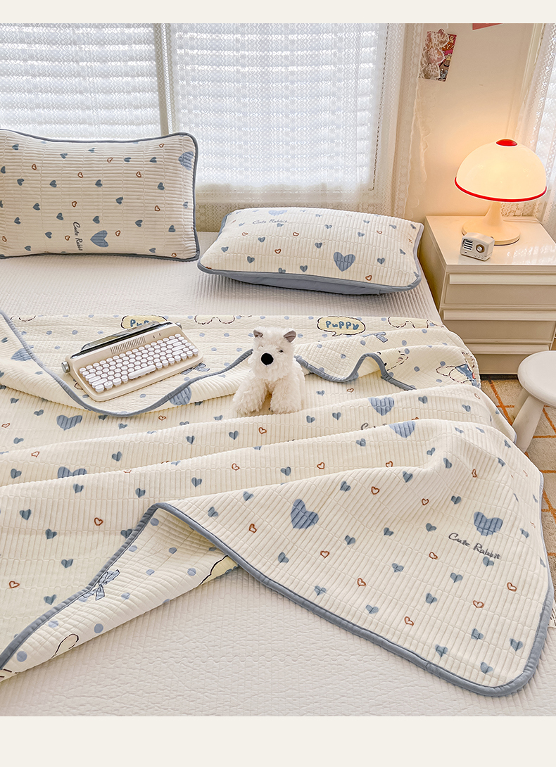 茉夕家纺 2024新款奶芙纯棉印花牛奶绒水洗床盖 奶芙-爱心蓝