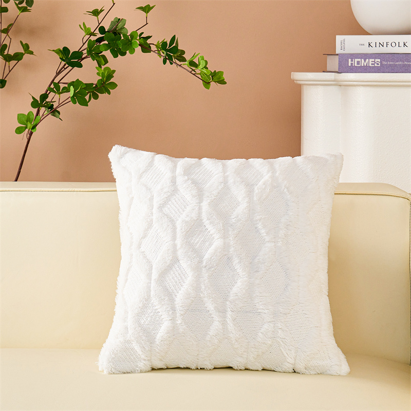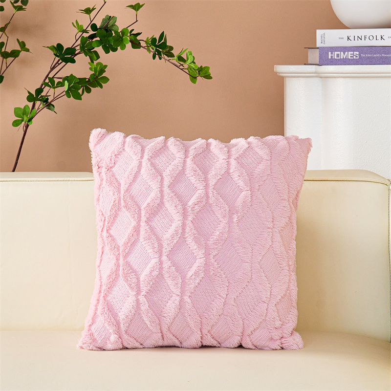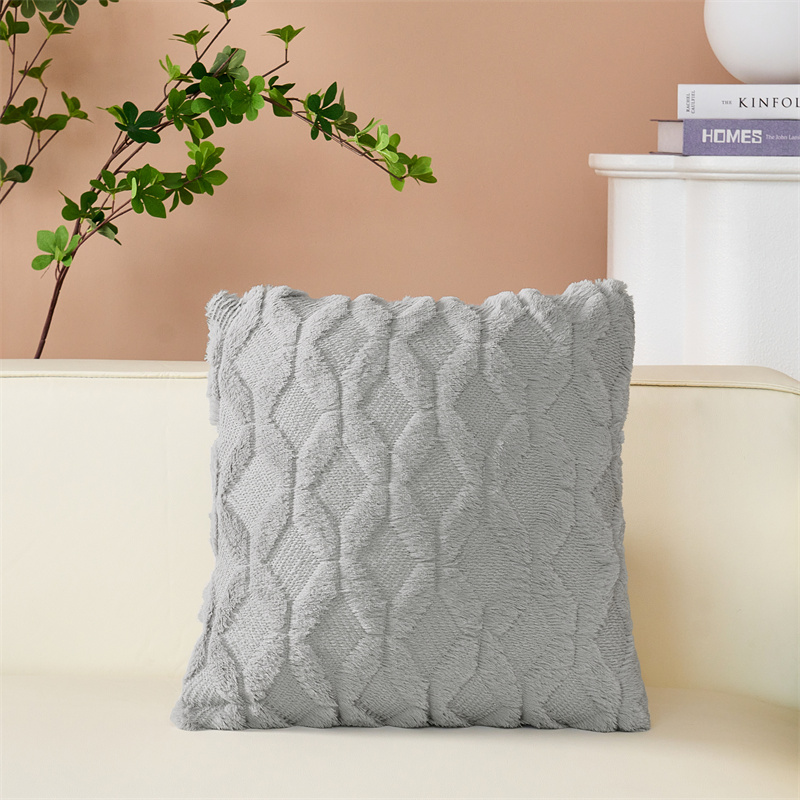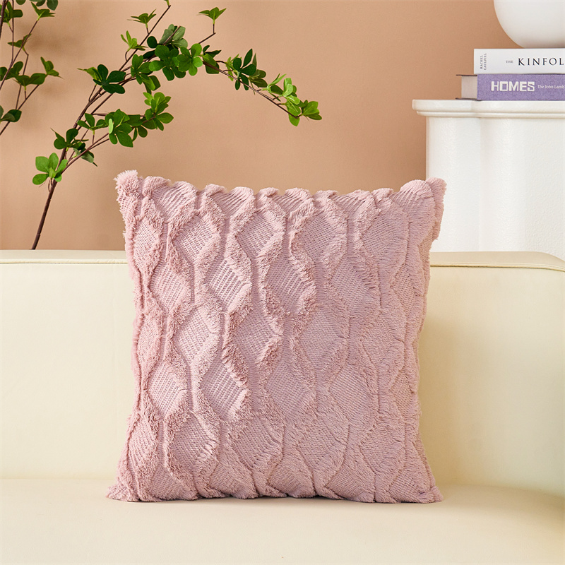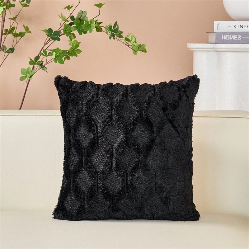 (总)品尚嘉 跨境亚马逊ins毛绒抱枕套纯色几何菱形沙发靠垫