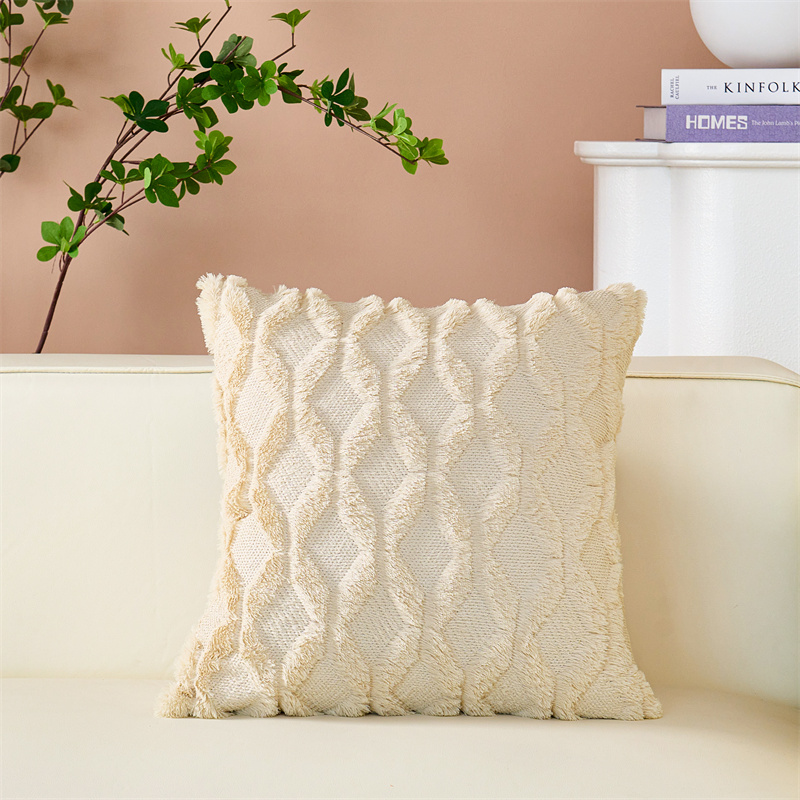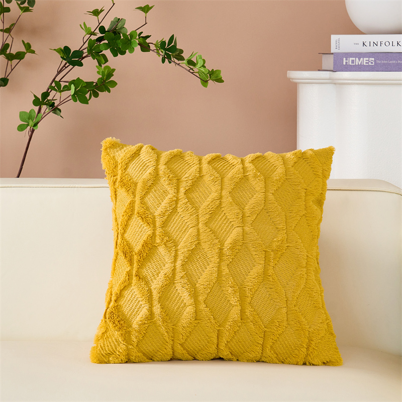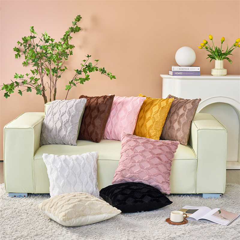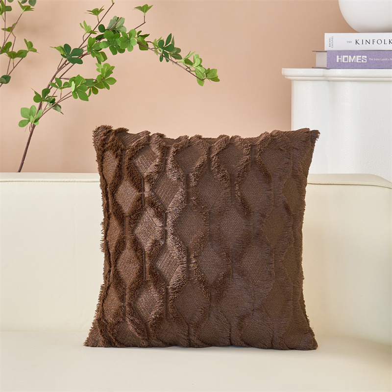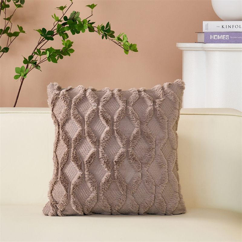 (总)品尚嘉 跨境亚马逊ins毛绒抱枕套纯色几何菱形沙发靠垫