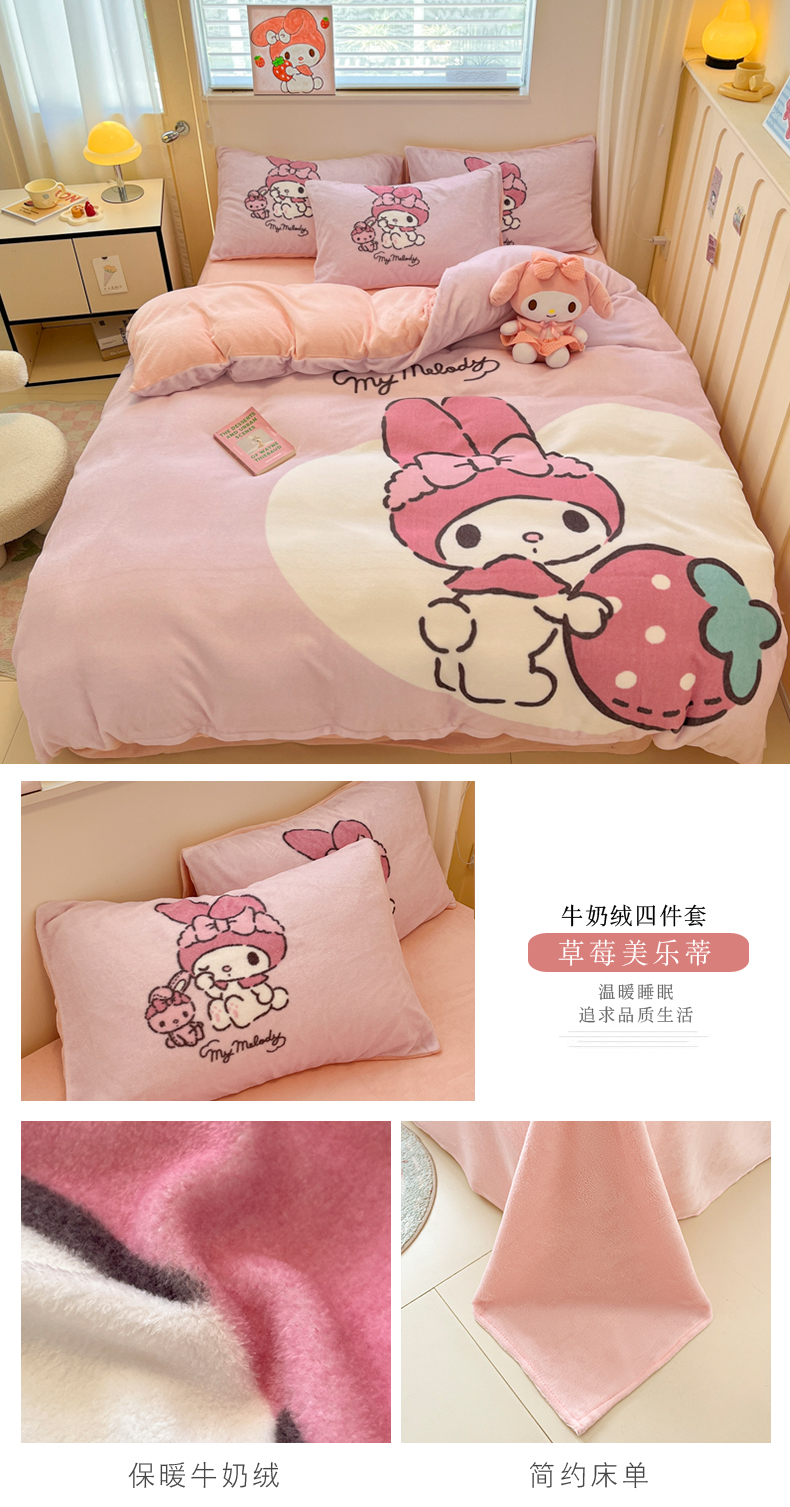 当前位置: 91家纺网 > 商品网购 > 床品套件 > 四件套 > 牛奶绒四件套 > 金爱家 2024新款三丽鸥大版加厚牛奶绒四件套-第二批 绒R草莓美乐蒂