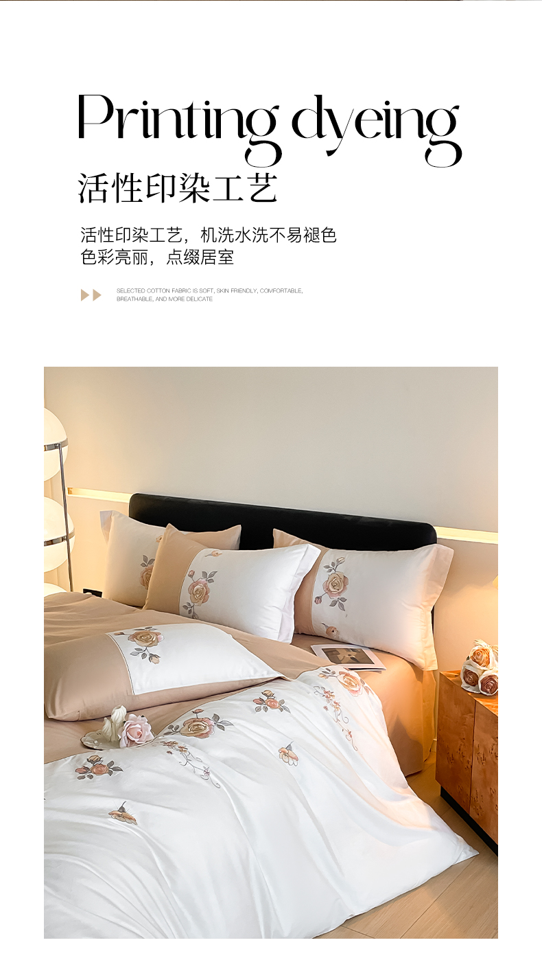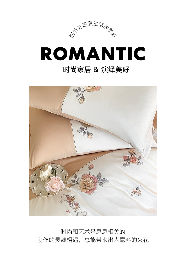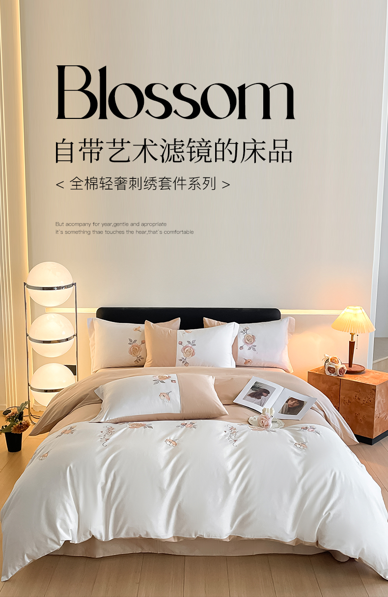 (总)理想家家纺 2025新款纯棉轻奢刺绣四件套--心愿系列场景二,心愿粉,心愿红,心愿黄,心愿蓝