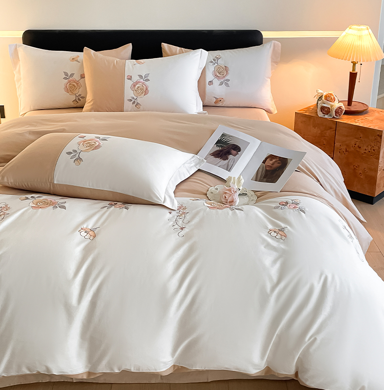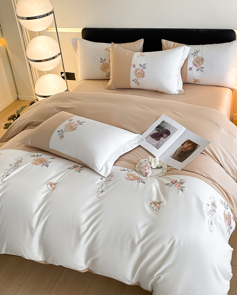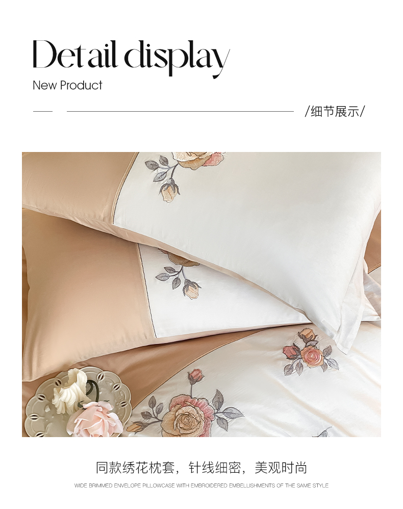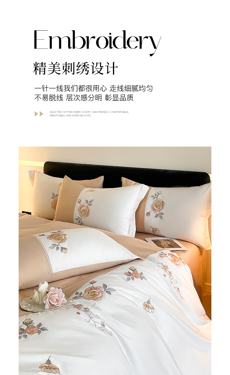 (总)理想家家纺 2025新款纯棉轻奢刺绣四件套--心愿系列场景二,心愿粉,心愿红,心愿黄,心愿蓝