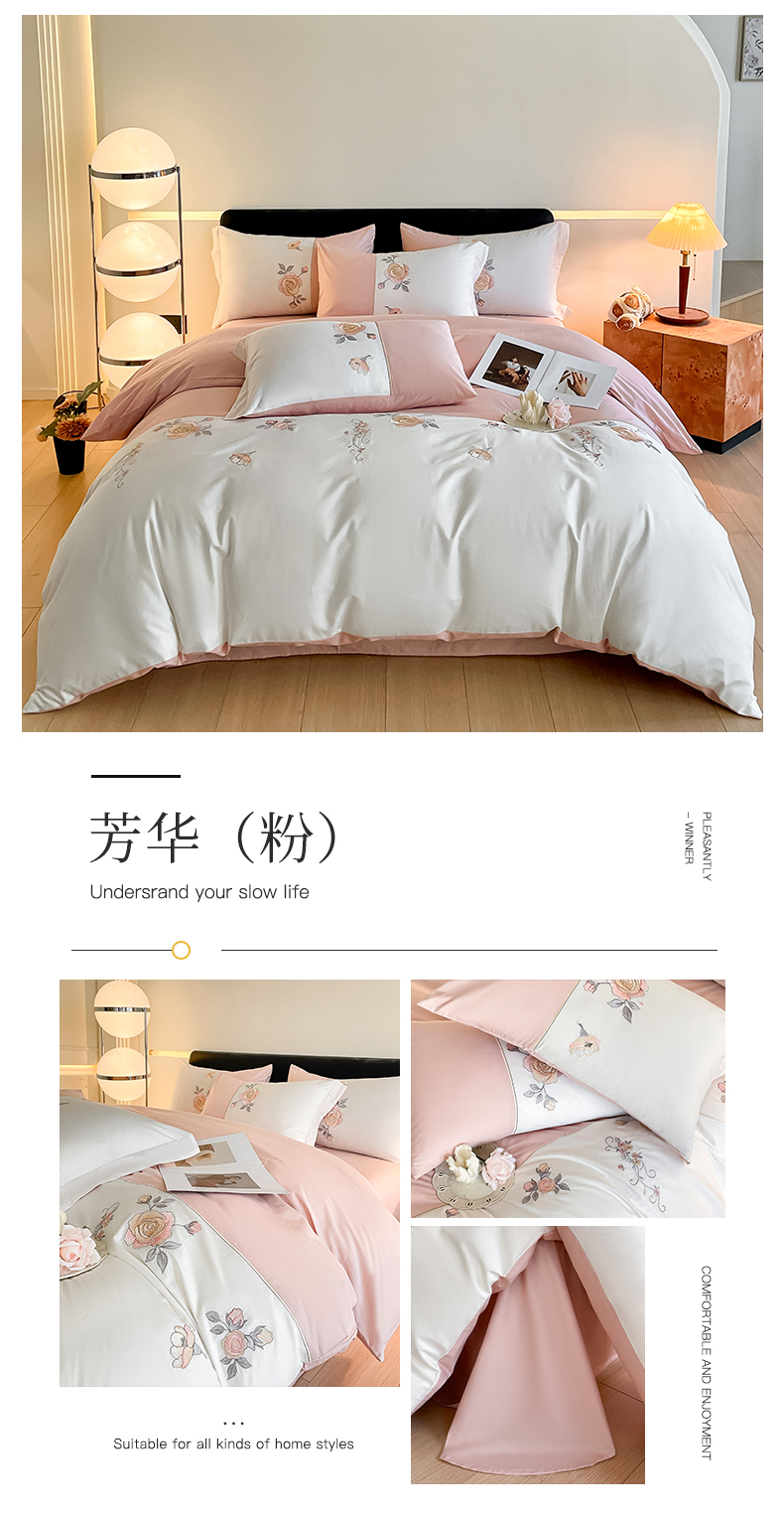 (总)理想家家纺 2025新款纯棉轻奢刺绣四件套-小秘密系列场景二,小秘密 粉,小秘密 黄,小秘密 蓝