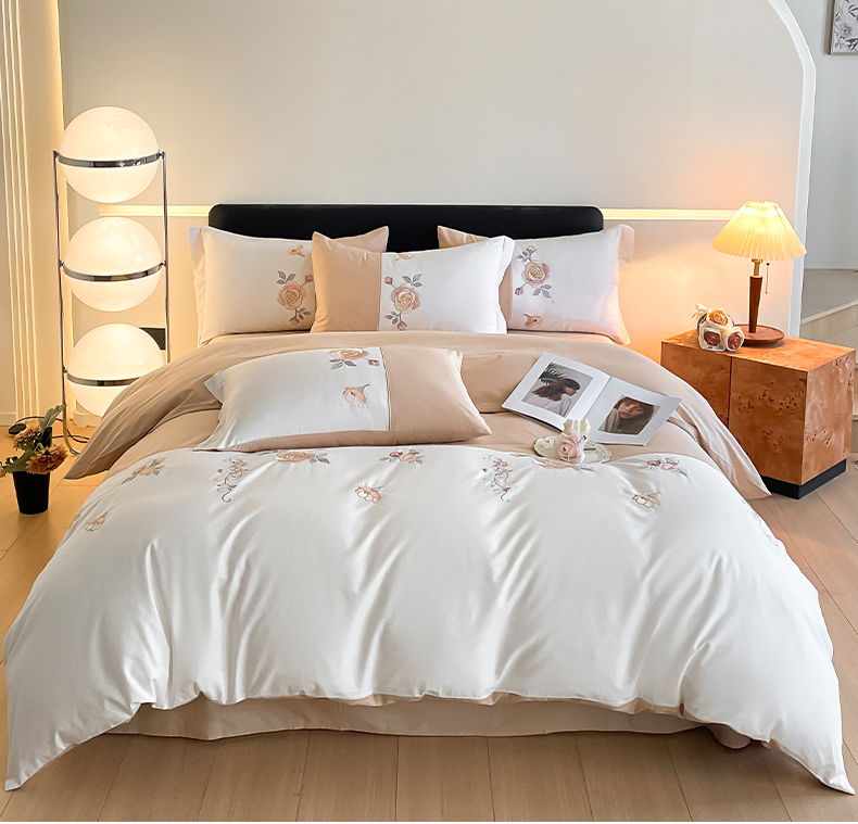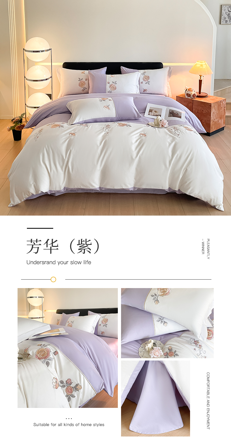 (总)理想家家纺 理想家家纺 2025新款云朵棉水洗真丝刺绣四件套,翩羽白,翩羽粉,翩羽蓝,翩羽绿,翩羽紫