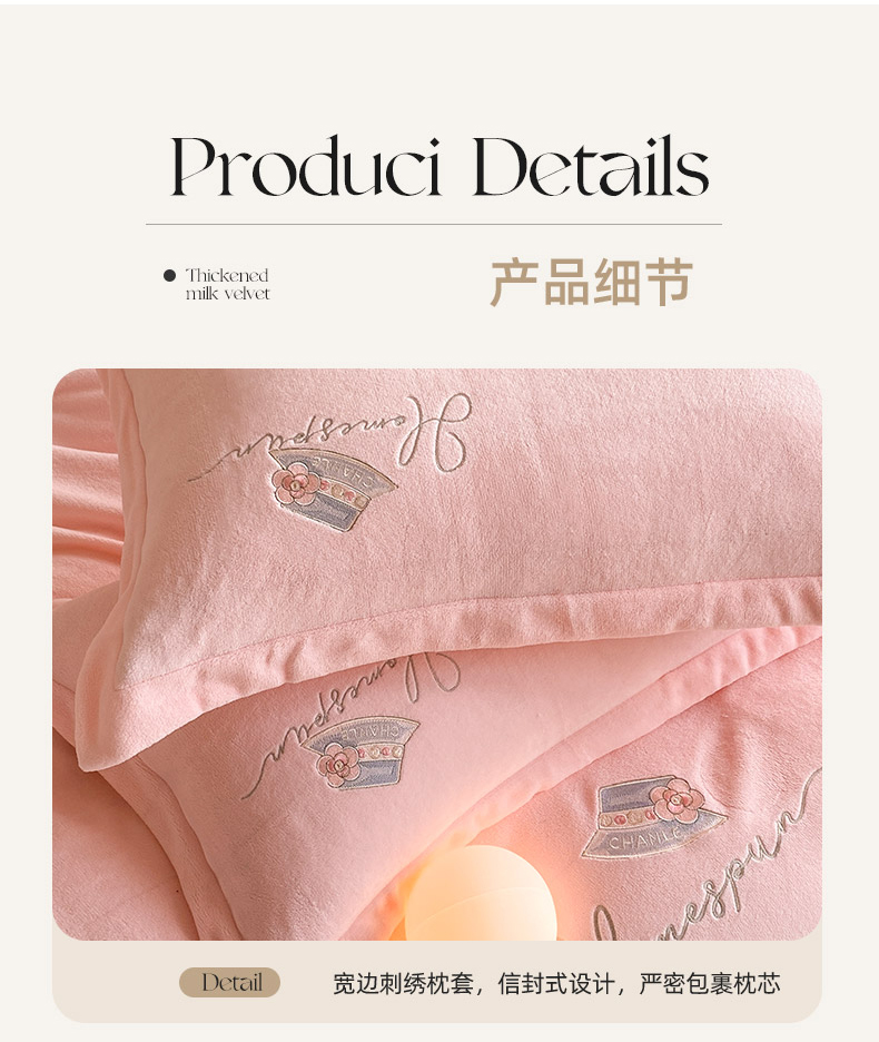 商品名称:丝印良品 2024新款秋冬加厚公主日记牛奶绒四件套藕荷粉