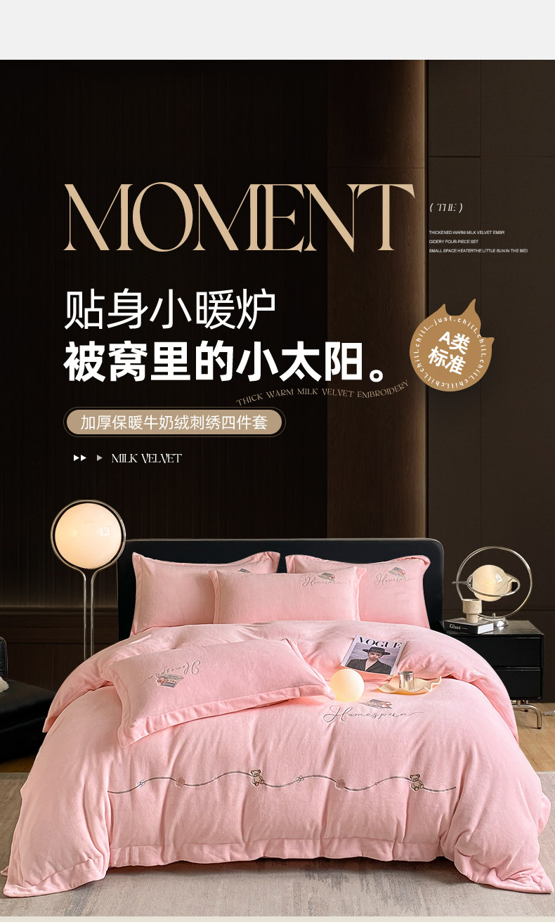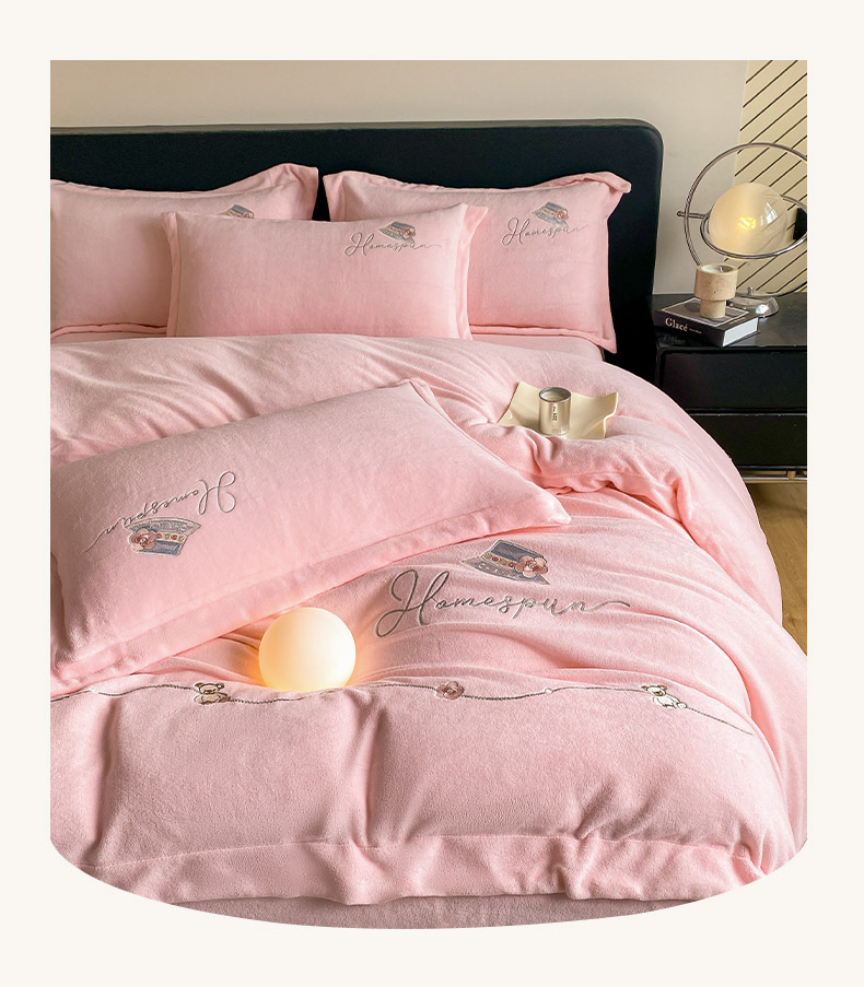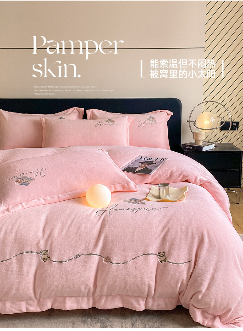 丝印良品 2024新款秋冬加厚公主日记牛奶绒四件套藕荷粉
