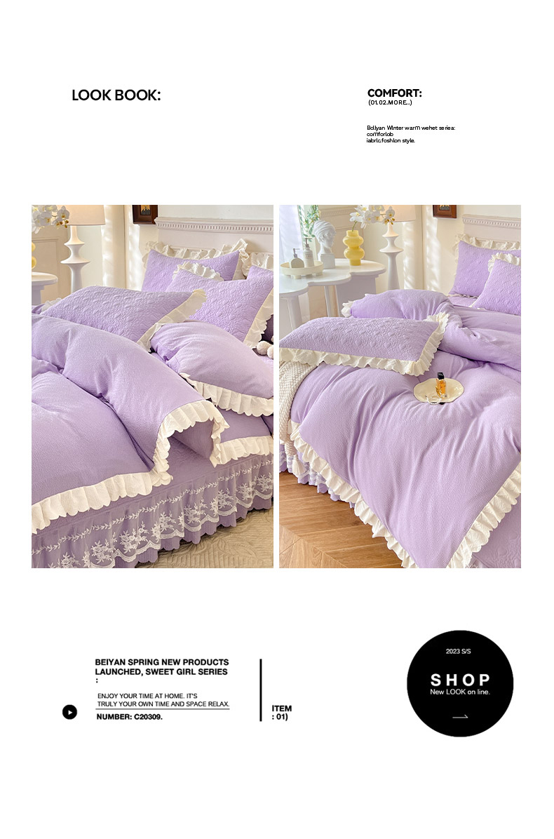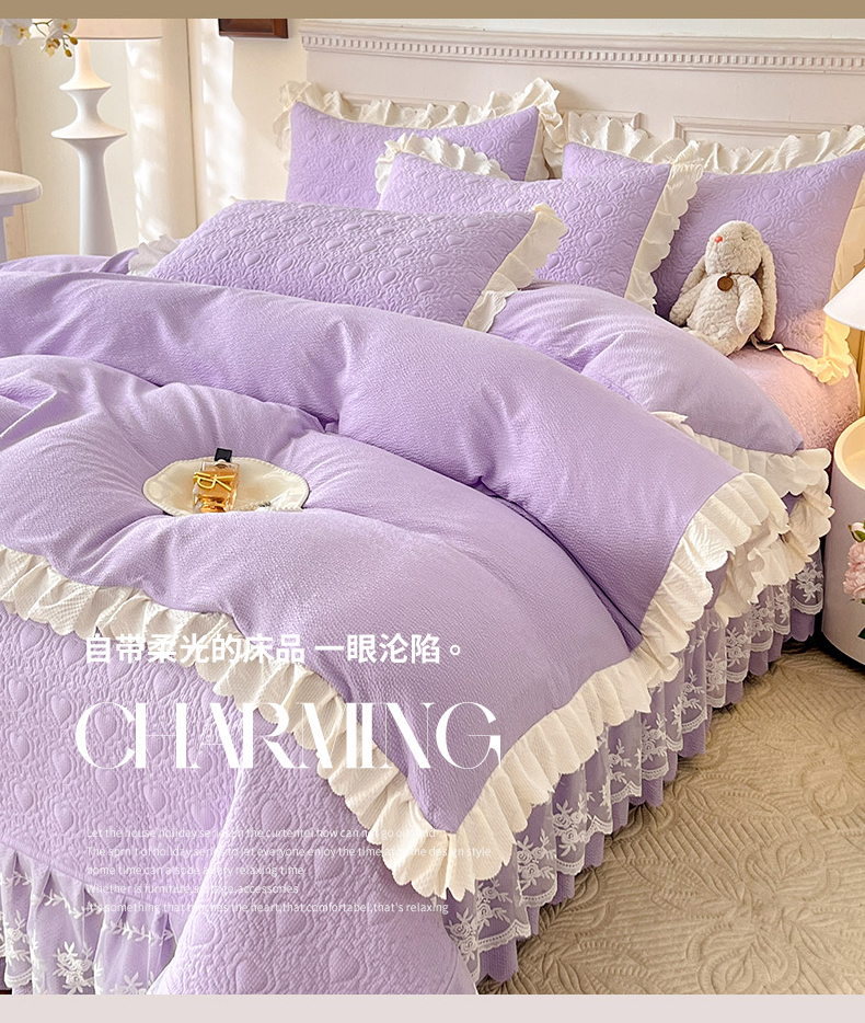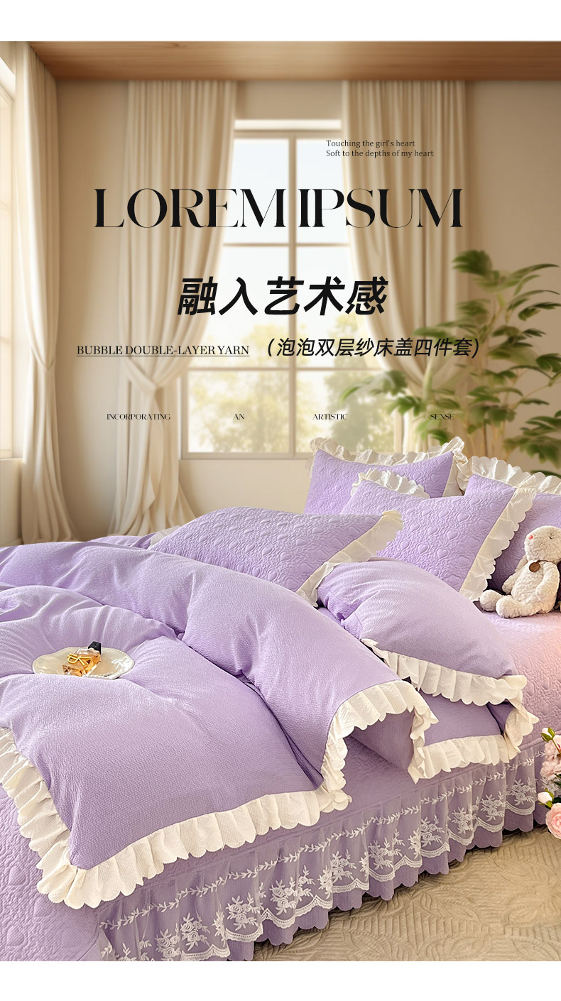 当前位置: 91家纺网 > 商品网购 > 床品套件 > 四件套 > 其它四件套 > 丝印良品 2024新款秋冬泡泡双层纱夹棉床盖四件套丁香紫