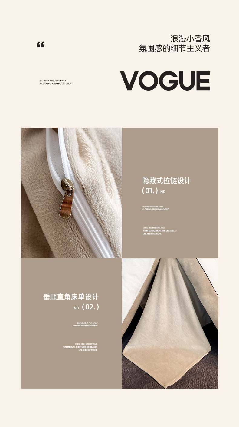 商品名称:丝印良品 2024秋冬新款小香风香奈系列牛奶绒四件套奶昔白