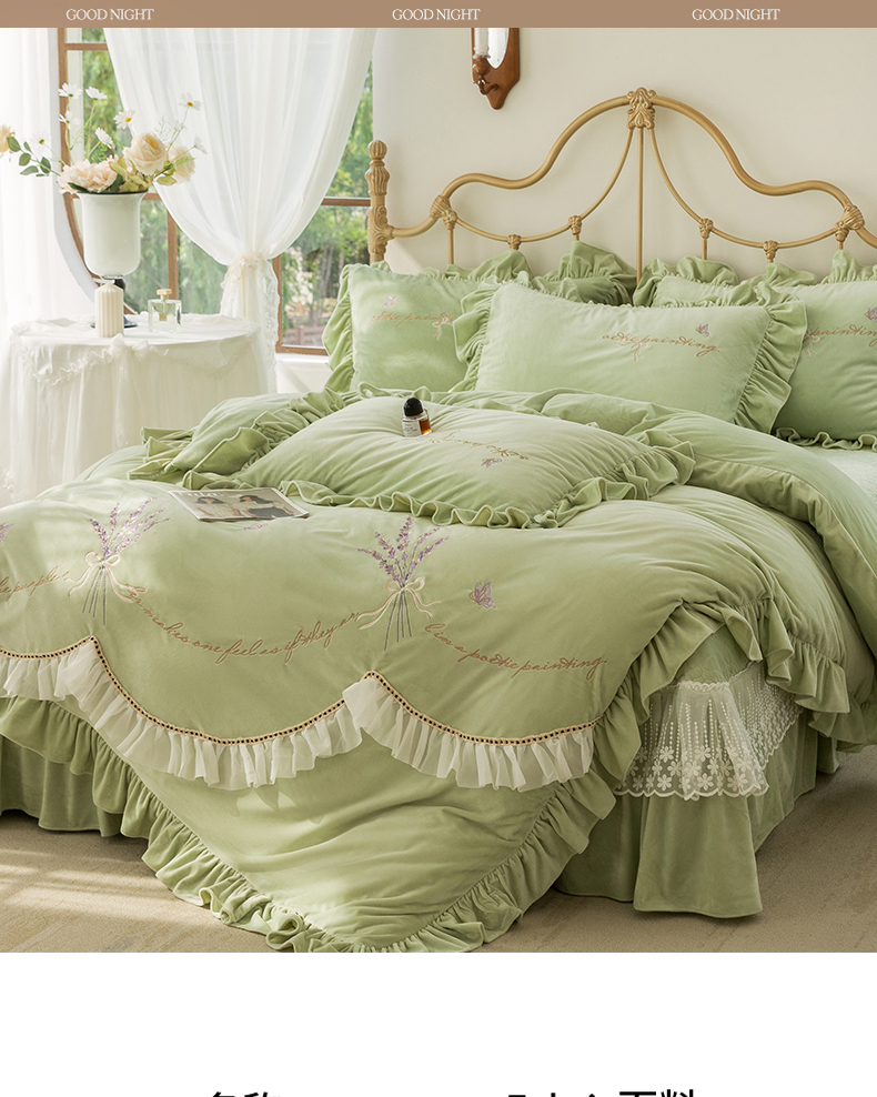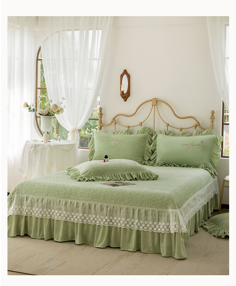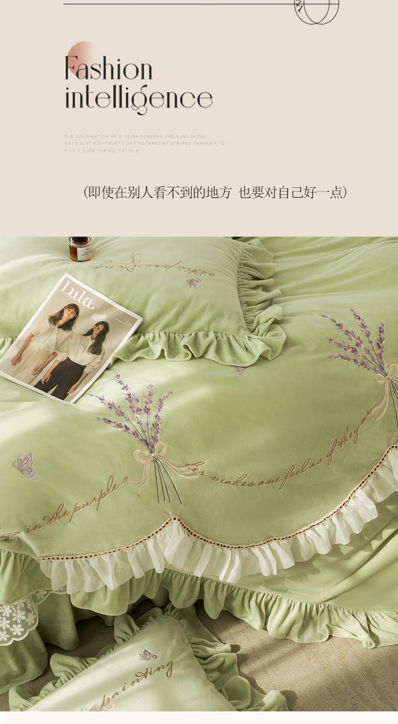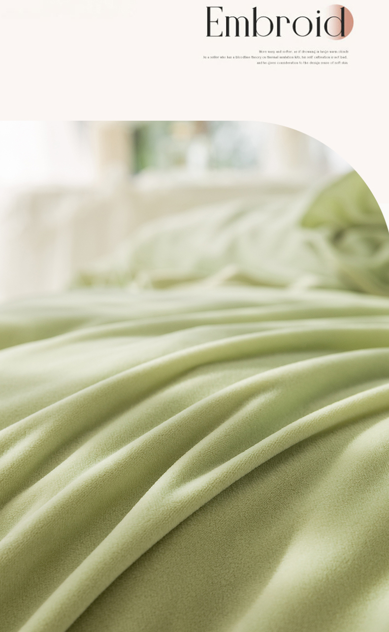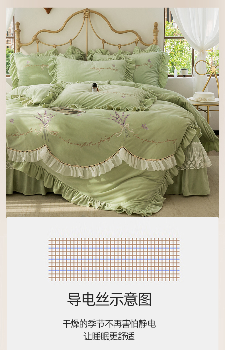 商品名称:金绣美居 2025新款加厚婴儿绒韩版床盖绣花保暖四件套-含香 豆绿