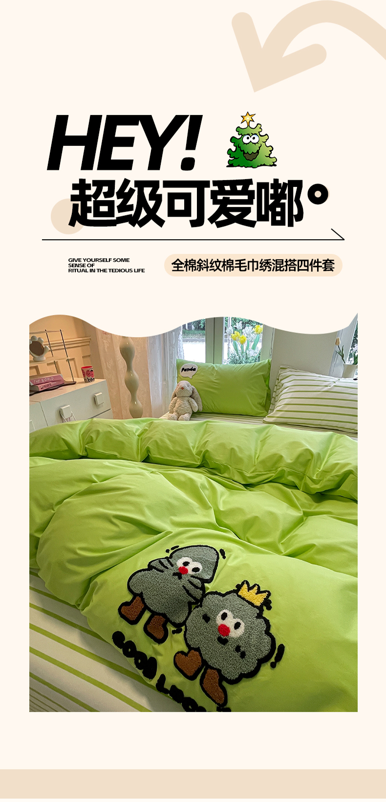 商品名称:吉象家纺 2024新款全棉斜纹毛巾绣混搭四件套 好伙伴