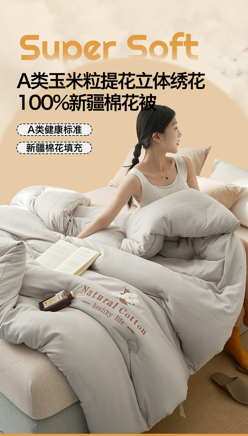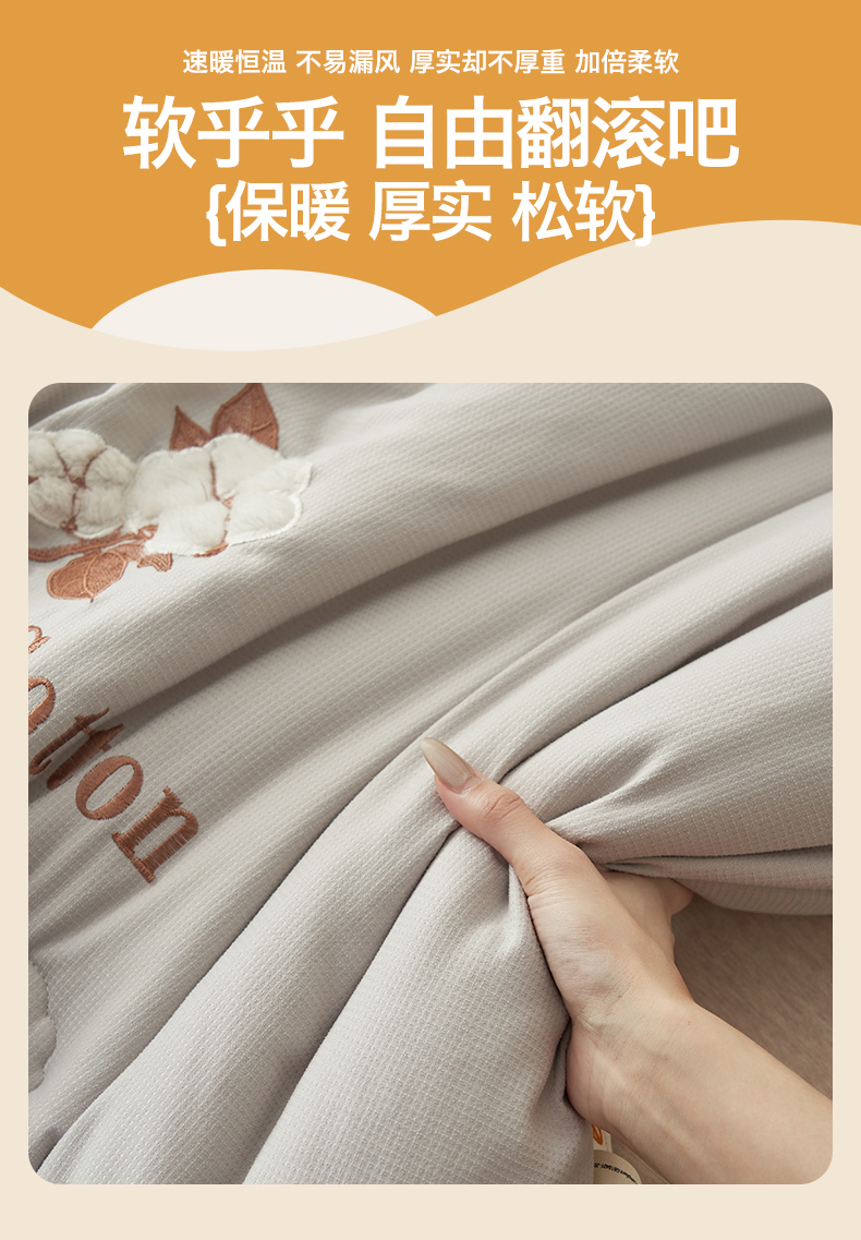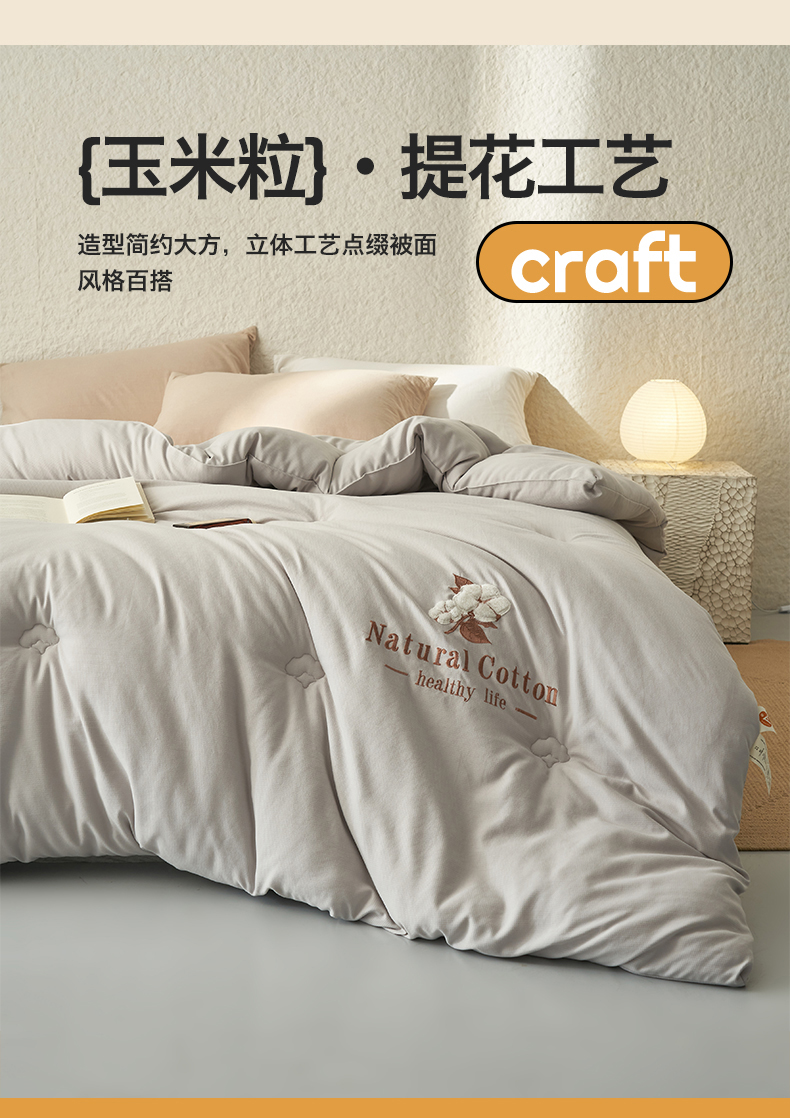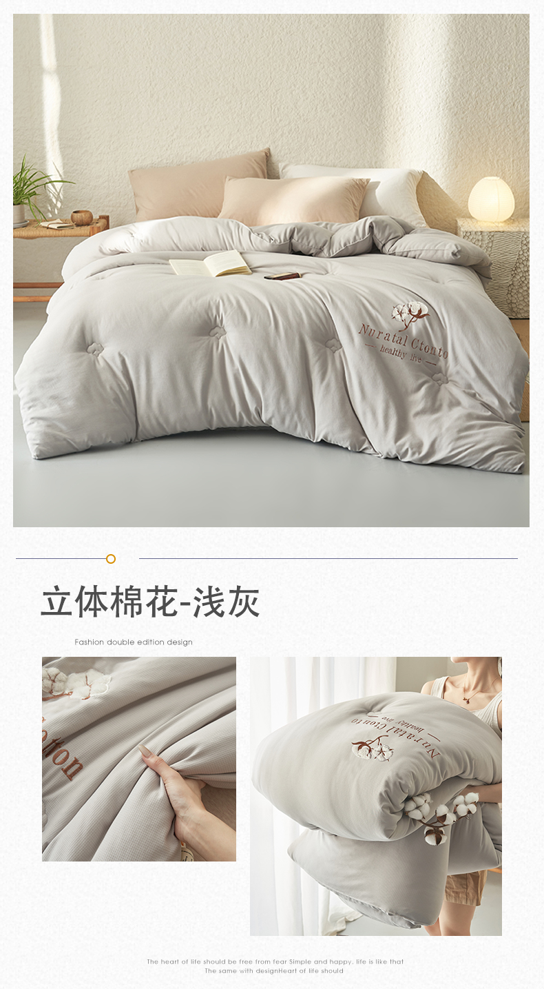 • 91家纺网 家纺一手货源 找家纺 子由家居 2024新款玉米粒绣花立体绣花100%新疆棉花被被子被芯 立体棉花-浅灰