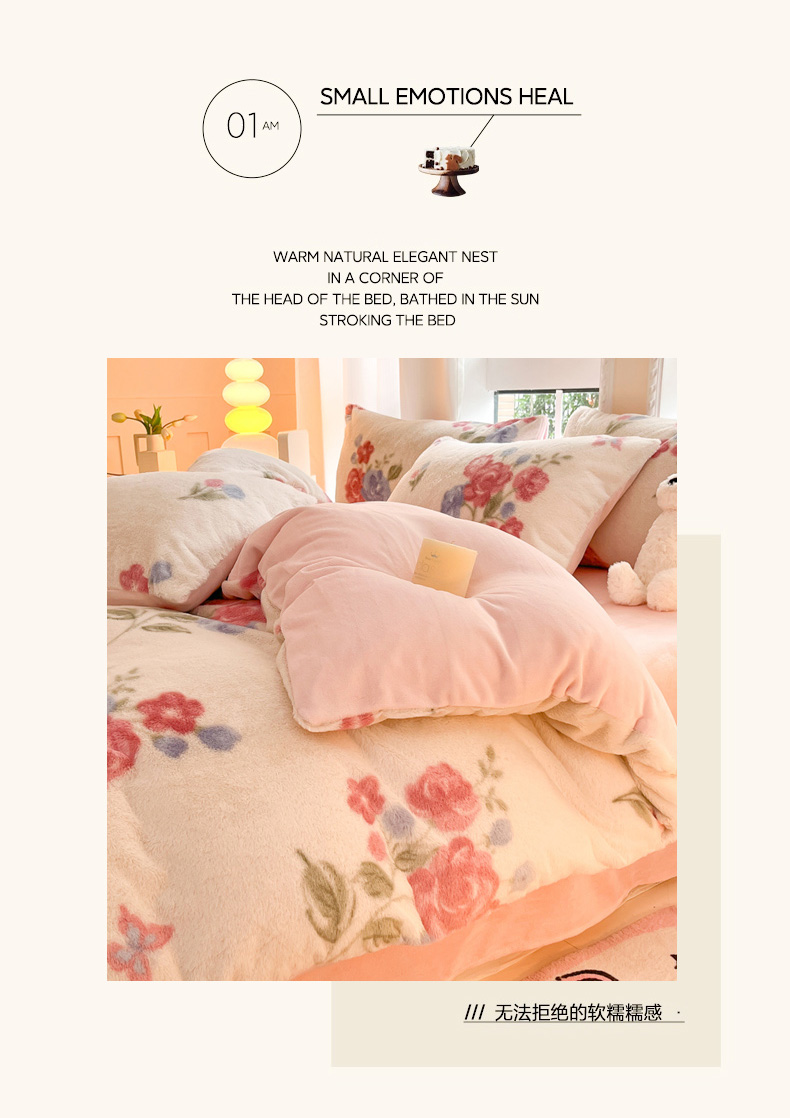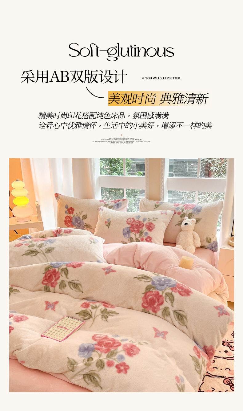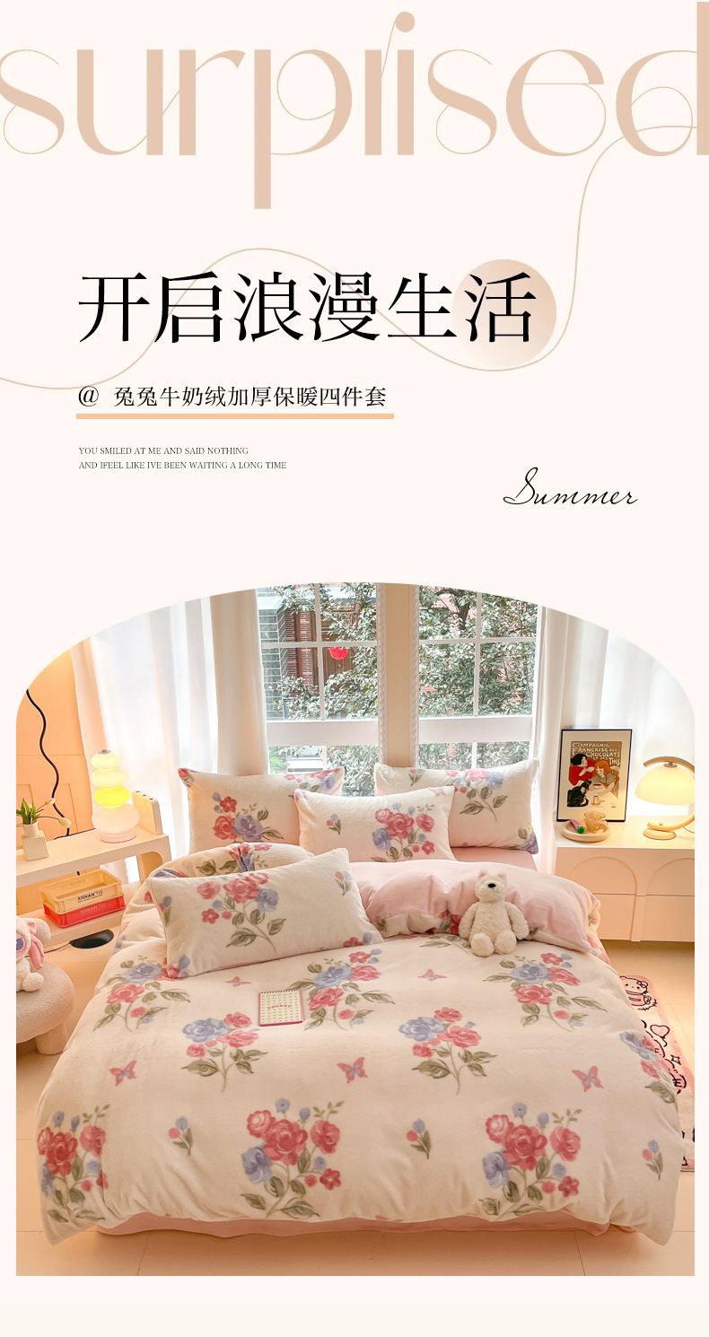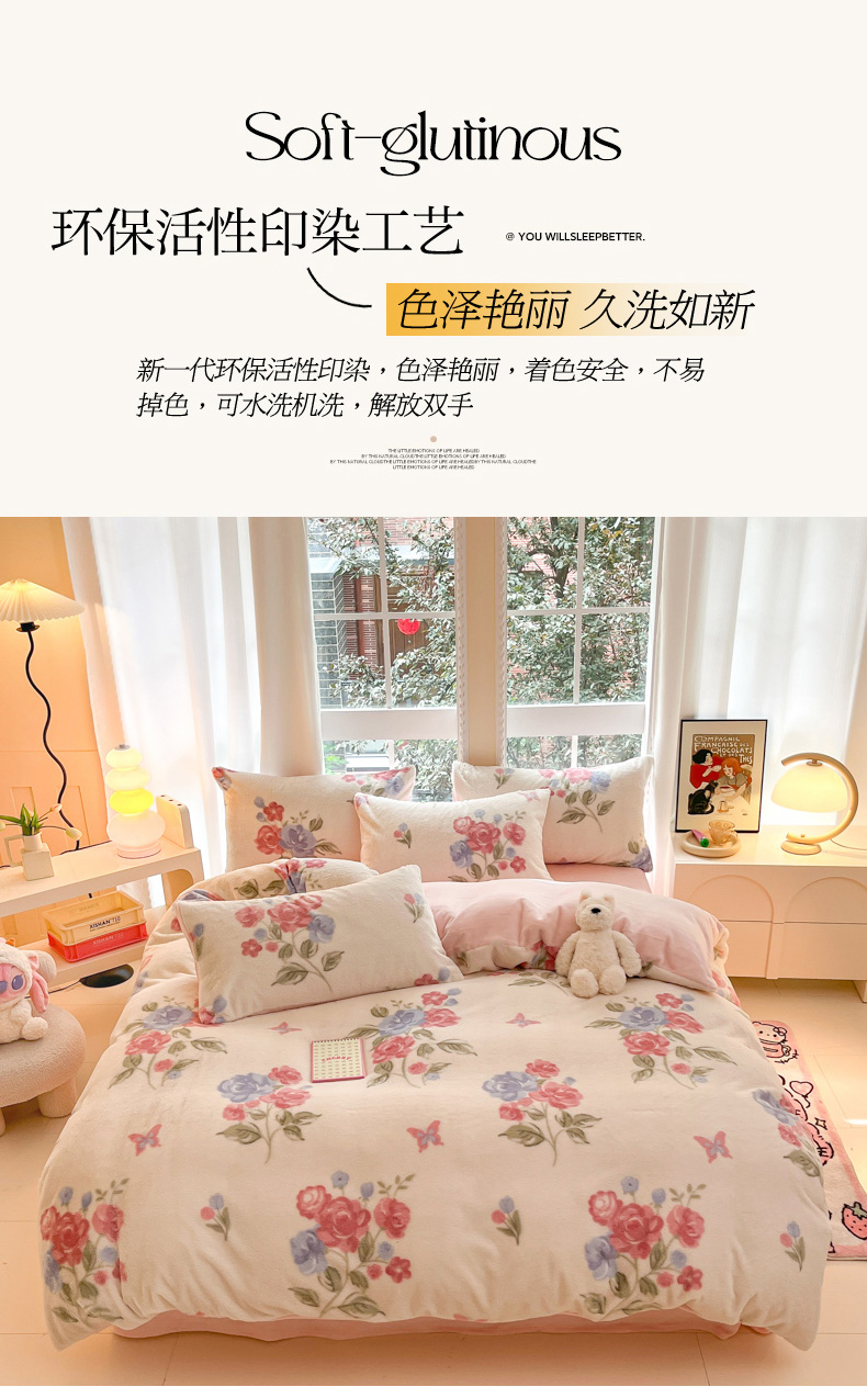 慕澄家纺 2024新款兔绒牛奶绒加厚保暖印花四件套 花飞蝶舞