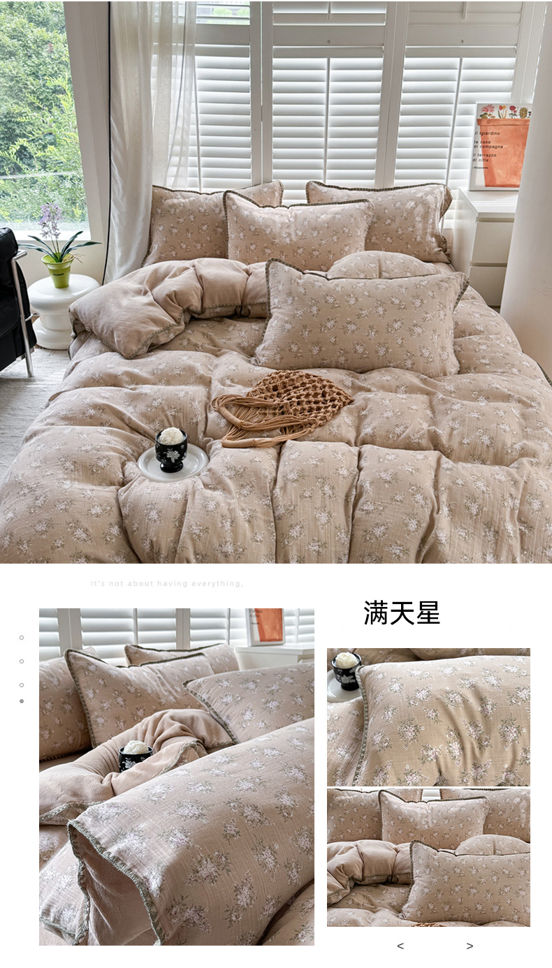 眠屿家纺 2024新款全棉皱皱纱牛奶绒四件套 满天星