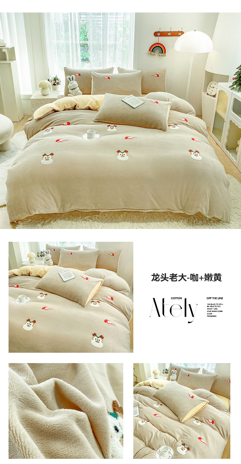 当前位置: 91家纺网 > 商品网购 > 床品套件 > 四件套 > 牛奶绒四件套 > 眷恋家纺 2025新款牛奶绒毛巾绣四件套 龙头老大-咖+嫩黄