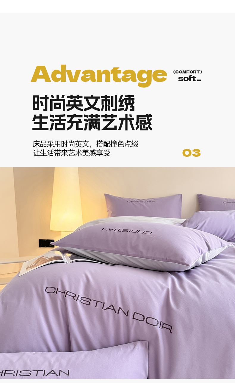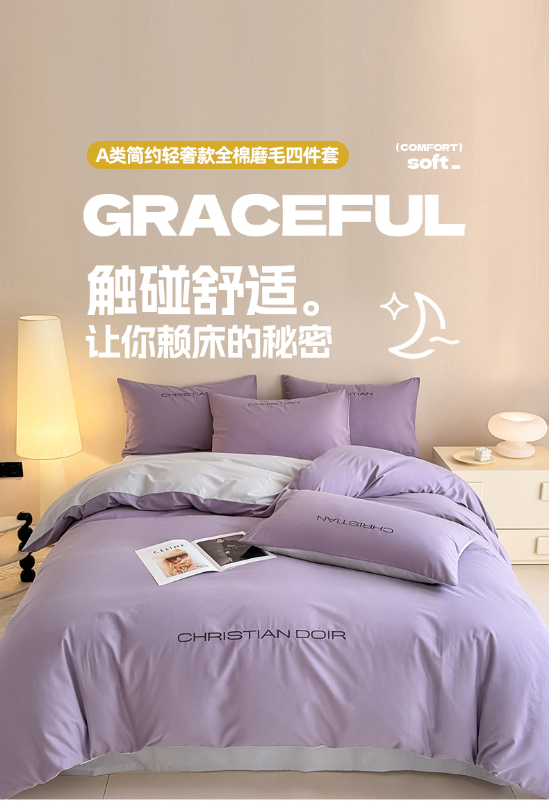 商品名称:(总)典曼家纺 2024新款A类简约轻奢款磨毛绣花四件套