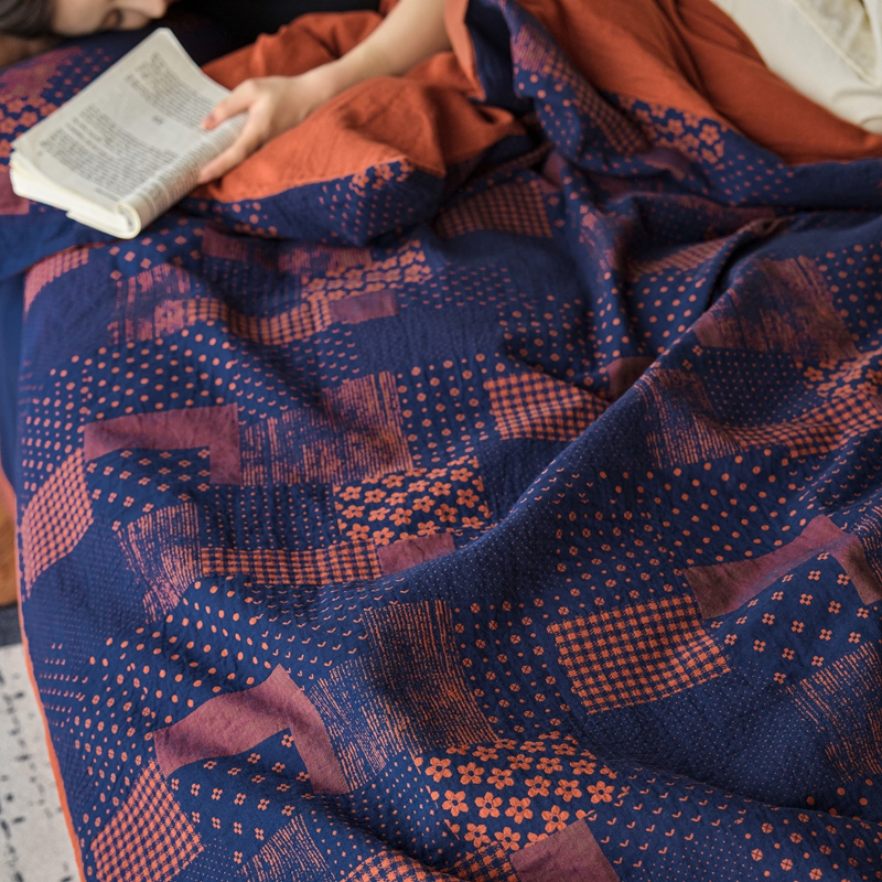 商品名称:安莱生活 2024新款全棉纯棉A类母婴双层纱纱布压线飞边款四件套 西雅图-红蓝