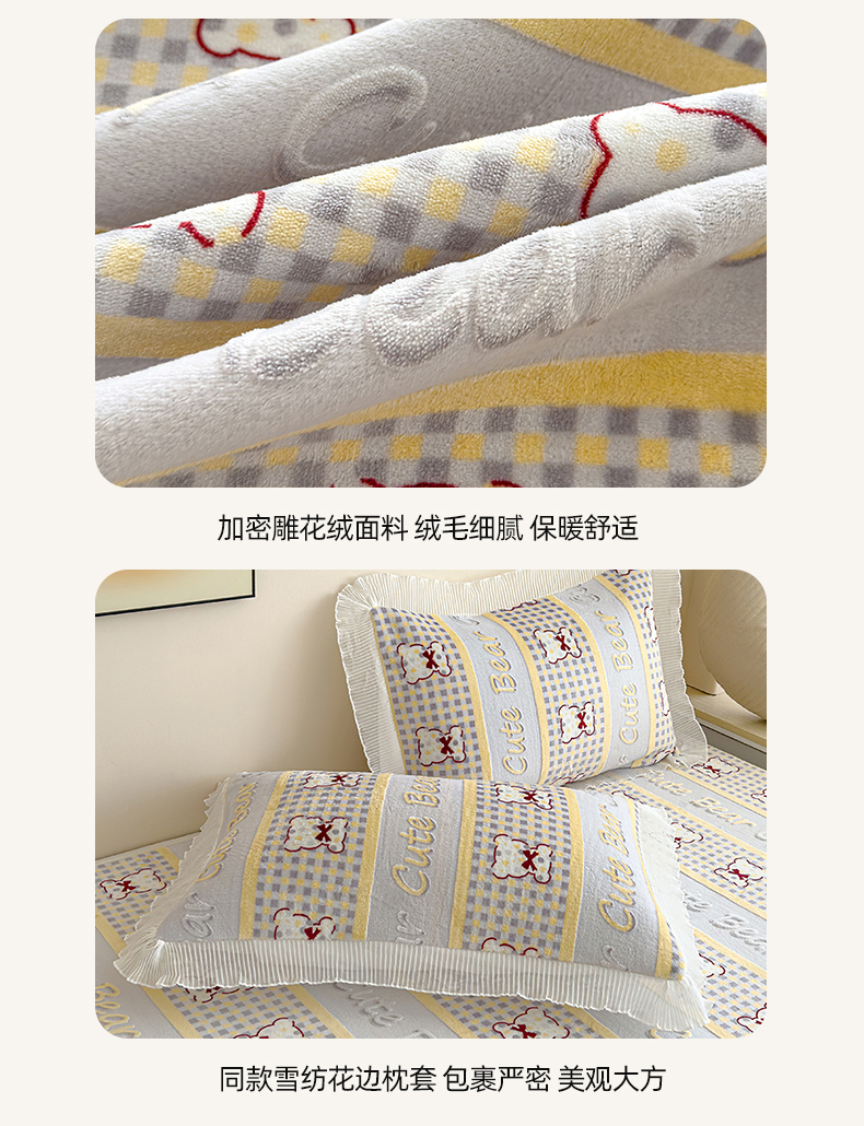 冬然家纺 2024新款雕花绒榻榻米床盖 贝贝熊