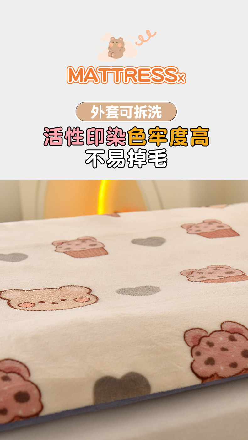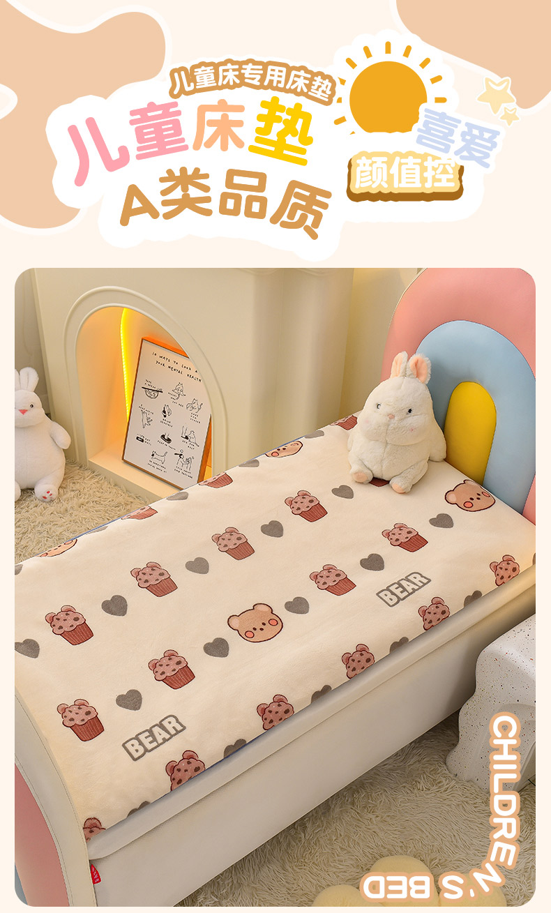 当前位置: 91家纺网 > 商品网购 > 床垫/床褥 > 普通床垫 > 宝贝优选 2024新款儿童牛奶绒可拆卸床垫床褥儿童床垫 甜筒小熊