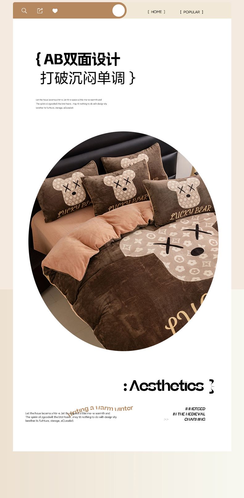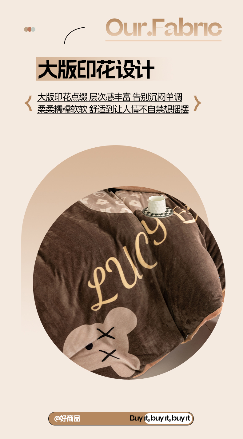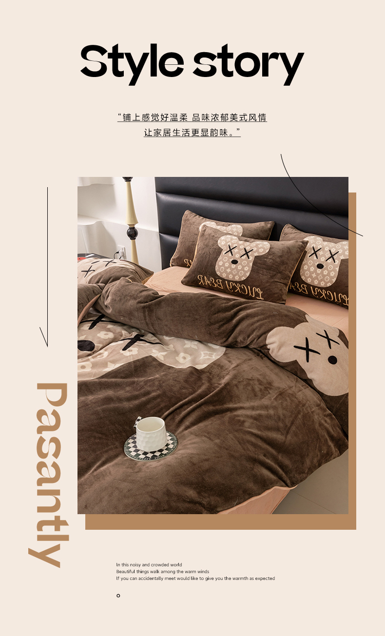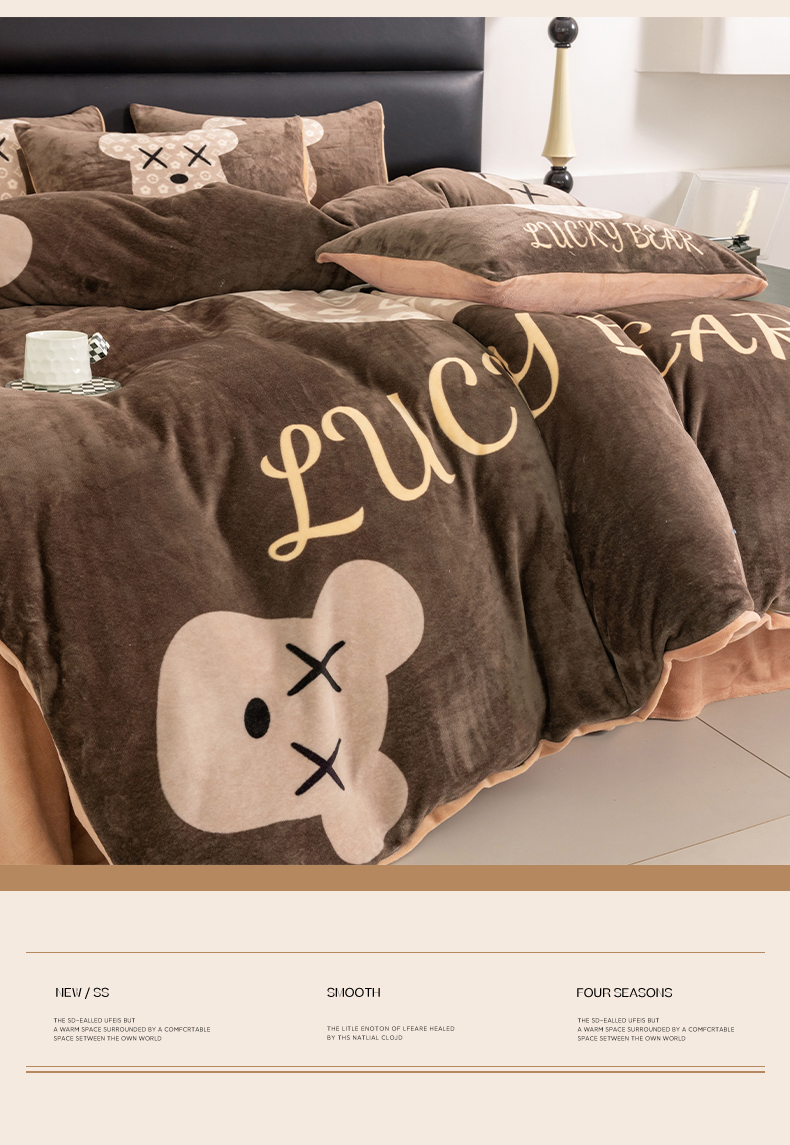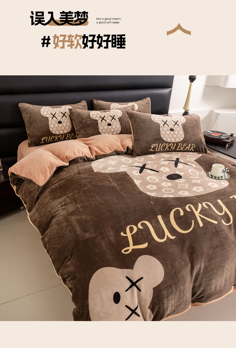 商品名称:色鬼布艺 2024新款高克重牛奶绒大版印花四件套 可可熊