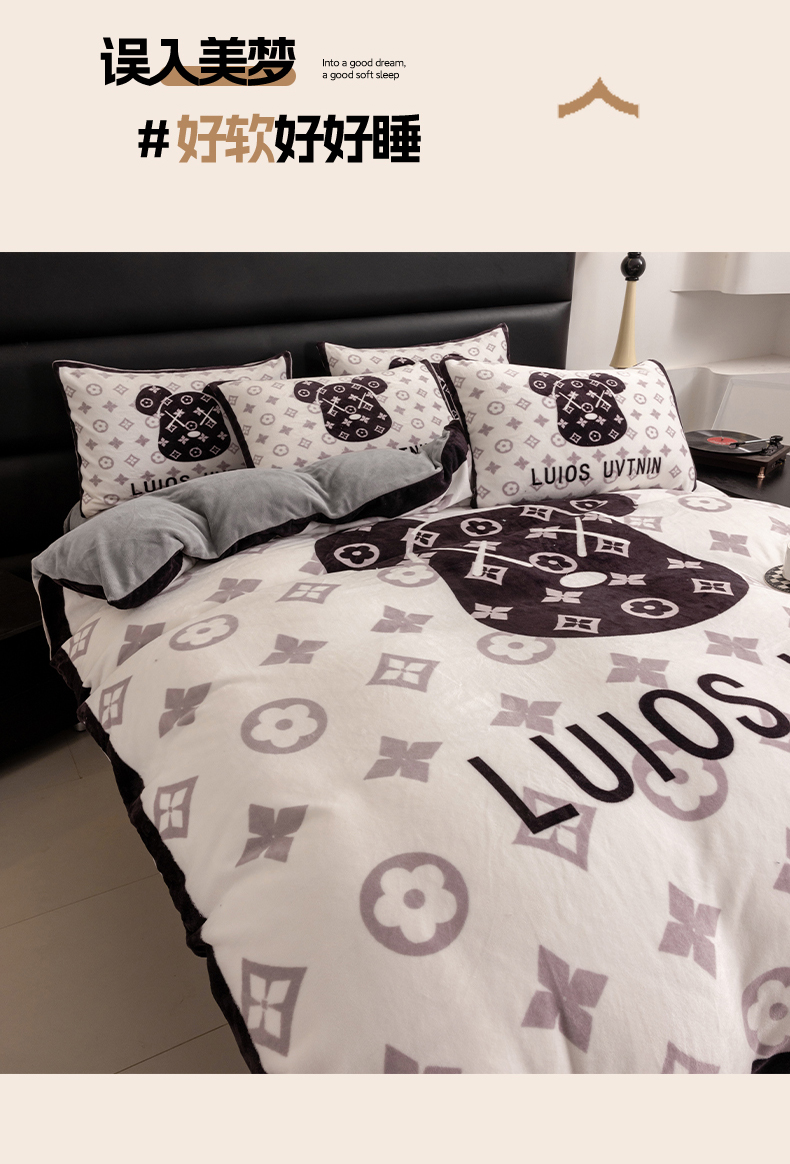 商品名称:色鬼布艺 2024新款高克重牛奶绒大版印花四件套 熊头白