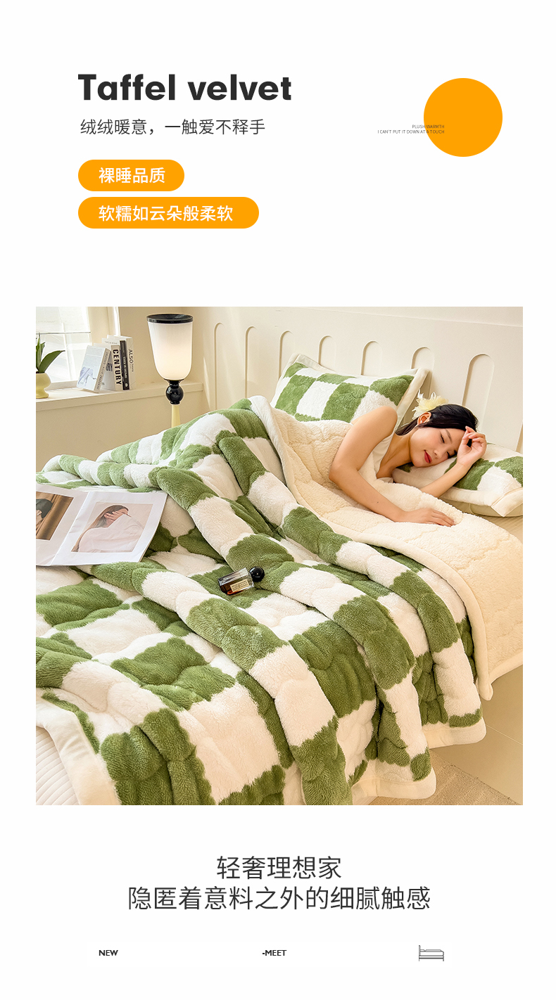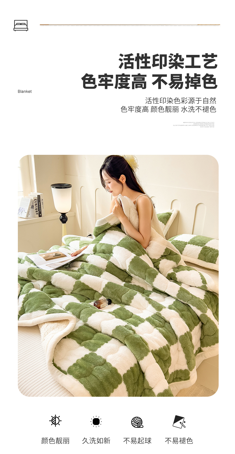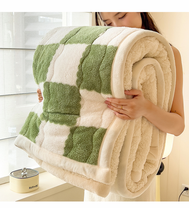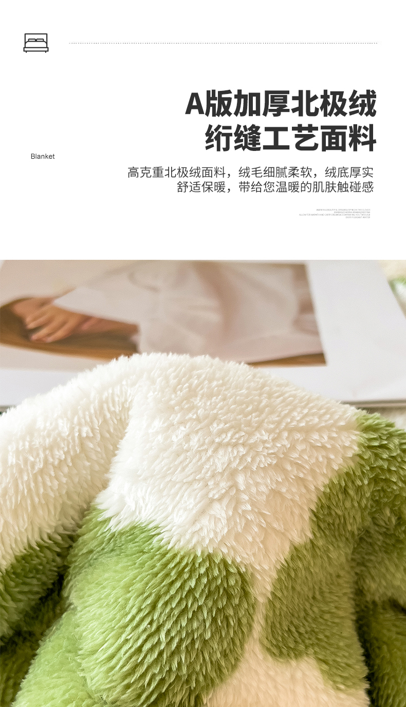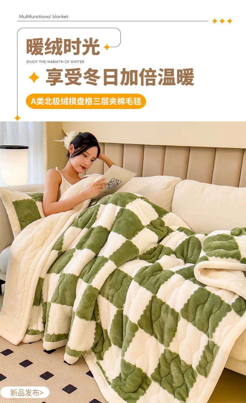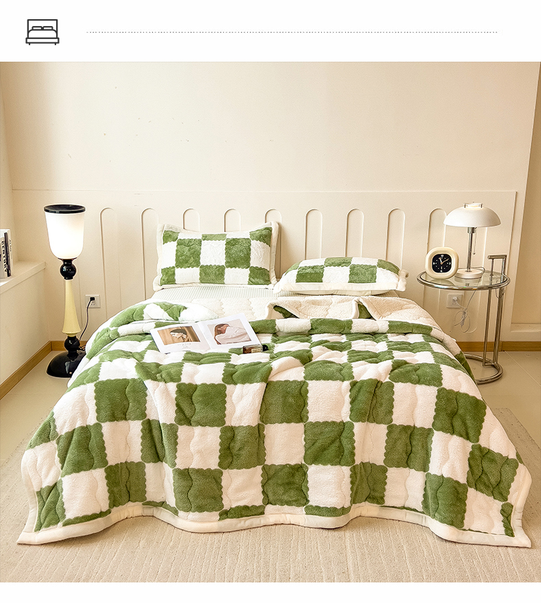 当前位置: 91家纺网 > 商品网购 > 毛毯休闲毯绒毯 > 毛毯 > 慕木家纺 2025秋冬新款A类北极绒棋盘格双面毛毯 棋盘格三层夹棉毛毯-抹茶绿+白