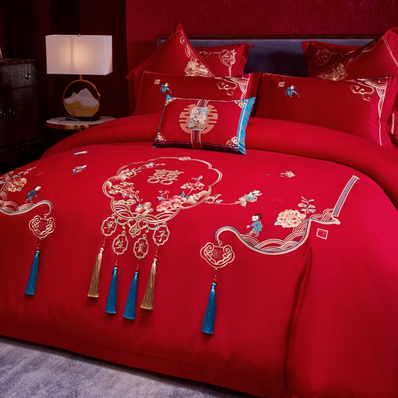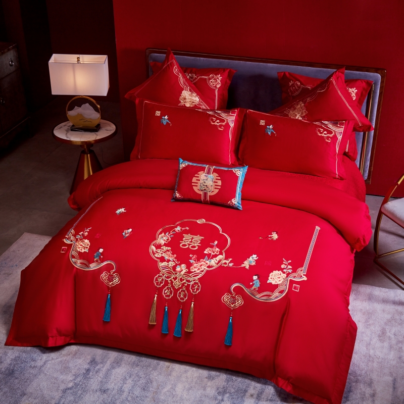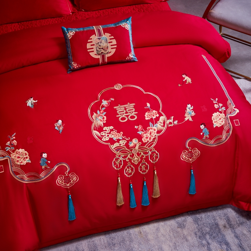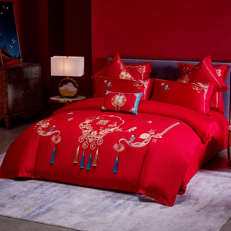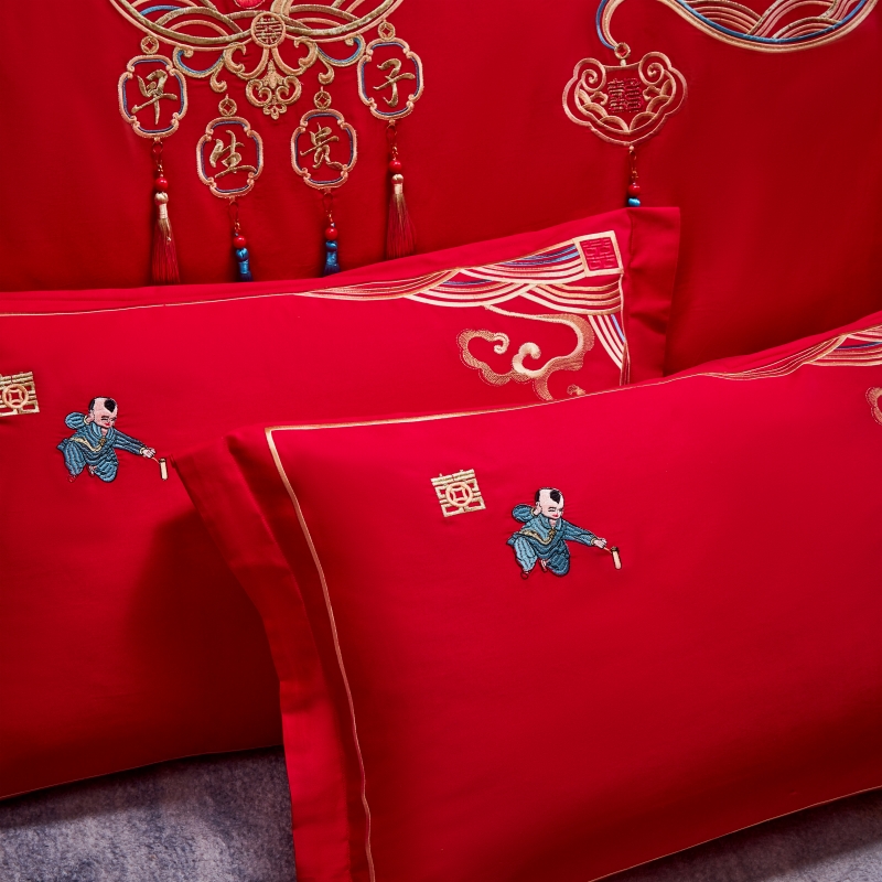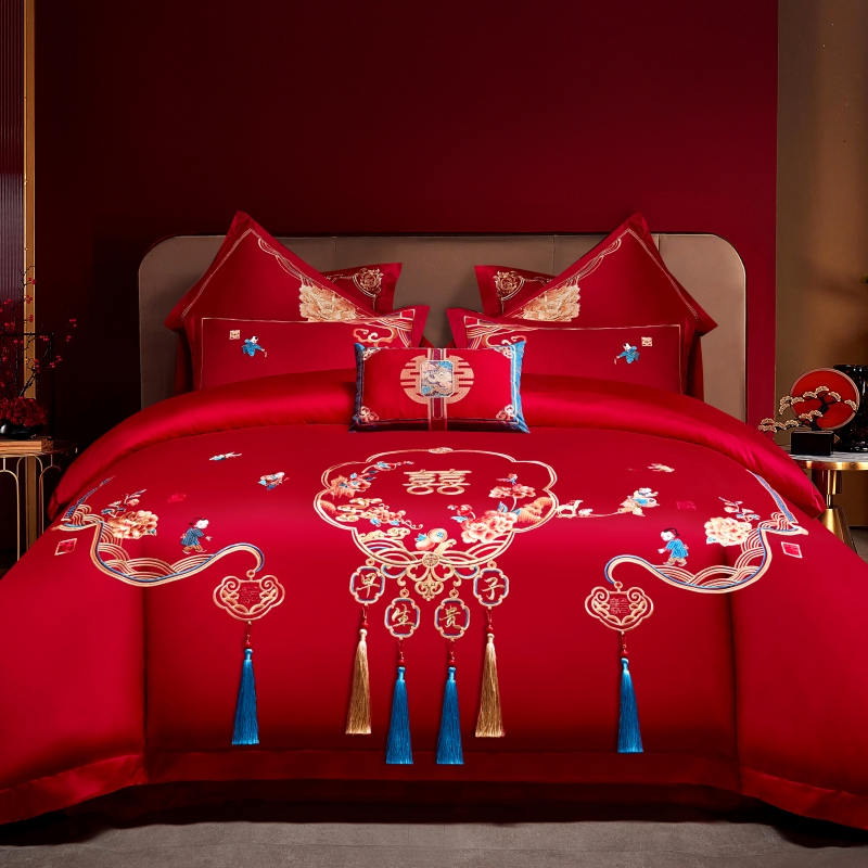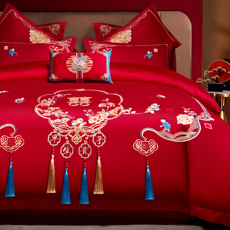 当前位置: 91家纺网 > 商品网购 > 床品套件 > 四件套 > 普通磨毛四件套 > 尹黛尔 婚庆四件套大红色刺绣可配多件套床单款床盖款 早生贵子