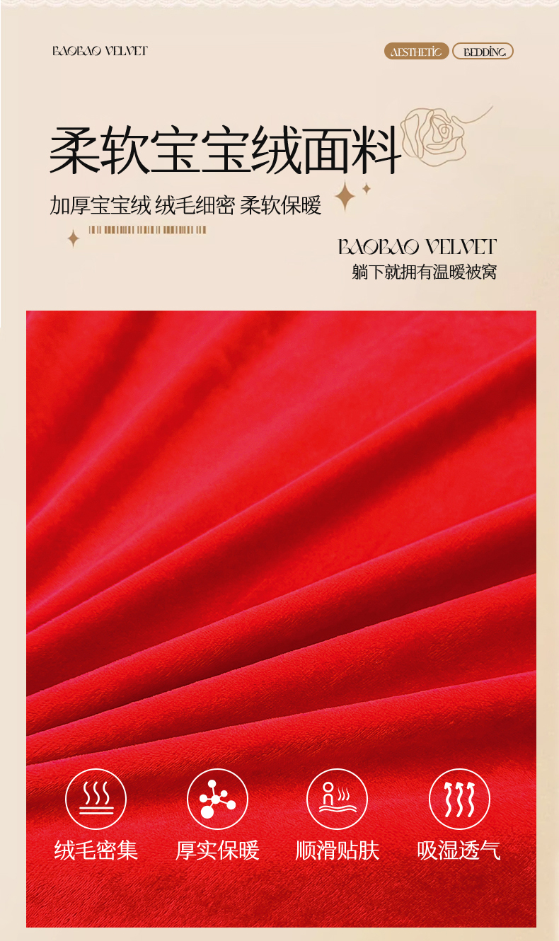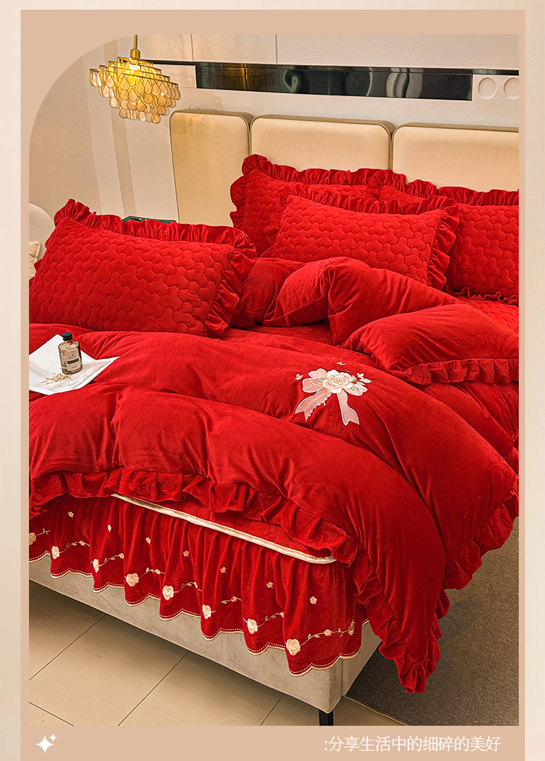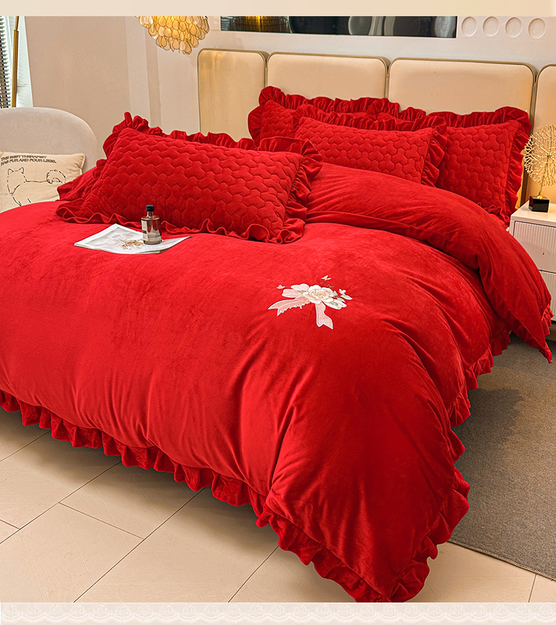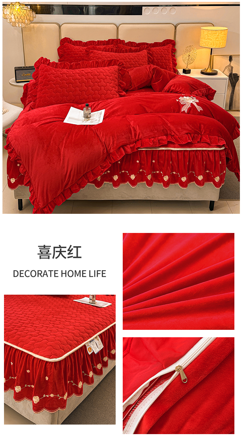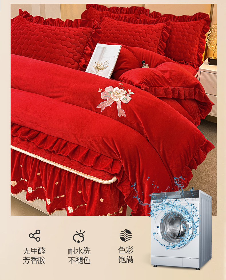 当前位置: 91家纺网 > 商品网购 > 床品套件 > 四件套 > 宝宝绒四件套 > 恒爱家纺 2024新款宝宝绒霞姿月韵四件套 喜庆红