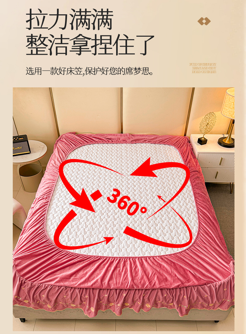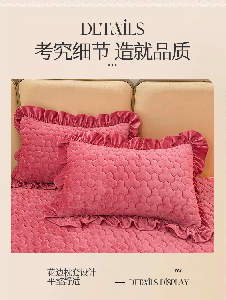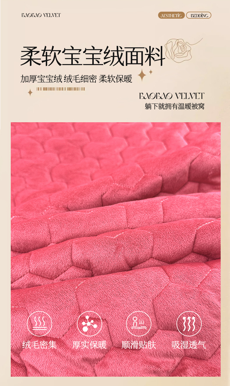 • 91家纺网 家纺一手货源 找家纺 恒爱家纺 2024新款宝宝绒霞姿月韵床笠 豆沙红