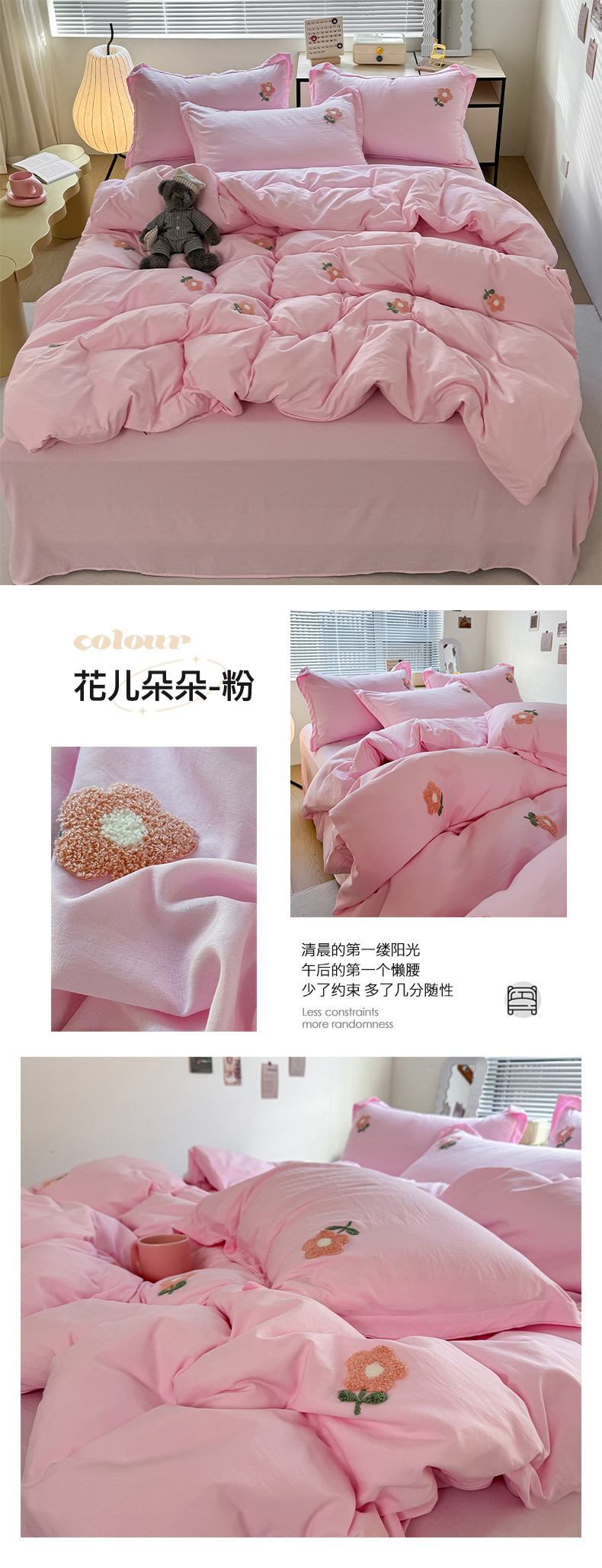 当前位置: 91家纺网 > 商品网购 > 床品套件 > 四件套 > 毛巾绣四件套 > 布可家纺 2025新款水洗棉毛巾绣四件套 花儿朵朵-粉