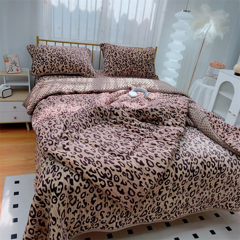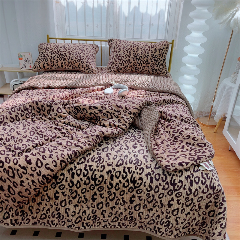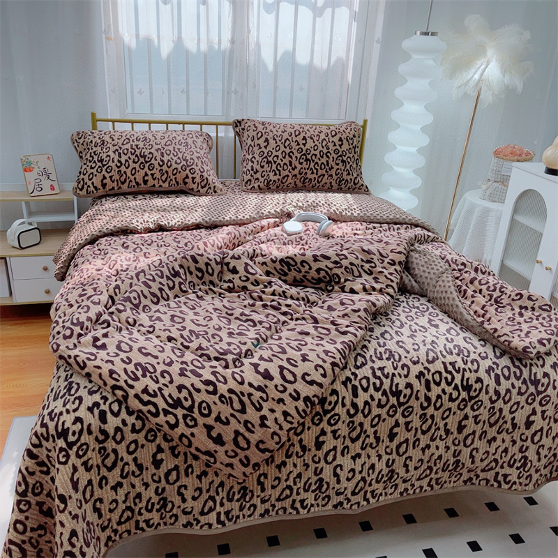 商品名称:暖居 2024新款牛奶绒豆豆被床盖四件套 经典豹纹